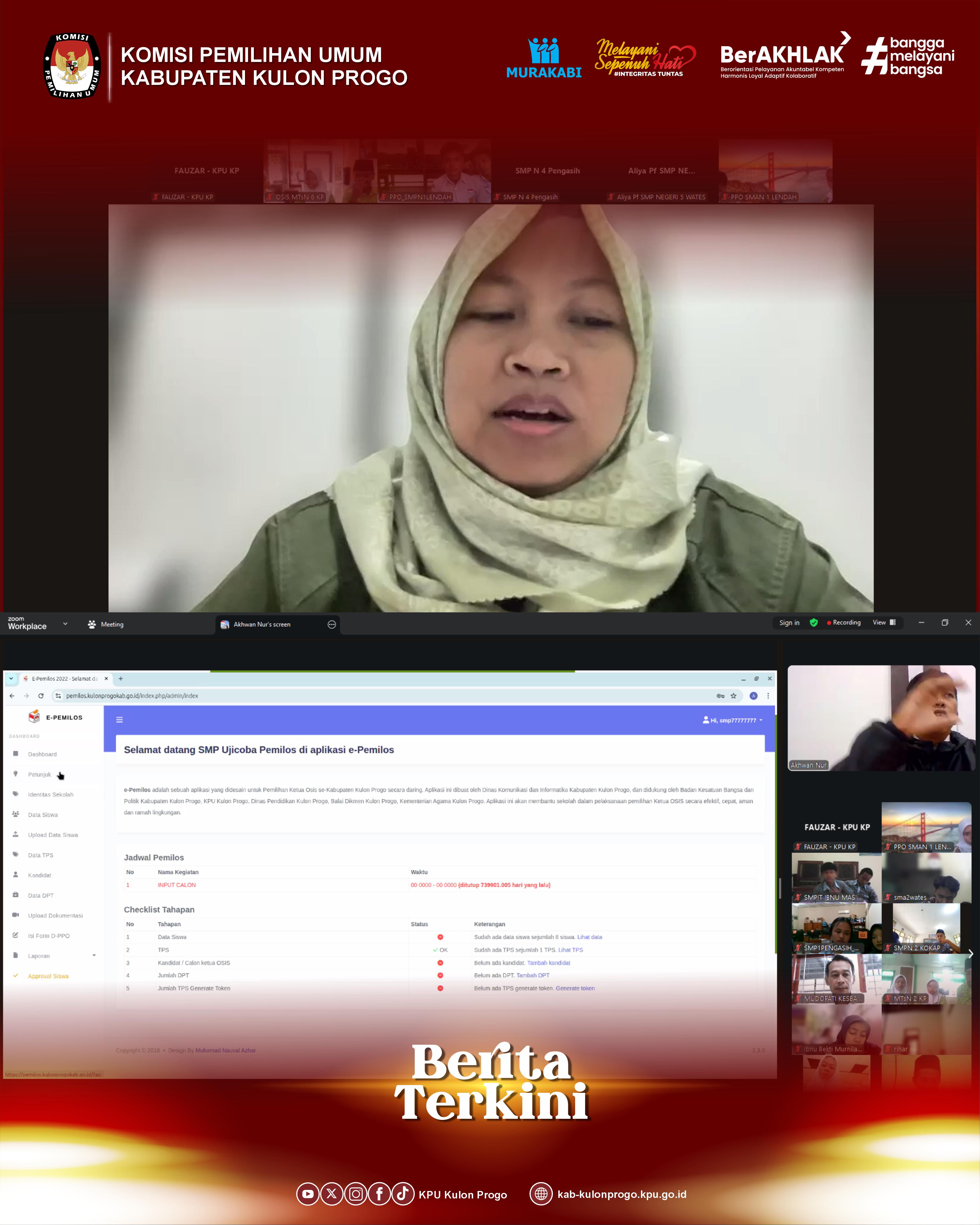 Kulon Progo – KPU Kabupaten Kulon Progo mengikuti Pelaksanaan TOT Pemilos Serentak 2025 yang diselenggarakan oleh Badan Kesatuan Bangsa dan Politik Kabupaten Kulon Progo pada Rabu , 10 September 2025. Kegiatan ini dilakukan sebagai langkah persiapan dalam penyelenggaraan Pemilihan Ketua OSIS (Pemilos) berbasis elektronik melalui aplikasi e-Pemilos secara serentak pada tanggal 14 Oktober 2025.