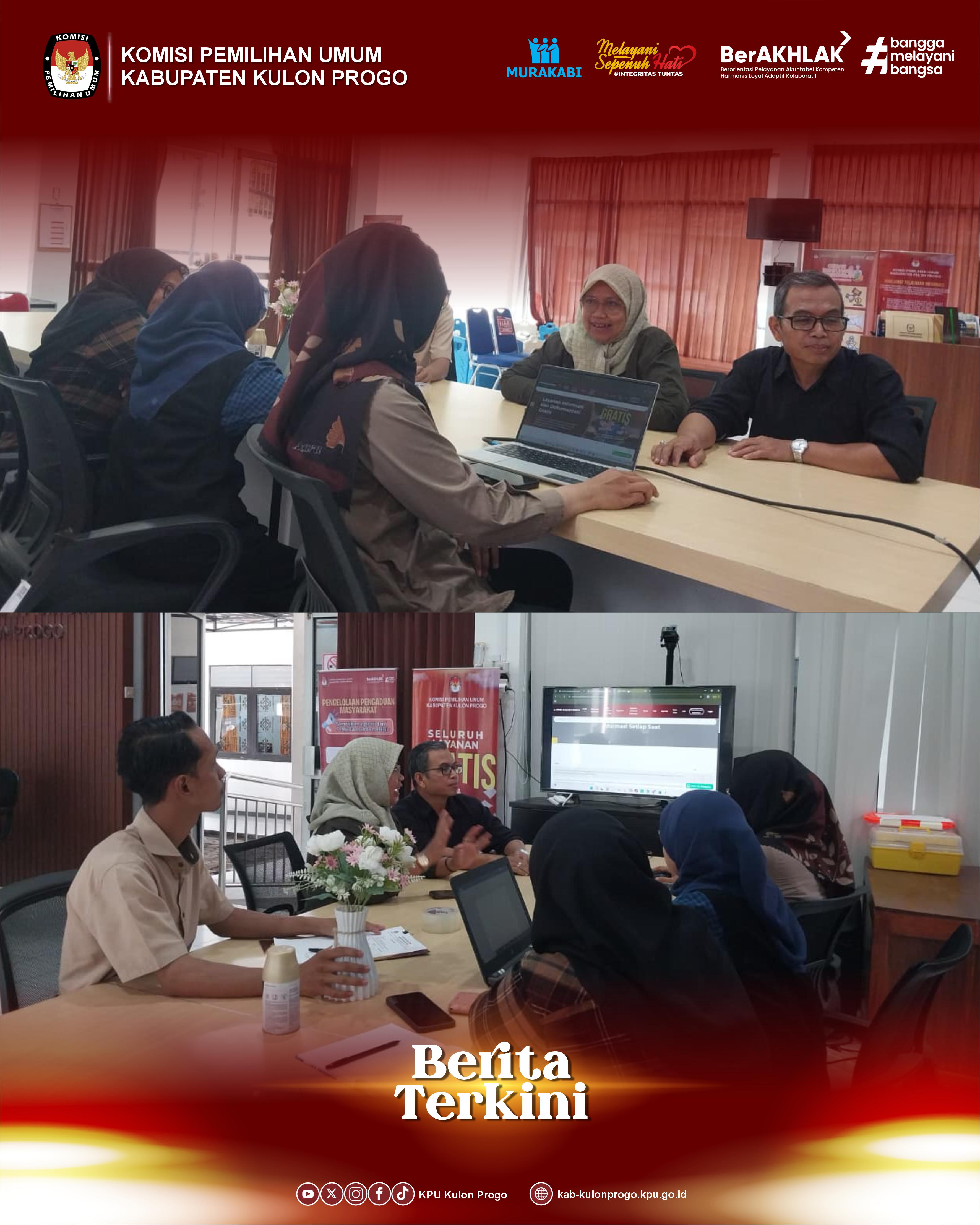 Kulon Progo – Tim pengelola website KPU Kabupaten Kulon Progo menggelar rapat pencermatan konten pada hari Rabu, 10 September 2025 di Pendopo KPU Kabupaten Kulon Progo. Kegiatan ini bertujuan untuk memastikan seluruh informasi yang ditampilkan di laman resmi selalu akurat, mutakhir, dan mudah diakses oleh masyarakat.