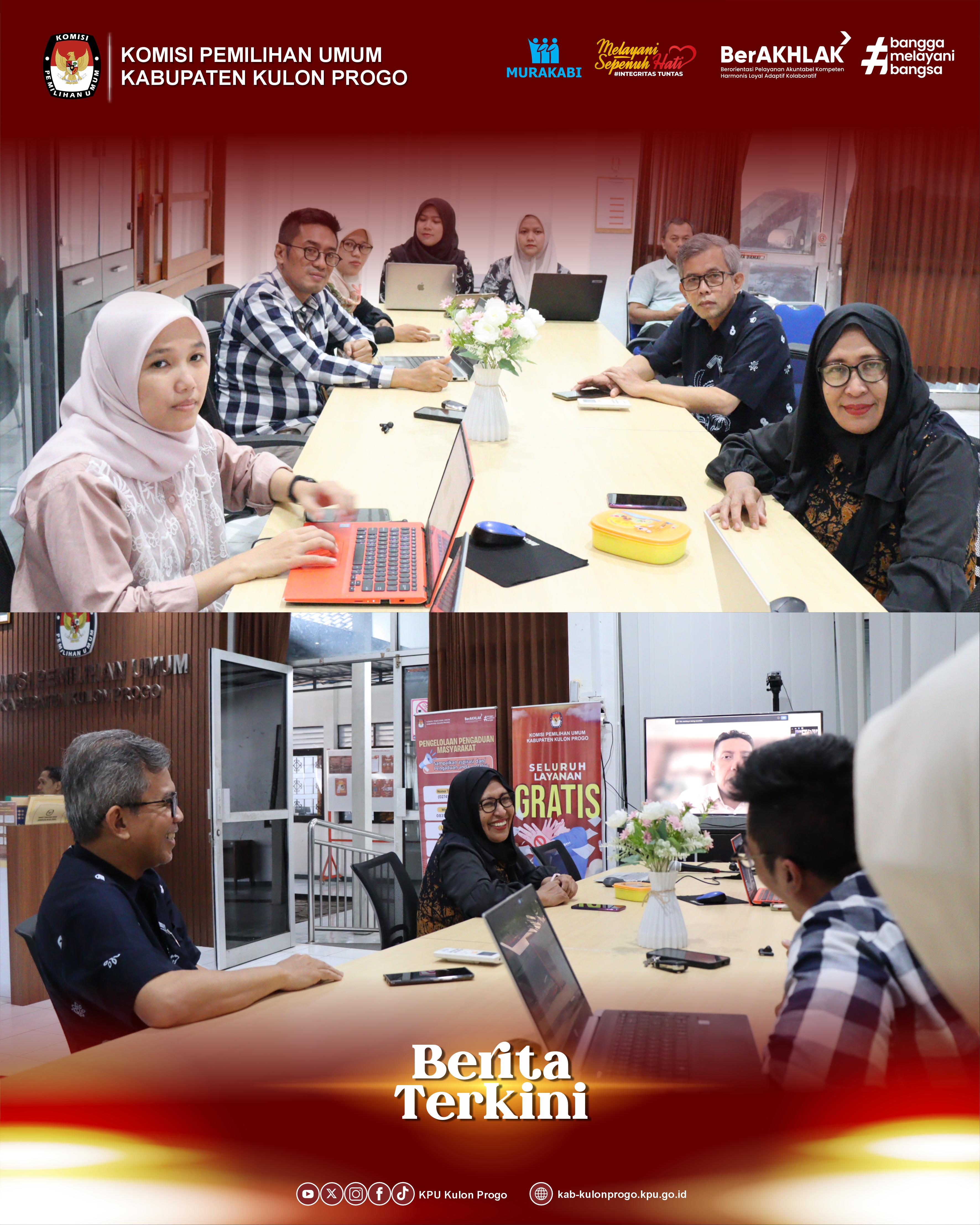 Wates, 11 September 2025. KPU Kabupaten Kulon Progo mengikuti kegiatan Paparan Hasil Kajian Teknis Pemilu dan Pemilihan yang diselenggarakan secara daring oleh KPU DIY. Acara ini dihadiri oleh Ketua KPU Kabupaten Kulon Progo, Ketua Divisi Teknis Penyelenggaraan, dan Pelaksana Teknis Penyelenggaraan Pemilu.