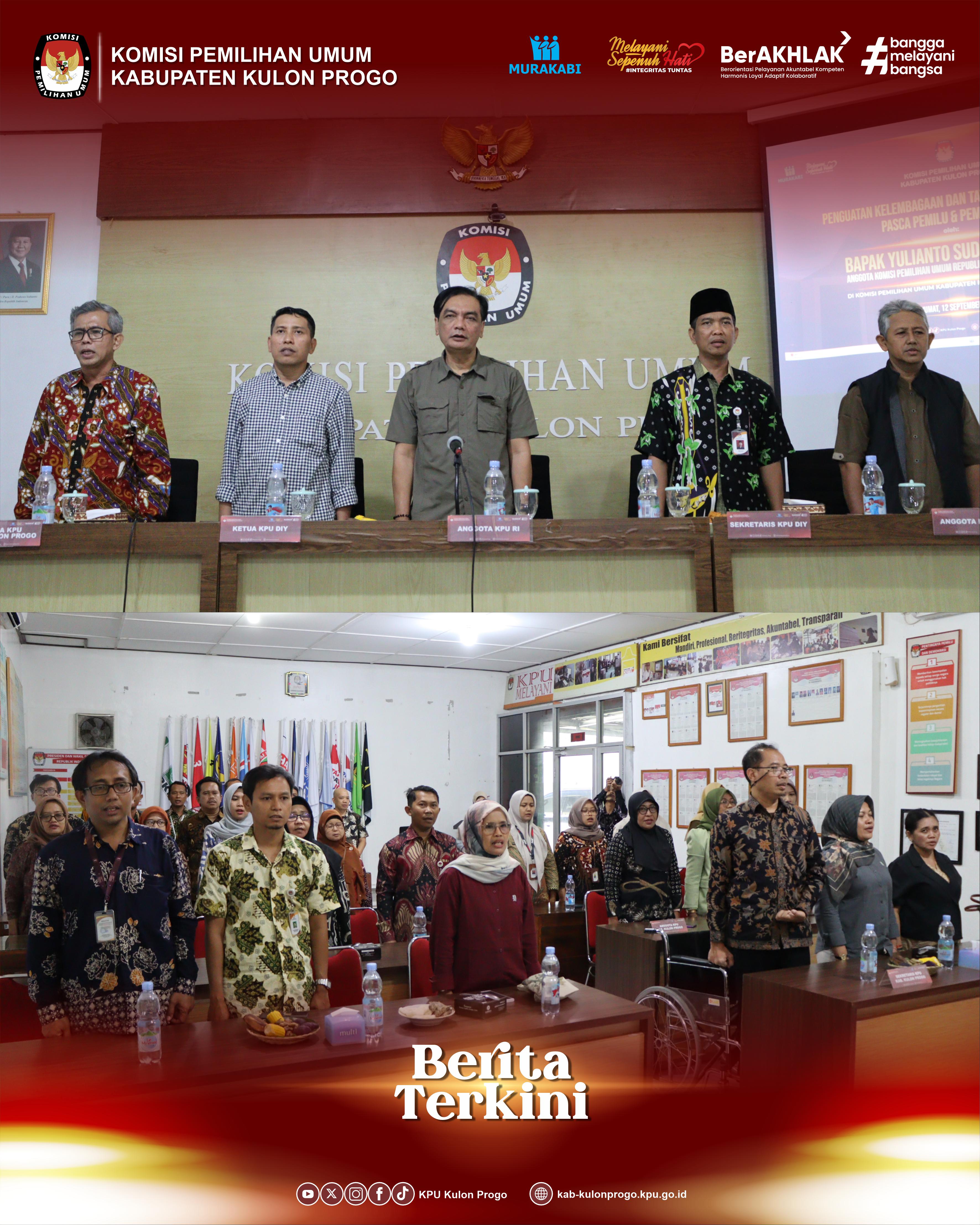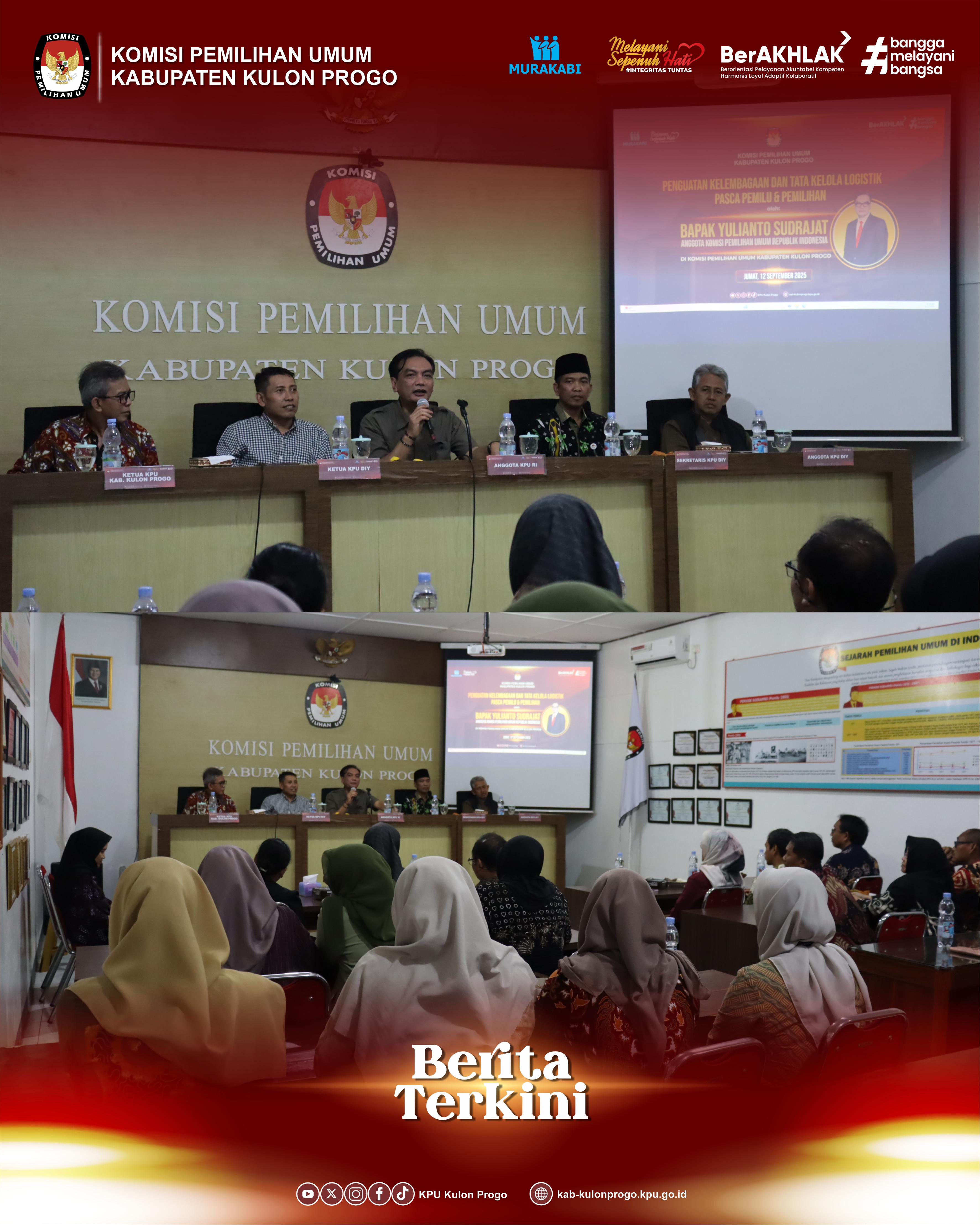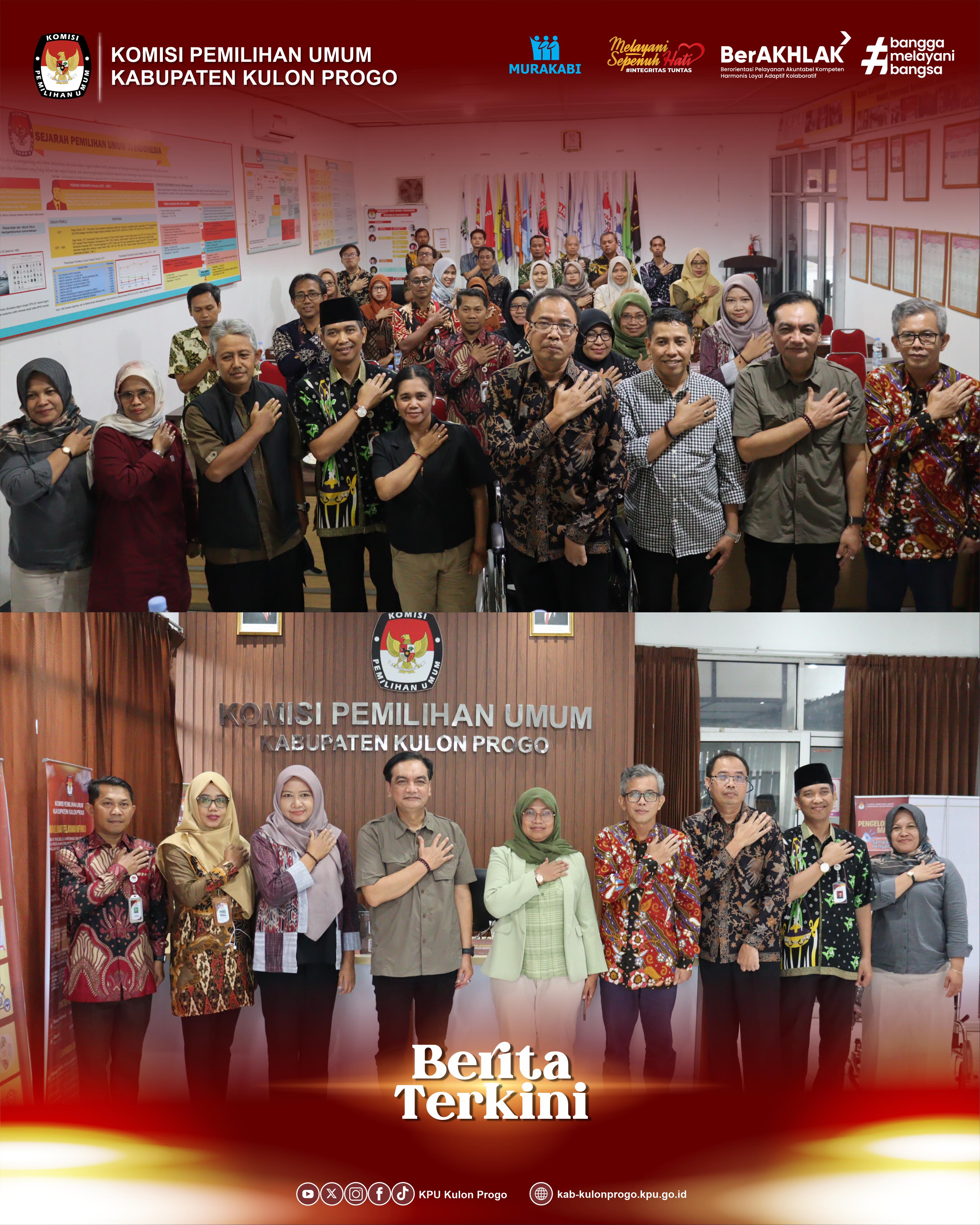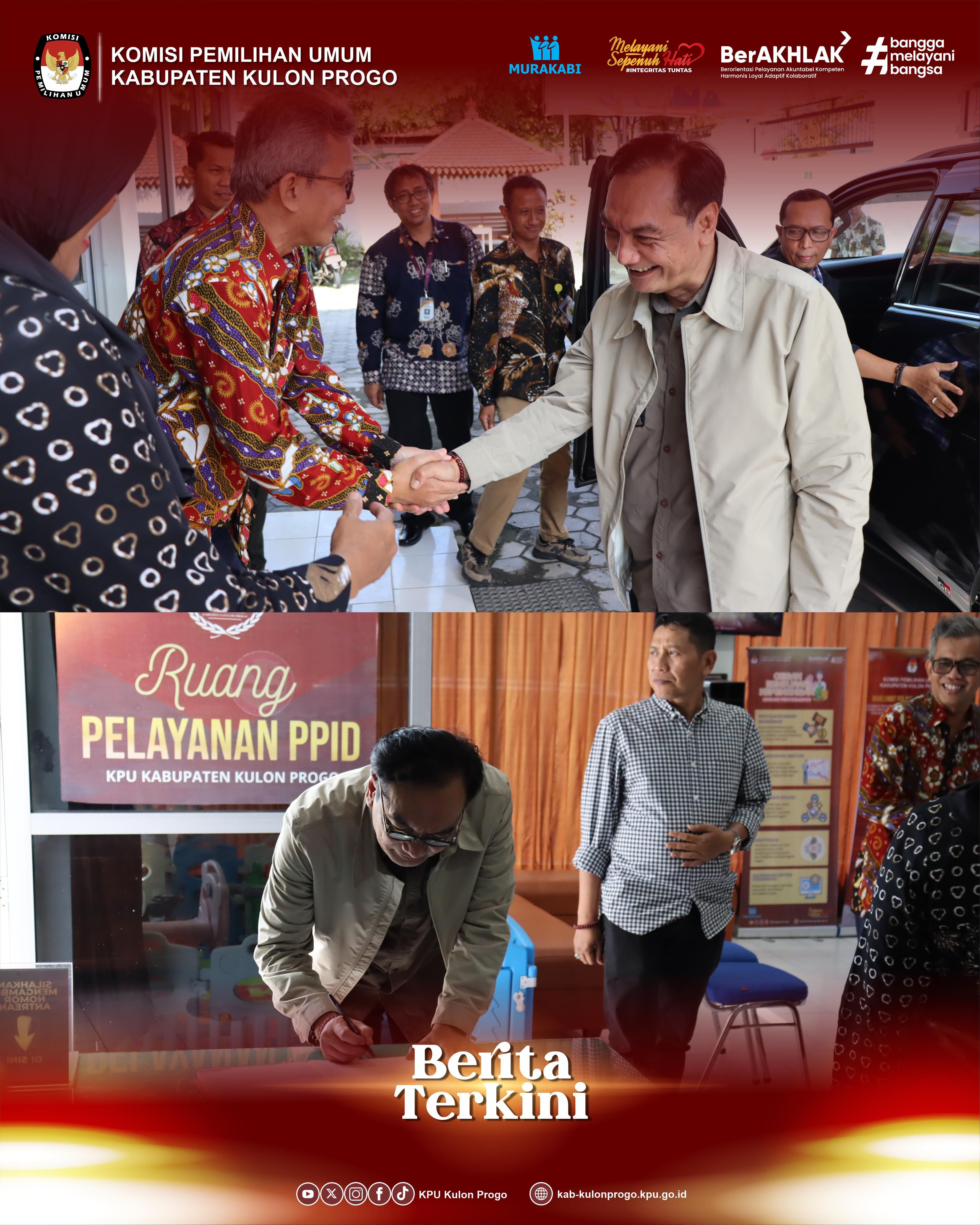 Kulon Progo, 12 September 2025 — Komisi Pemilihan Umum (KPU) Kabupaten Kulon Progo menerima kunjungan anggota KPU Republik Indonesia, Yulianto Sudrajat, pada Jumat (12/9) pukul 14.30 WIB. Kedatangan beliau disambut jajaran KPU Kulon Progo dan DIY.