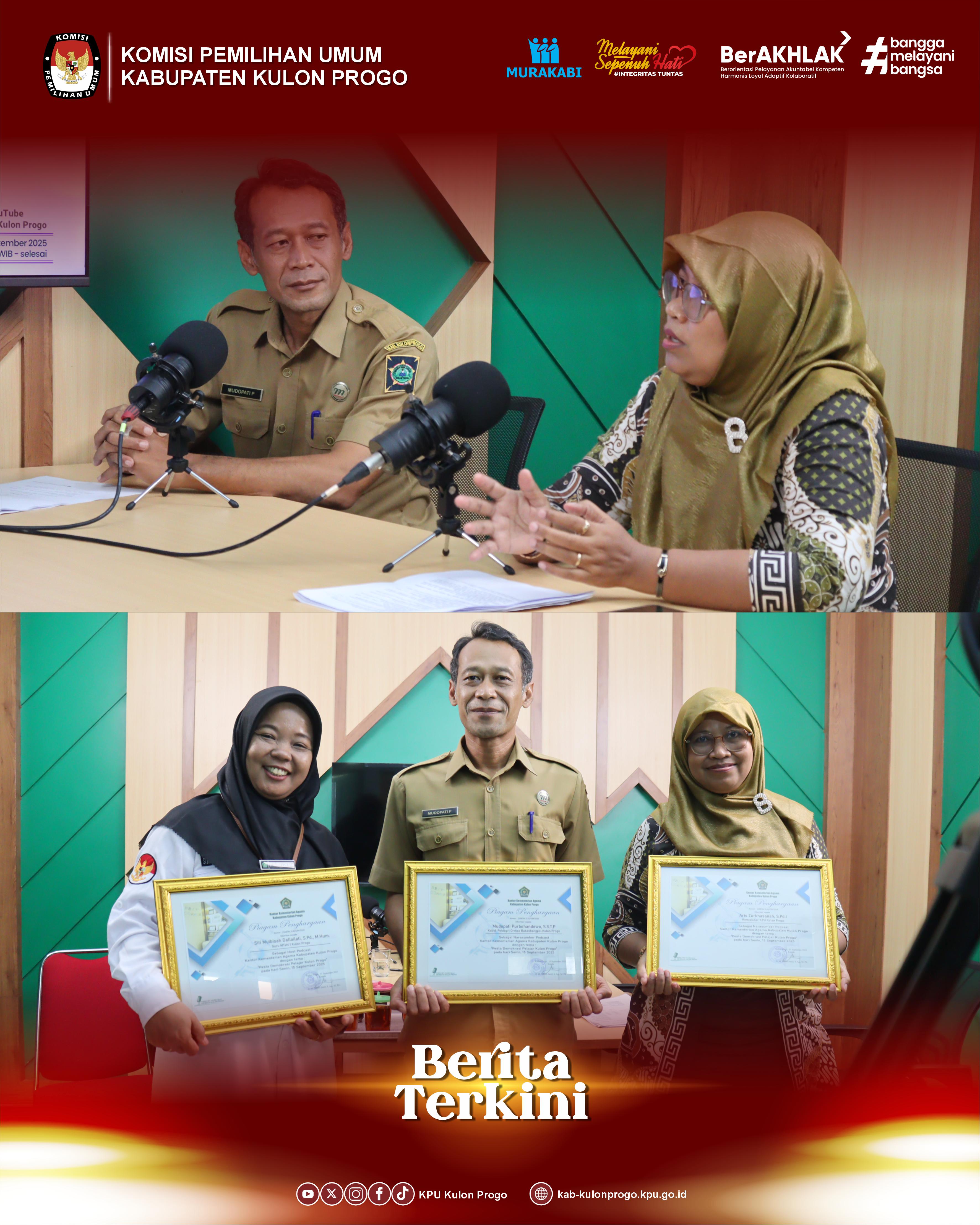 Kulon Progo, 15 September 2025 — Anggota KPU Kabupaten Kulon Progo, Aris Zurkhasanah, menjadi narasumber dalam program Info Podcast Madrasah yang digelar di Kompleks Kementerian Agama Kabupaten Kulon Progo. Acara ini mengusung tema “Pesta Demokrasi Pelajar Kulon Progo” dan disiarkan melalui kanal YouTube Kemenag Kulon Progo.