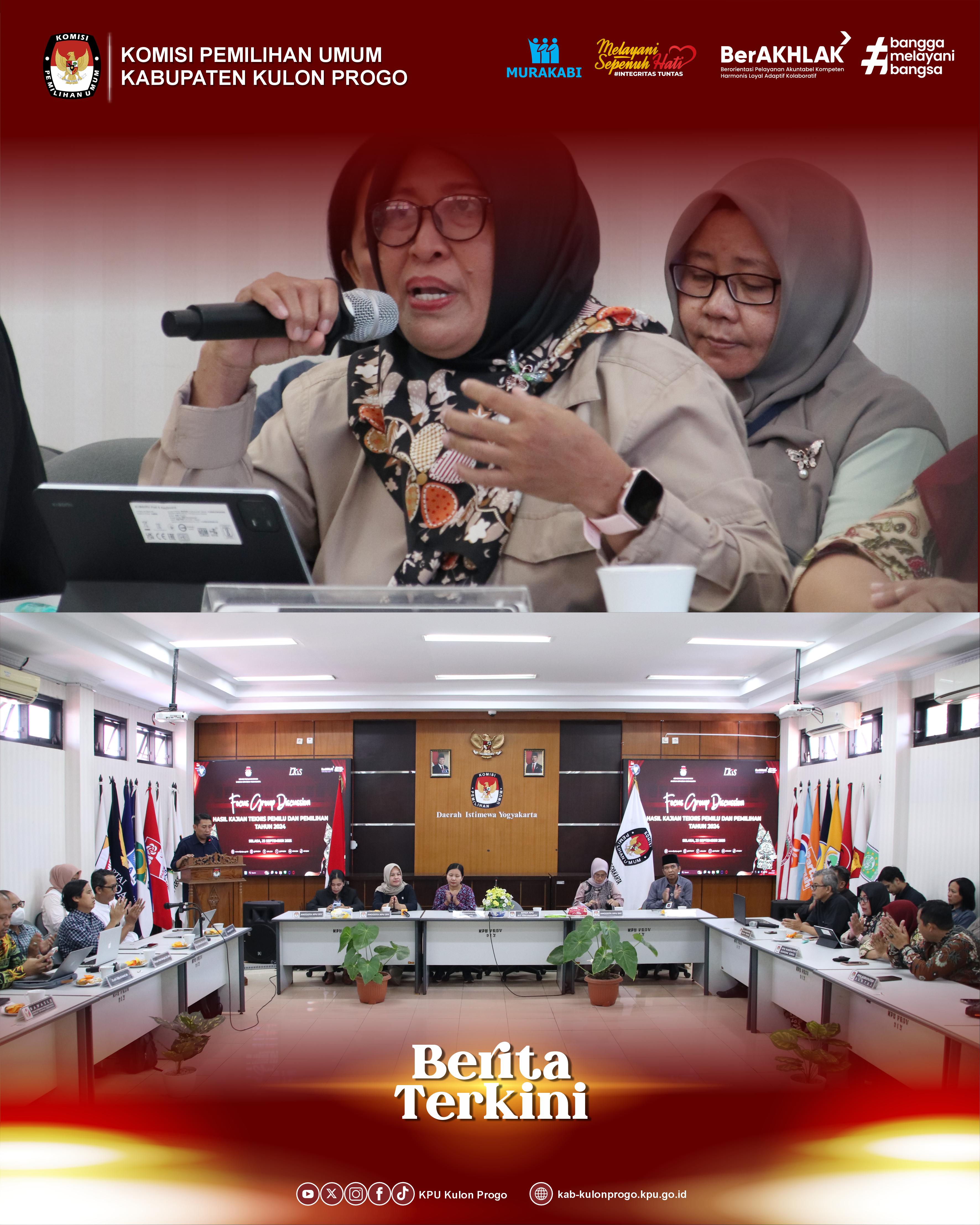 Yogyakarta, 23 September 2025 - Komisi Pemilihan Umum (KPU) Kabupaten Kulon Progo menghadiri kegiatan Focus Group Discussion (FGD) tentang hasil kajian teknis Pemilu dan Pemilihan tahun 2024. Acara ini diselenggarakan oleh KPU Daerah Istimewa Yogyakarta (DIY) dan didukung oleh Lembaga Kajian islam dan Sosial (LKiS) di ruang rapat KPU DIY dan menjadi puncak dari serangkaian diskusi yang telah berlangsung selama satu hingga dua bulan terakhir.