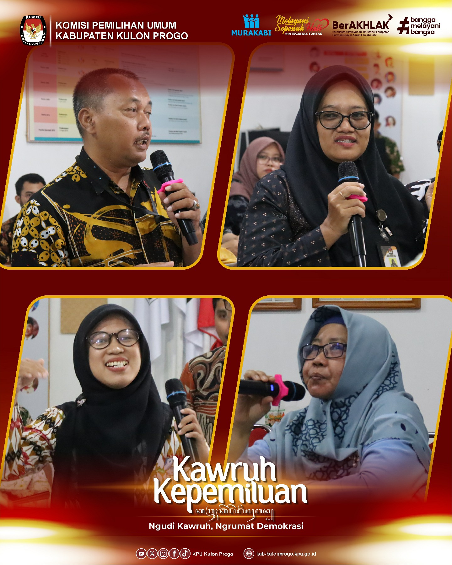 Kulon Progo – KPU Kabupaten Kulon Progo kembali menggelar kegiatan Kawruh Kepemiluan sebagai bagian dari upaya peningkatan kapasitas dan pemahaman kepemiluan bagi seluruh jajaran internal. Kegiatan yang berlangsung pada hari Jum’at, 3 Oktober 2025 ini mengangkat tema “Cara Berinteraksi dengan Penyandang Disabilitas “ dan diikuti oleh seluruh jajaran KPU Kabupaten Kulon Progo.