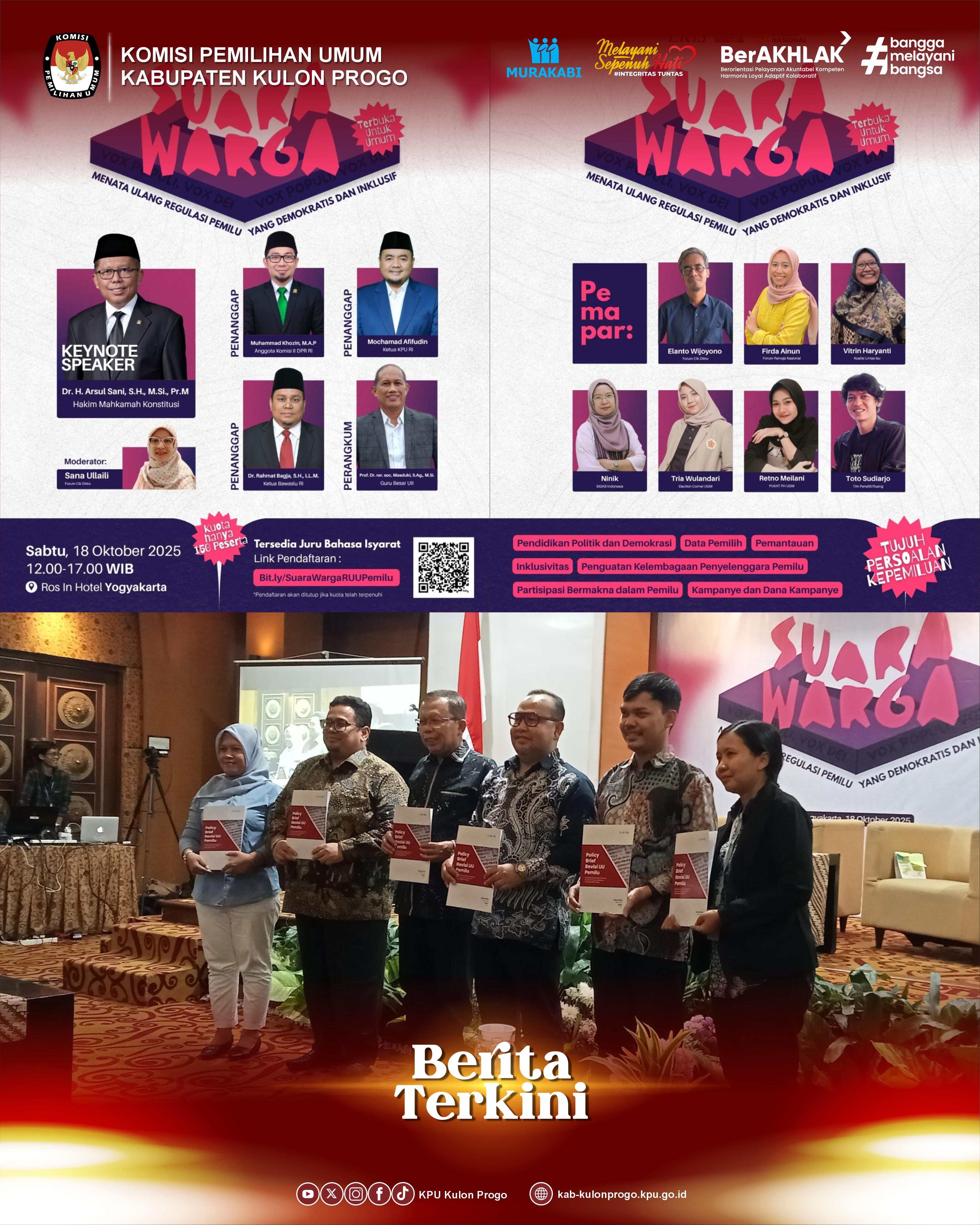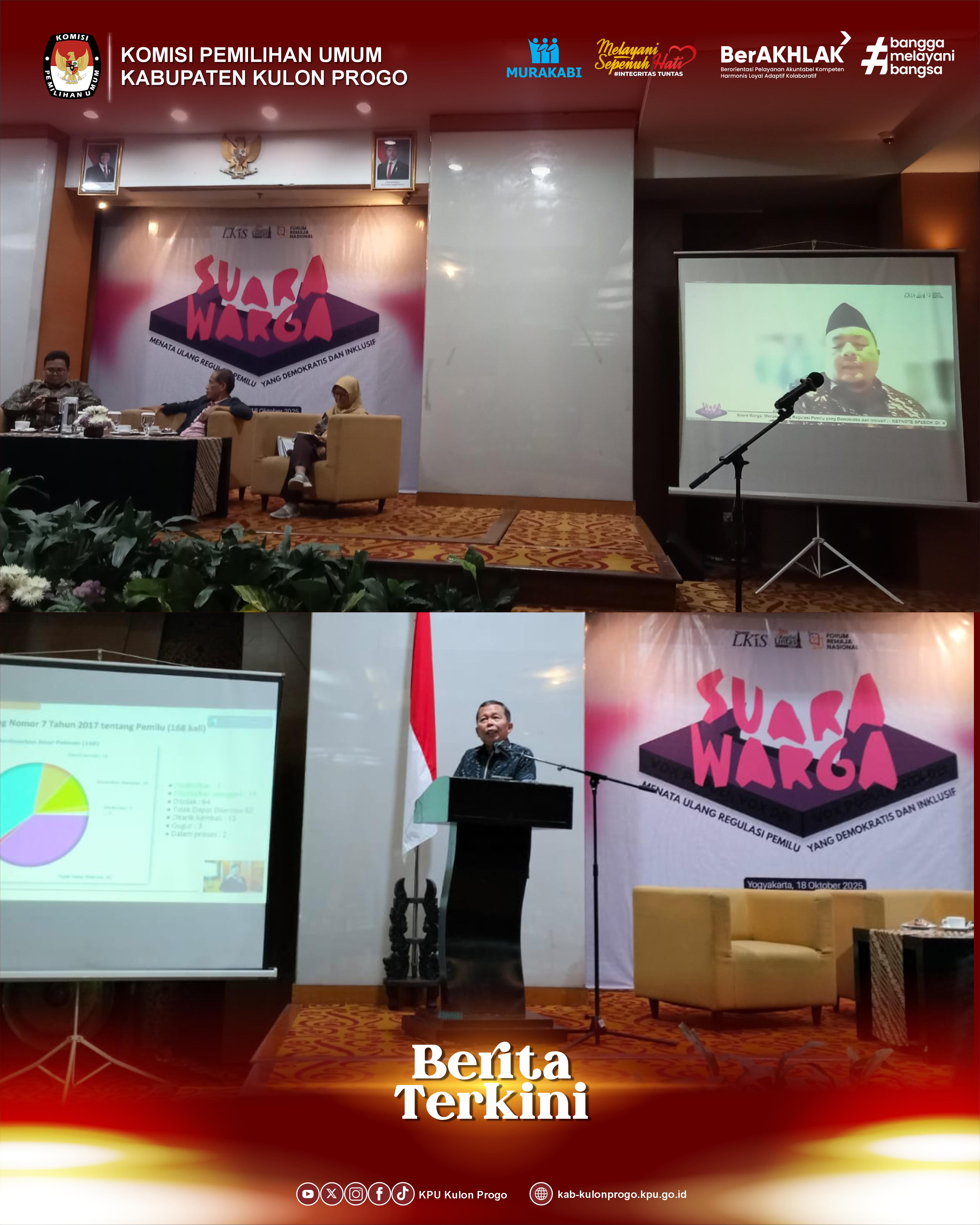 Yogyakarta, 18 Oktober 2025, KPU Kabupaten Kulon Progo hadiri Dialog Publik, Suara Warga: Menata Ulang Regulasi Pemilu yang Demokratis dan Inklusif yang diselenggarakan oleh Yayasan Lembaga Kajian islam dan Sosial bersama Srili dan Forum Lintas Isu, di Hotel Ross In Yogyakarta.