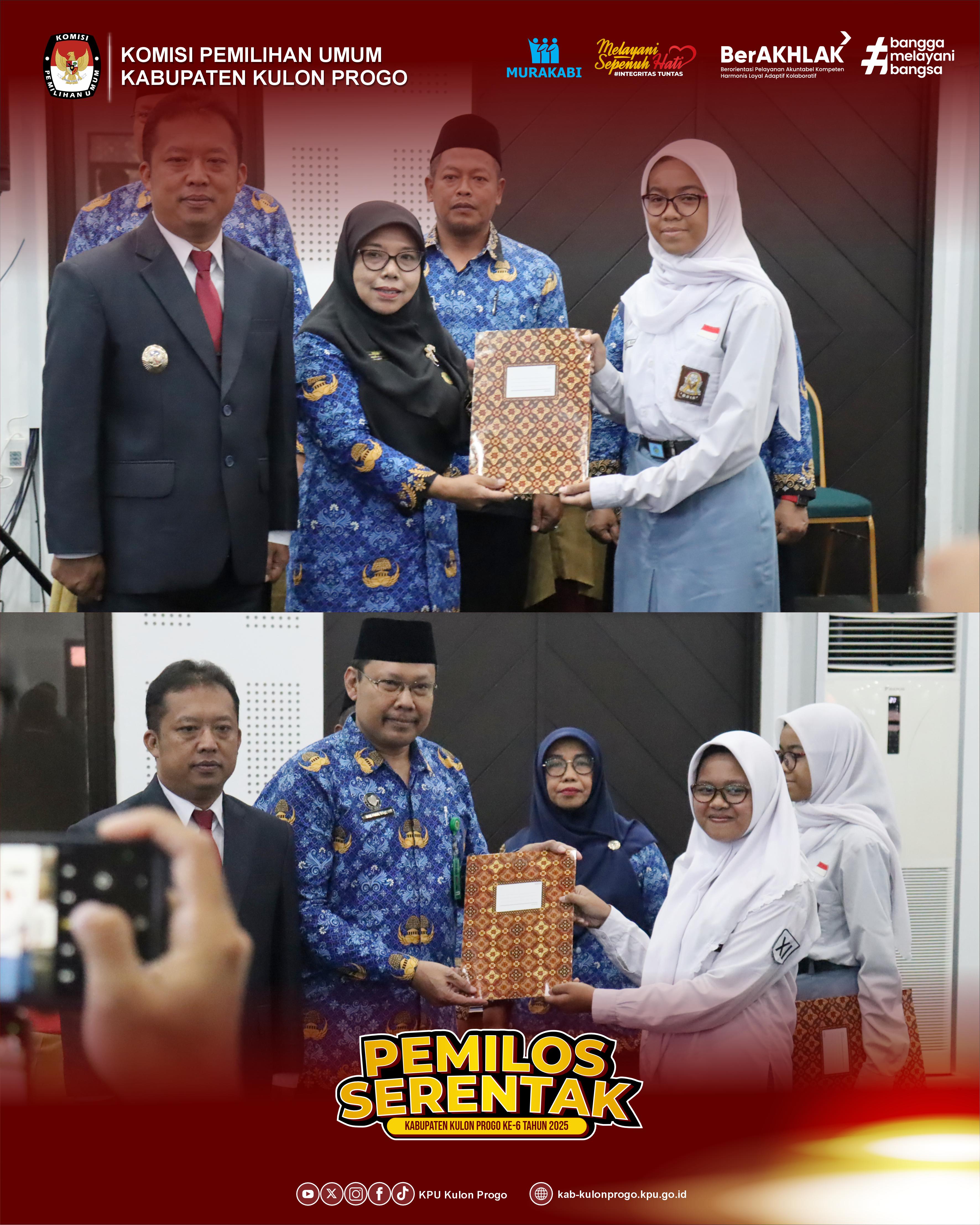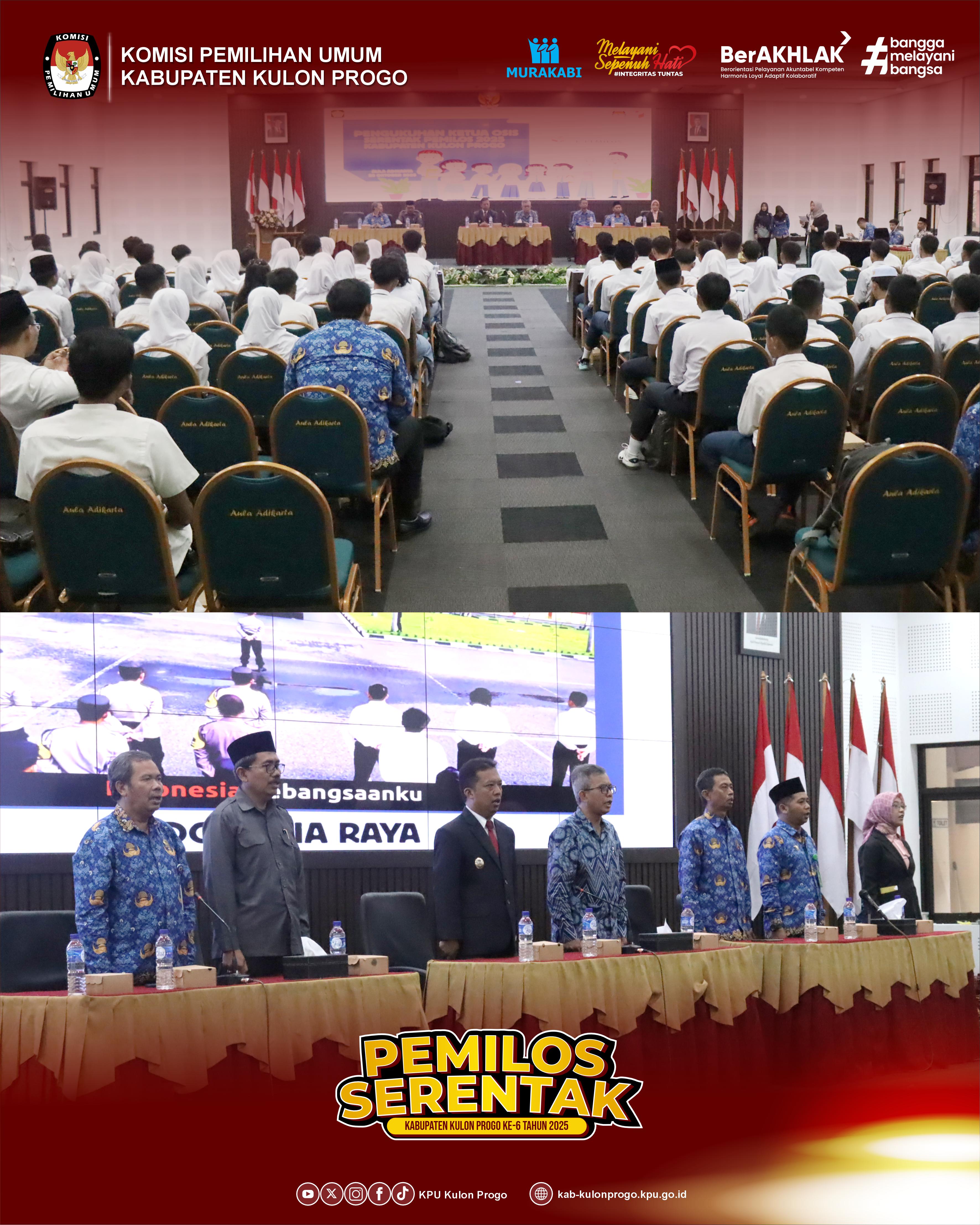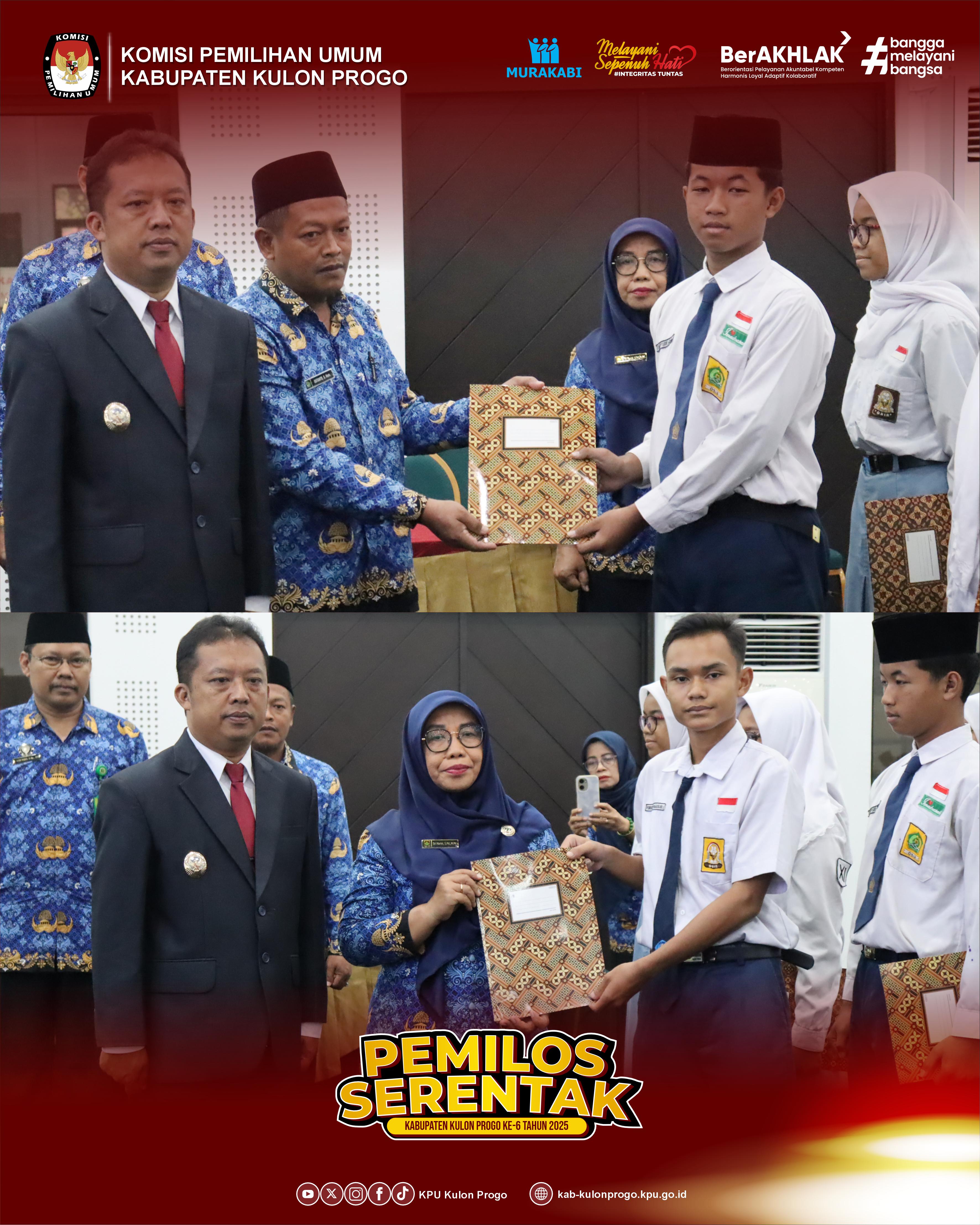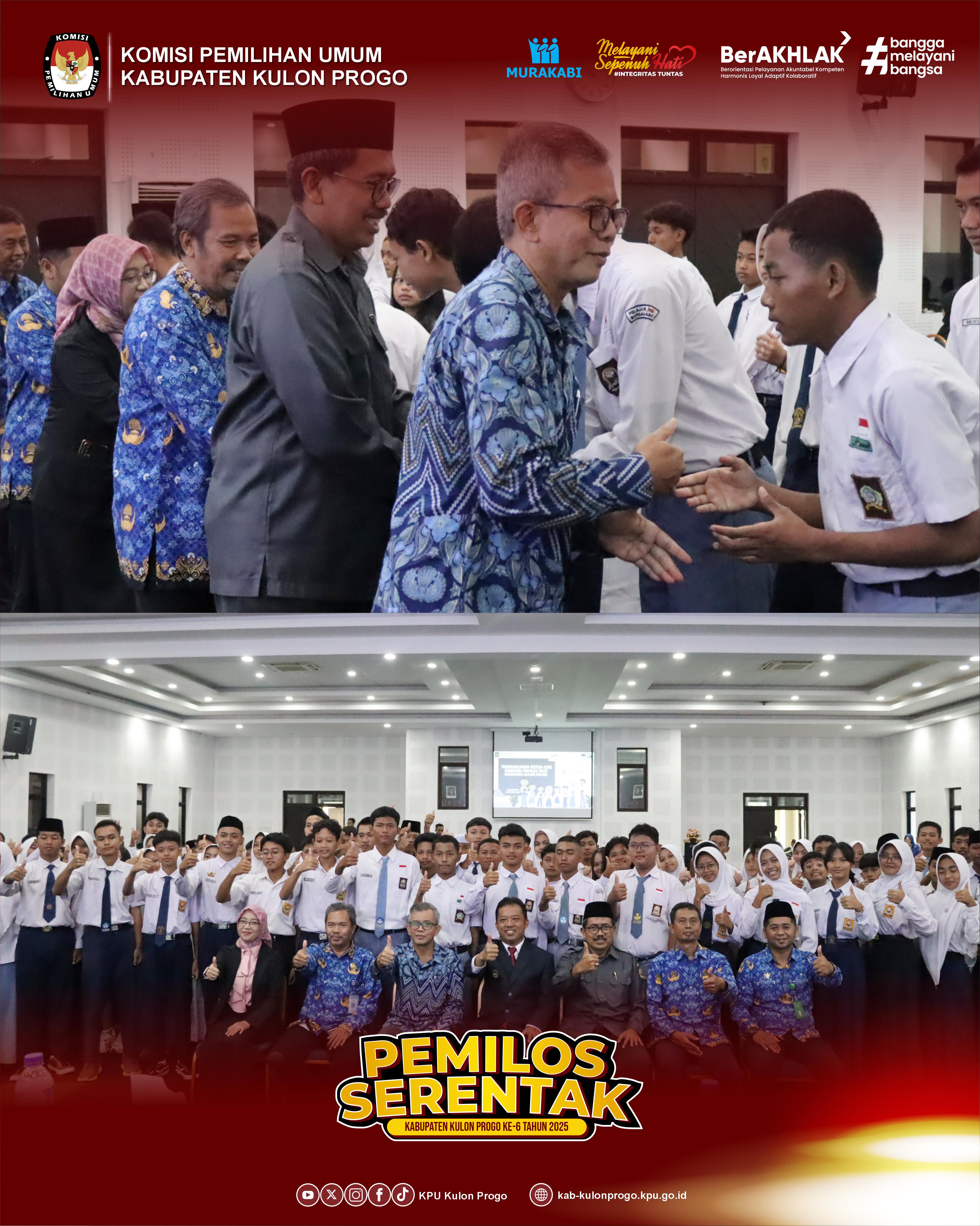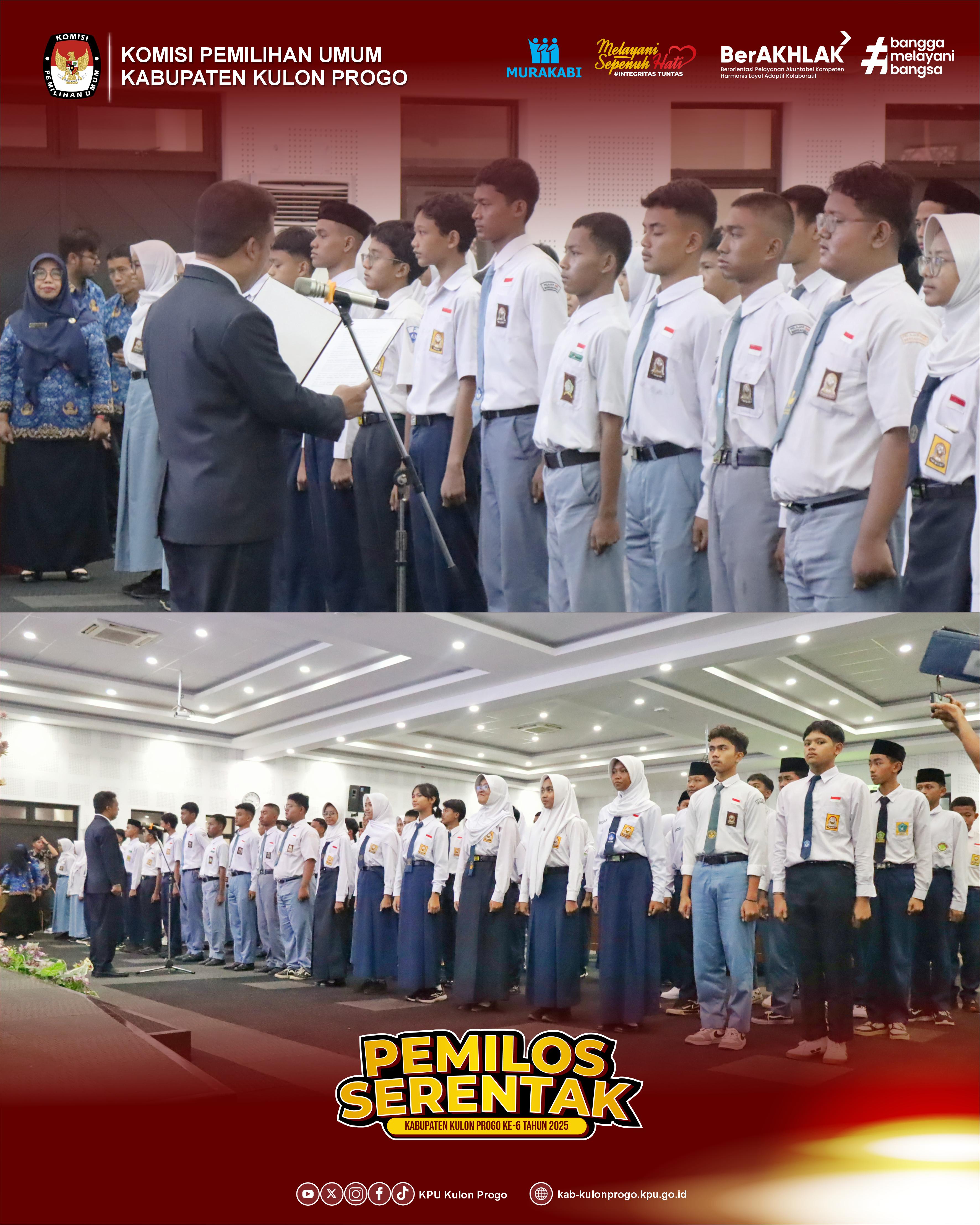 Wates, 28 Oktober 2025 — Bertepatan dengan peringatan Hari Sumpah Pemuda, Wakil Bupati Kulon Progo, Ambar Purwoko, secara resmi mengukuhkan 81 Ketua OSIS terpilih hasil Pemilos Serentak Kabupaten Kulon Progo ke-6 Tahun 2025. Acara pengukuhan turut dihadiri oleh Ketua KPU Kabupaten Kulon Progo, Budi Priyana, bersama perwakilan instansi terkait serta peserta dari sekolah yang mengikuti Pemilos Serentak.