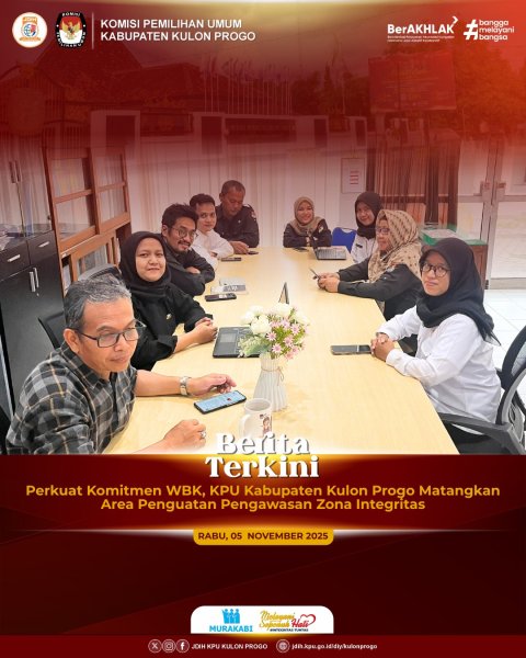 Wates, 5 November 2025 – Komisi Pemilihan Umum (KPU) Kabupaten Kulon Progo terus menunjukkan komitmennya dalam membangun Zona Integritas (ZI) menuju Wilayah Bebas dari Korupsi (WBK) dan Wilayah Birokrasi Bersih dan Melayani (WBBM). Sebagai langkah konkret, KPU Kabupaten Kulon Progo menggelar Rapat Koordinasi Internal Tim Area Penguatan Pengawasan Pembangunan ZI di Pendopo KPU pada hari Rabu (5/11/2025).