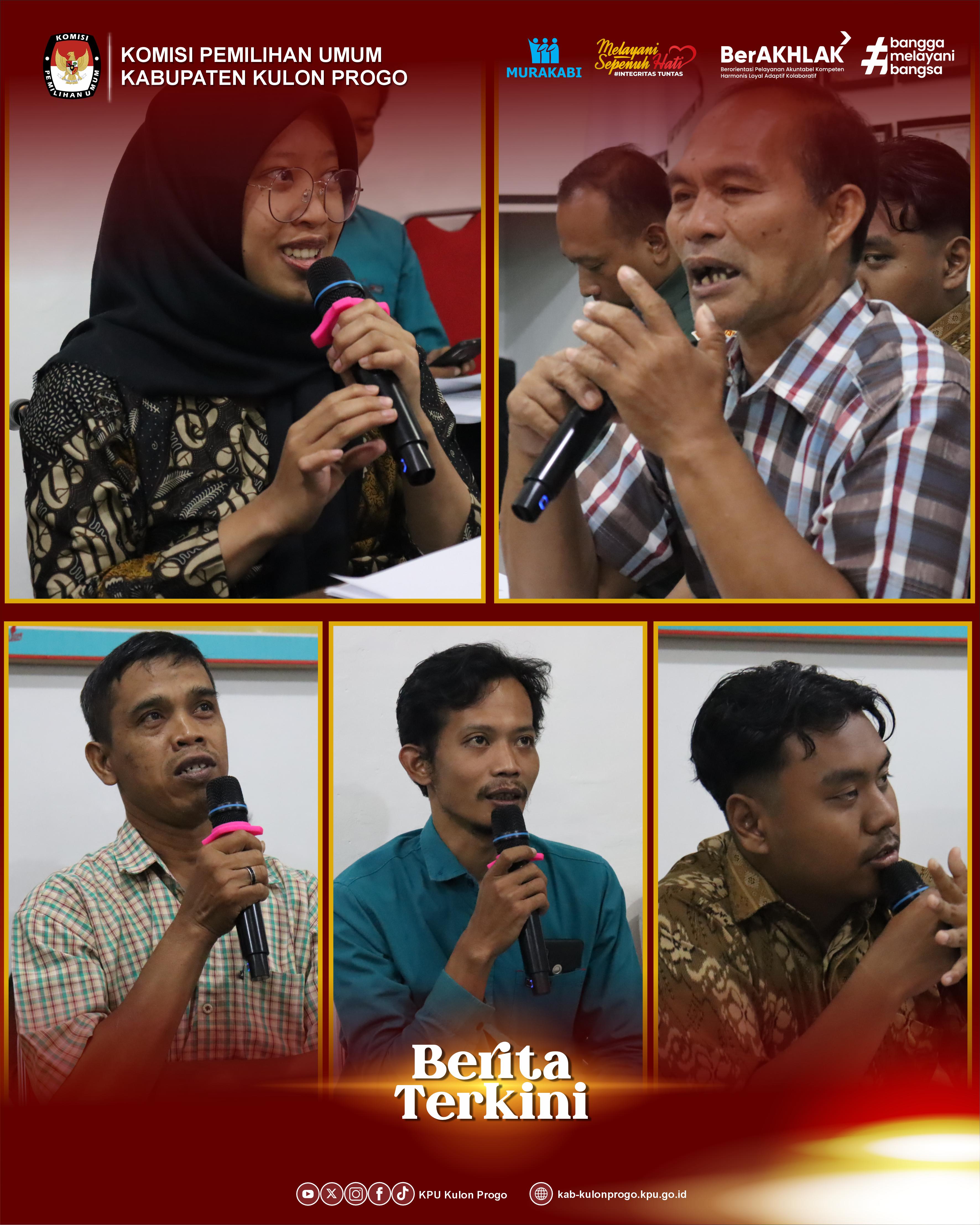 Setelah sesi pemaparan, kegiatan dilanjutkan dengan diskusi interaktif, di mana para peserta memberikan saran dan rekomendasi konstruktif guna mendukung peningkatan mutu pelayanan KPU Kabupaten Kulon Progo di masa mendatang.