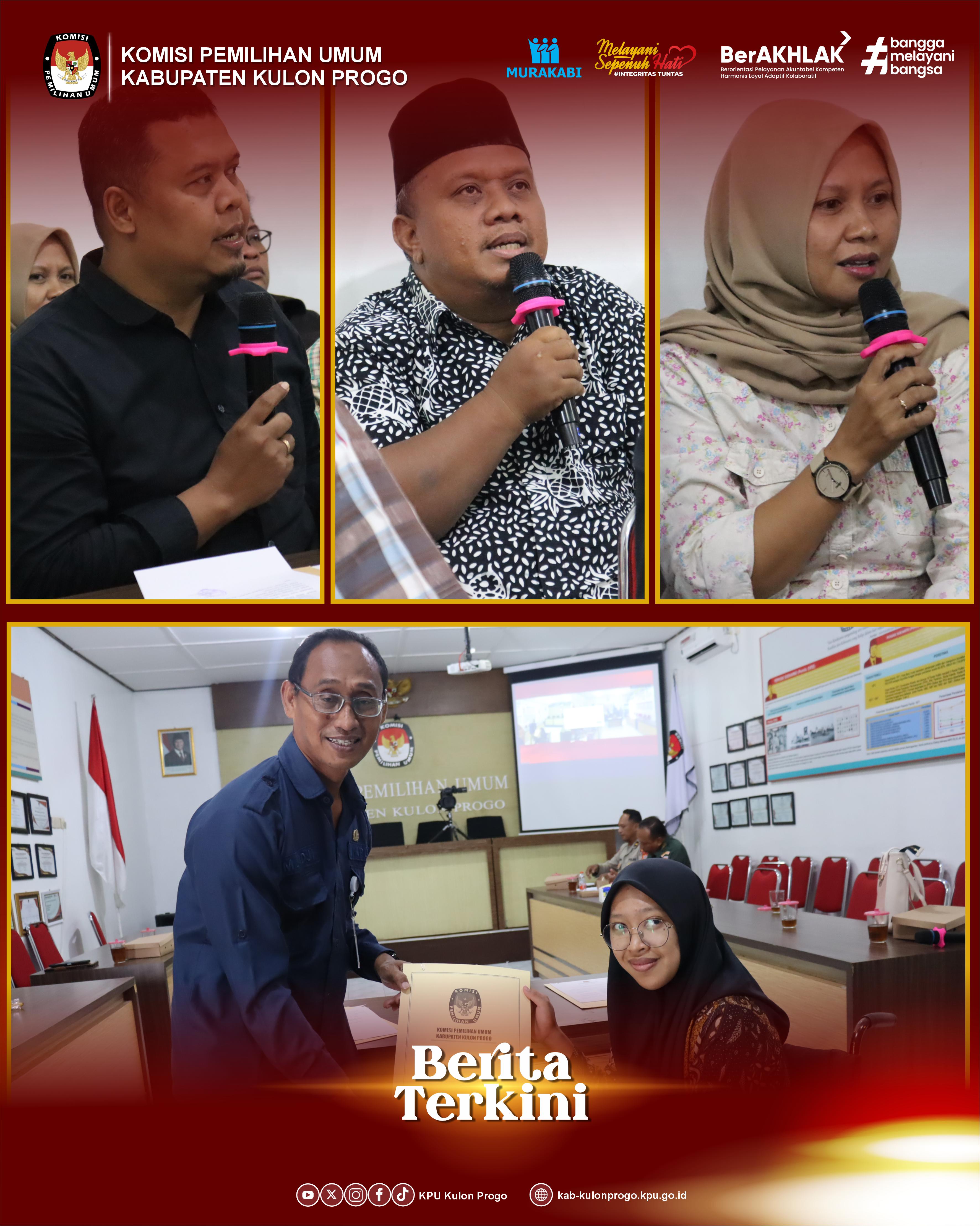 Sebagai penutup, KPU Kabupaten Kulon Progo juga melakukan sosialisasi budaya kerja “Murakabi”, yang menjadi pedoman sikap dan semangat kerja seluruh jajaran dalam mewujudkan pelayanan publik yang cepat, ramah, dan bermanfaat bagi masyarakat.