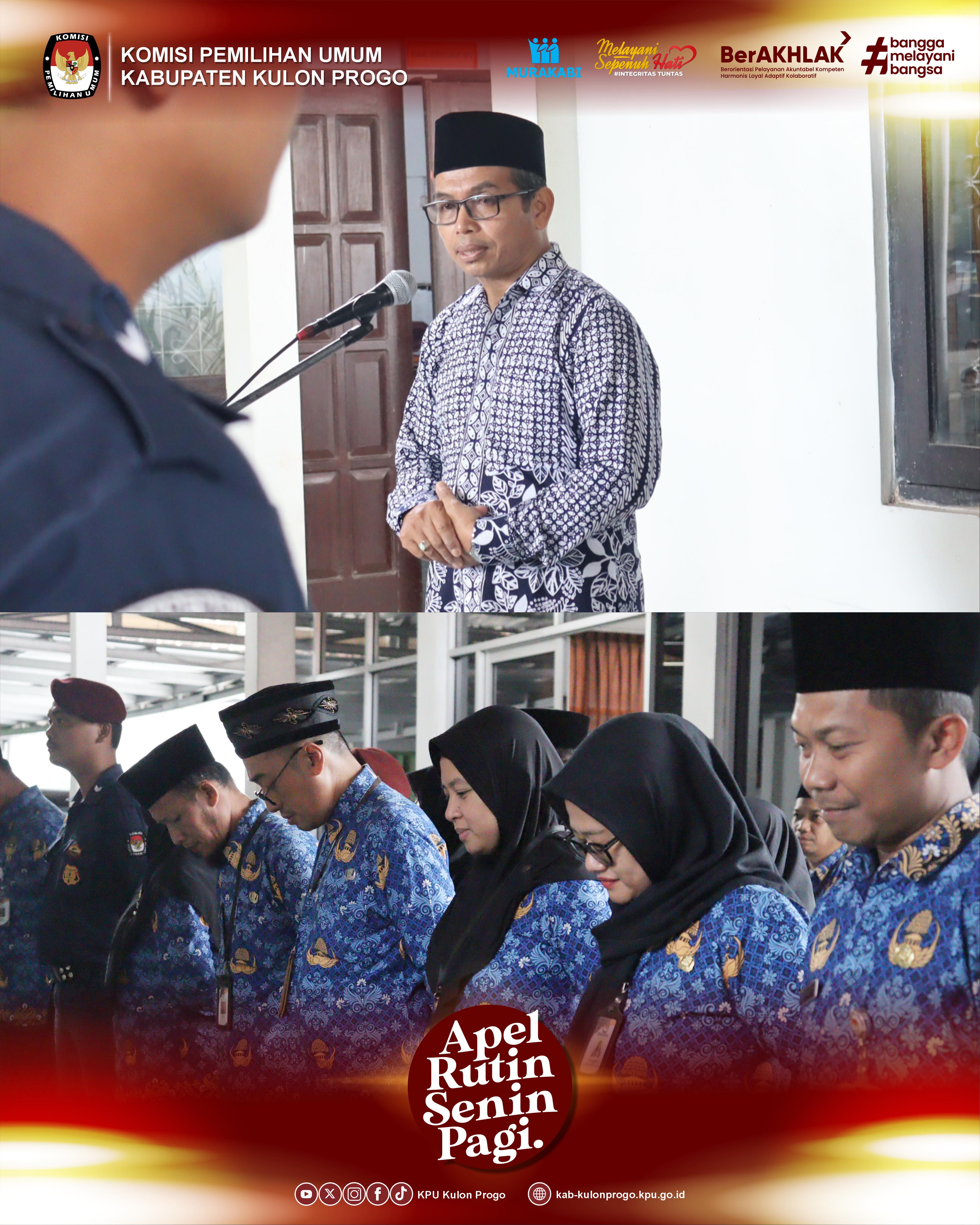 Kulon Progo- KPU Kabupaten Kulon Progo menggelar apel senin pagi di halaman kantor setempat pada Senin, 17 November 2025. Bertindak sebagai pembina apel, Ketua Divisi Hukum dan Pengawasan, M. Puja Rasa Satuhu, menyampaikan amanat yang berfokus pada pentingnya ketangguhan diri dalam menjalankan tugas maupun menghadapi dinamika kehidupan.