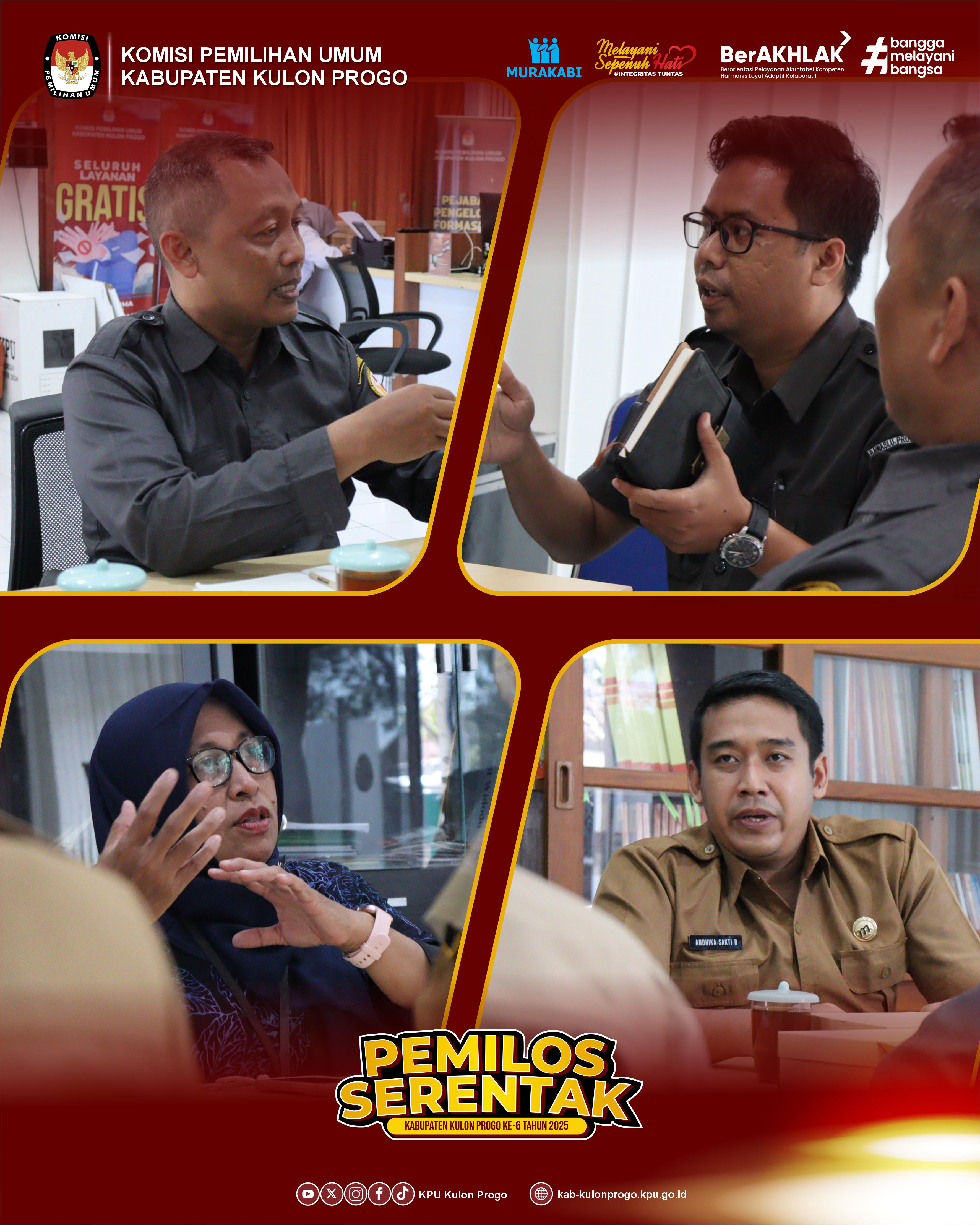 KPU Kabupaten Kulon Progo melaksanakan kegiatan Evaluasi Pelaksanaan Pemilihan Ketua OSIS (Pemilos) Serentak Tahun 2025 yang diikuti dinas dan instansi terkait selaku jajaran penyelenggara. Kegiatan ini bertujuan untuk meninjau kembali seluruh tahapan pelaksanaan Pemilos, mulai dari sosialisasi, persiapan teknis, proses pemungutan suara, hingga rekapitulasi hasil.