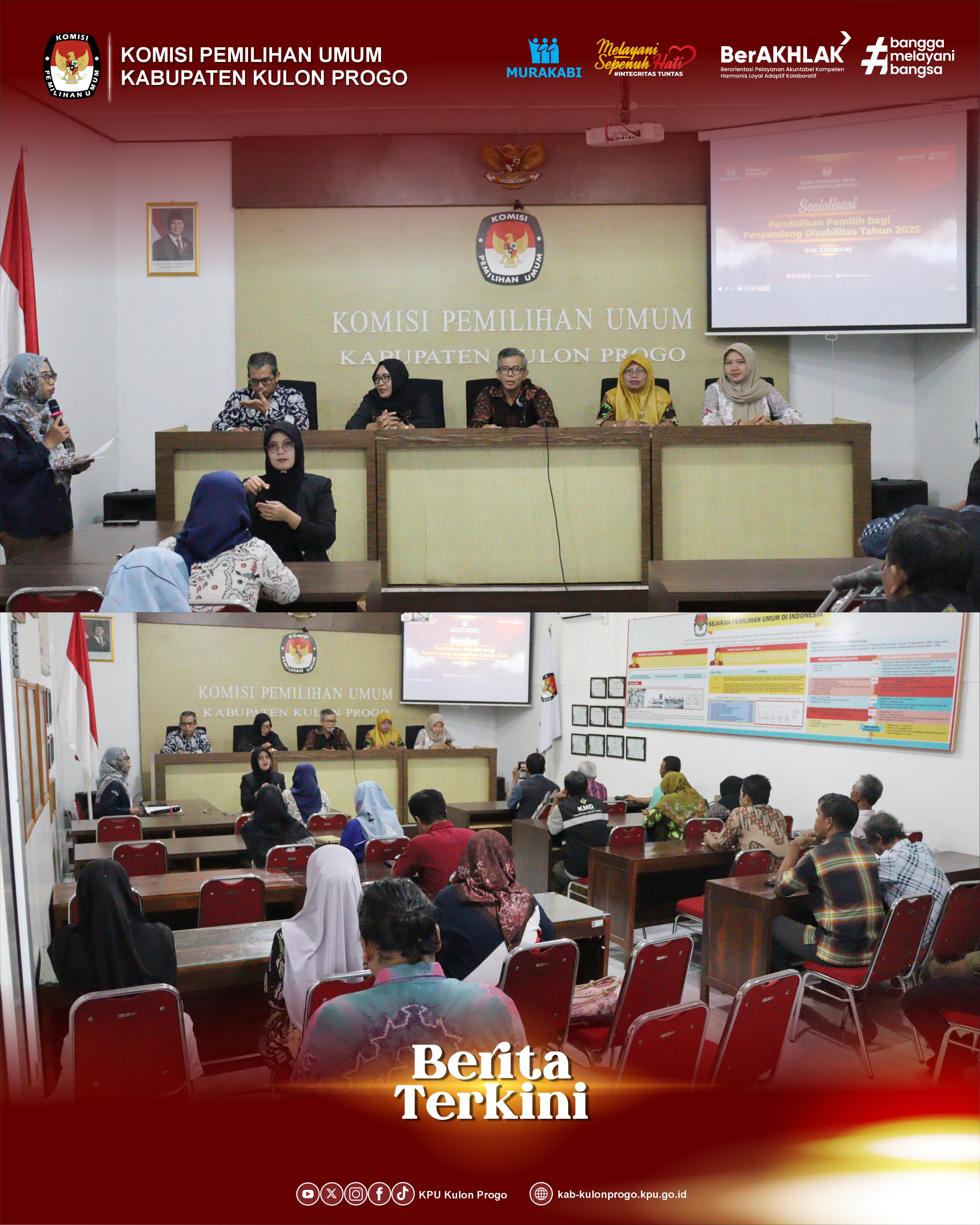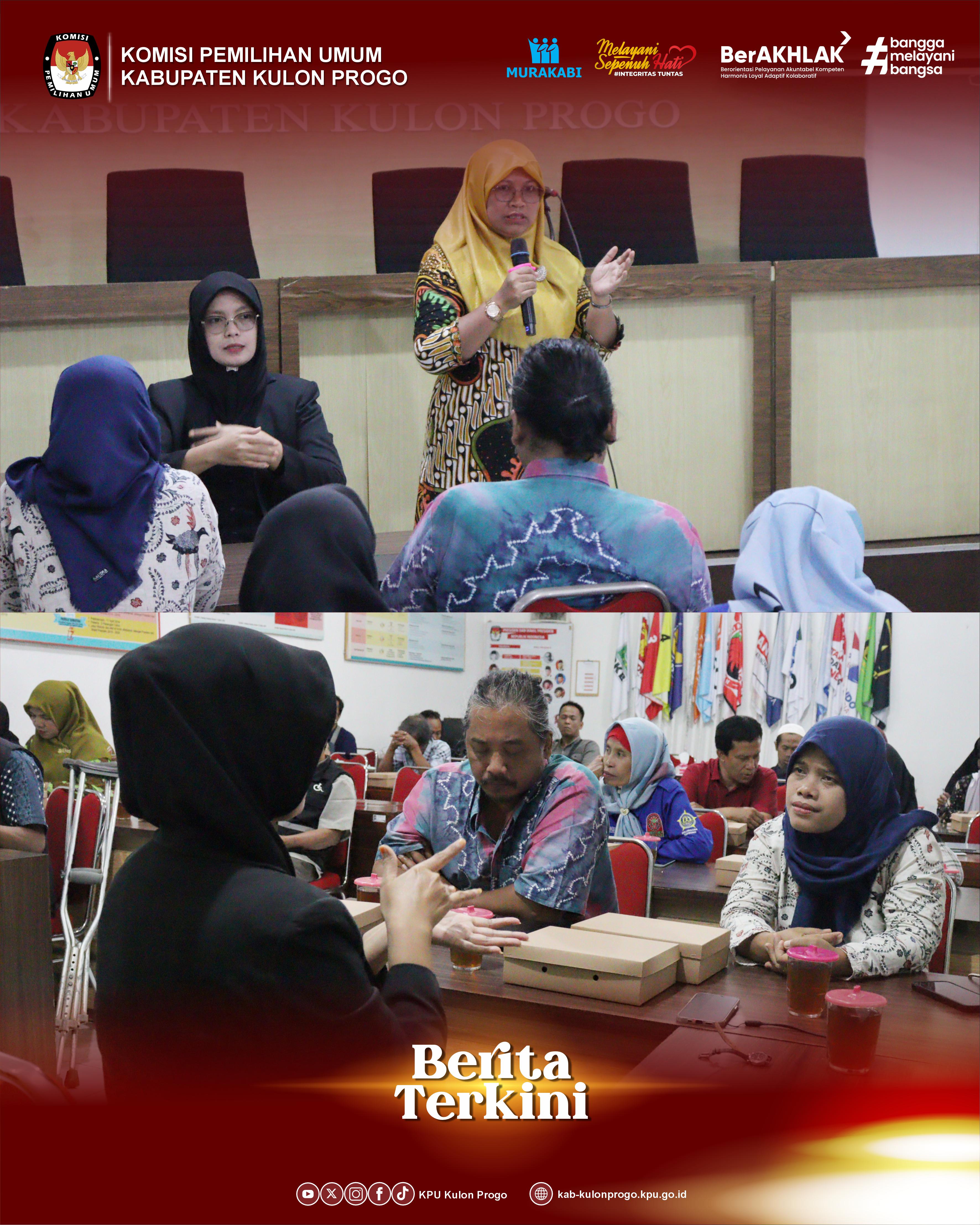 Wates, 25 November 2025 — Komisi Pemilihan Umum Kabupaten Kulon Progo menyelenggarakan sosialisasi pendidikan pemilih bagi penyandang disabilitas di Rumah Pintar Pemilu. Kegiatan ini menjadi bagian dari kewajiban KPU pada masa non-tahapan, khususnya terkait pemutakhiran data pemilih serta perluasan pendidikan pemilih yang inklusif.