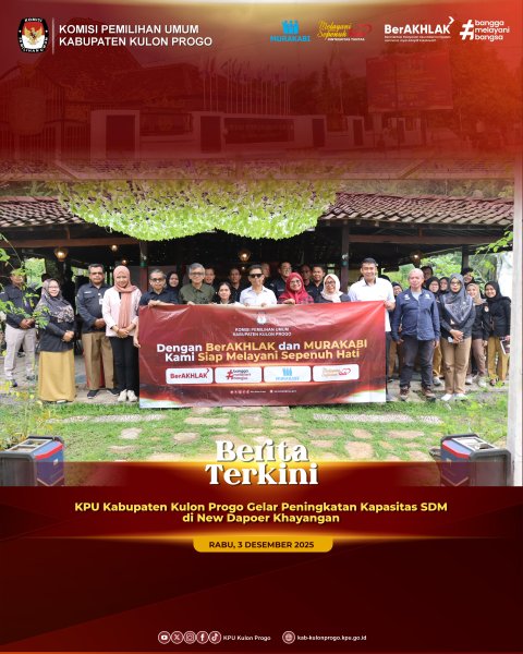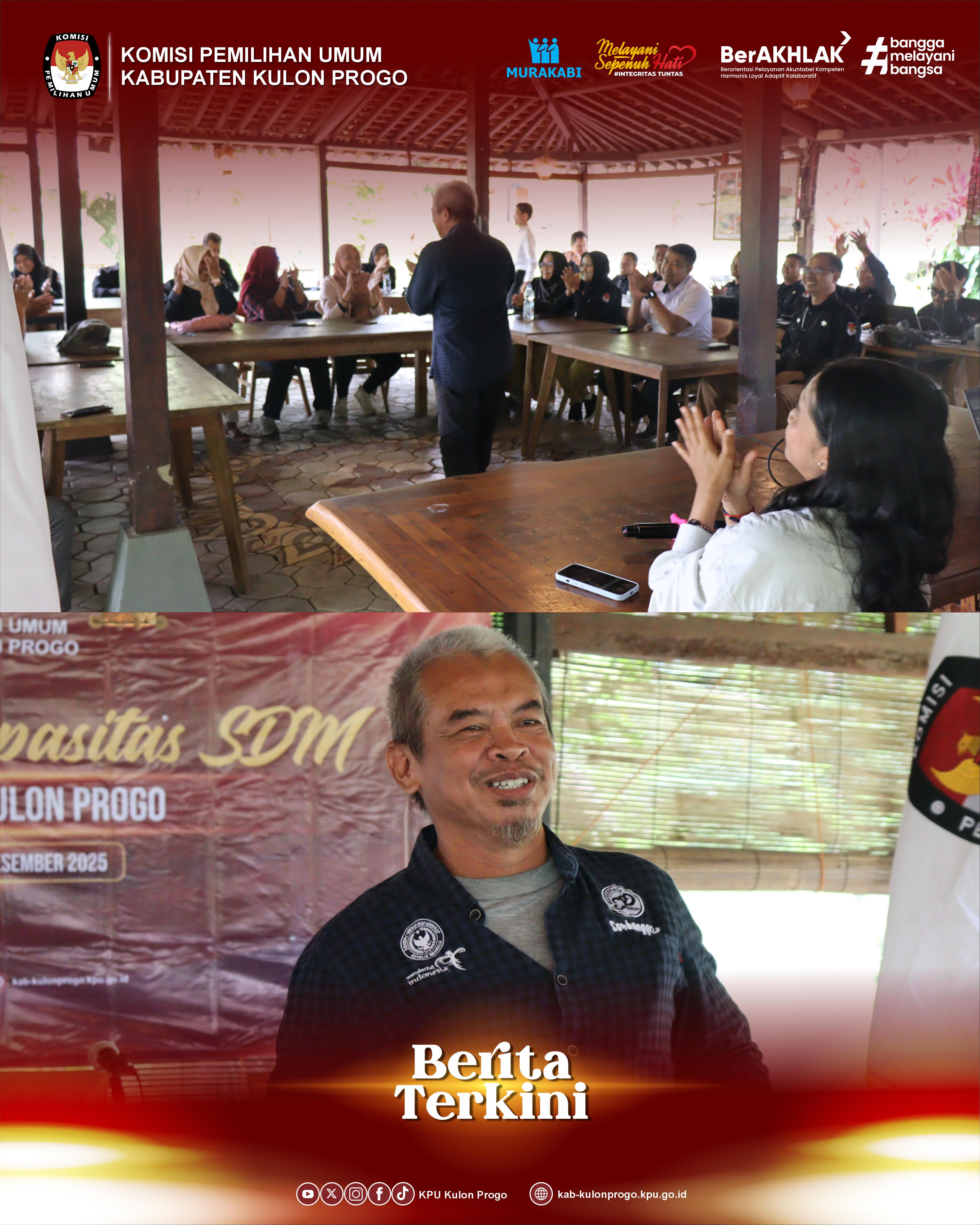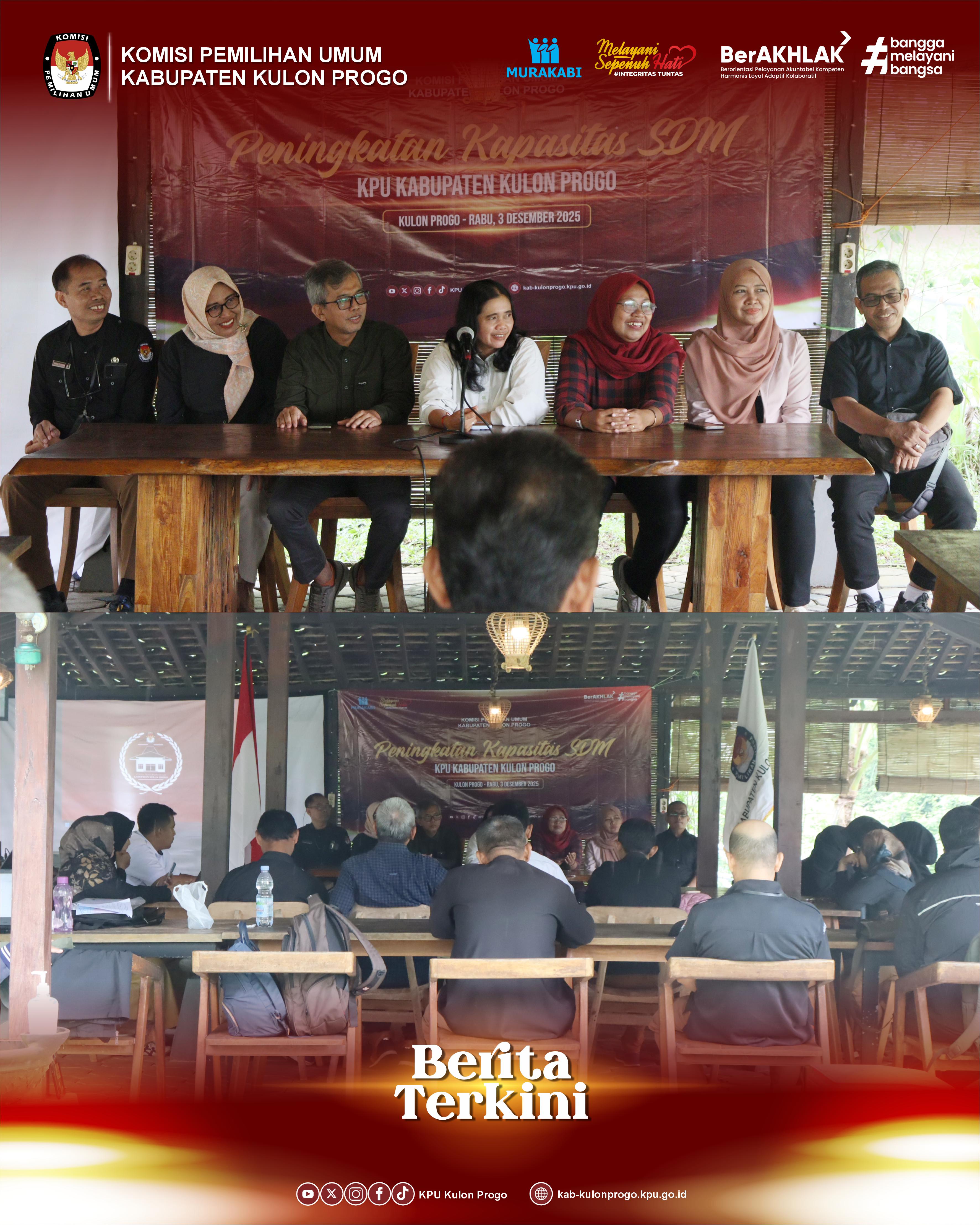 Kulon Progo – Dalam rangka meningkatkan kompetensi dan kualitas penyelenggara Pemilu, KPU Kabupaten Kulon Progo menyelenggarakan kegiatan Peningkatan Kapasitas SDM pada Rabu, 3 Desember 2025 bertempat di New Dapoer Khayangan, Kulon Progo.