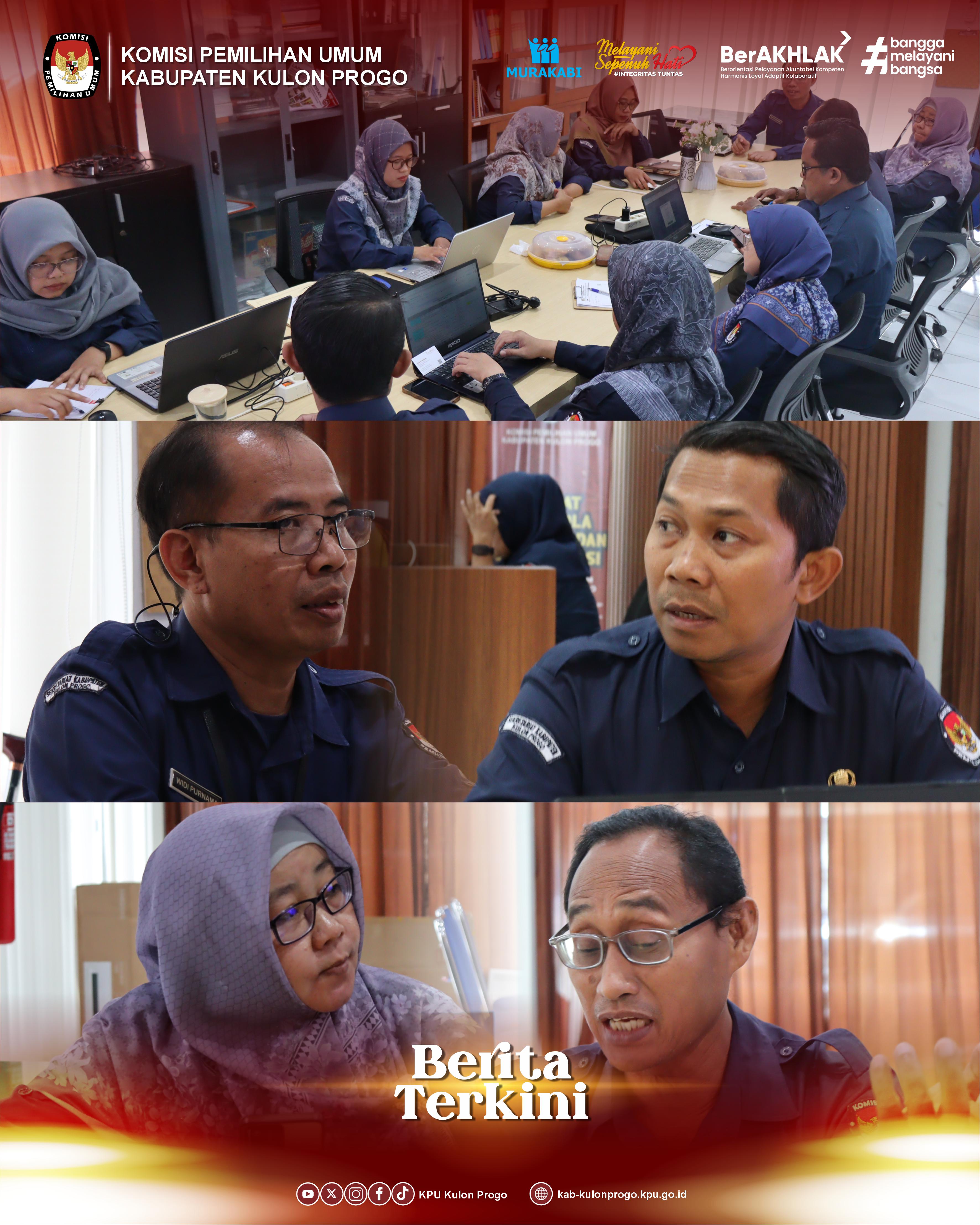 Wates — Komisi Pemilihan Umum (KPU) Kabupaten Kulon Progo kembali melaksanakan Rapat Evaluasi Capaian Kinerja Mingguan pada Selasa (16/12/2025) bertempat di Ruang Pendopo KPU Kabupaten Kulon Progo. Kegiatan rutin ini dipimpin oleh Sekretaris, dan diikuti oleh seluruh Kasubbag, Pejabat Pengadaan, Pengelola Keuangan, serta staf Sub Bagian Rendatin di lingkungan KPU Kabupaten Kulon Progo.