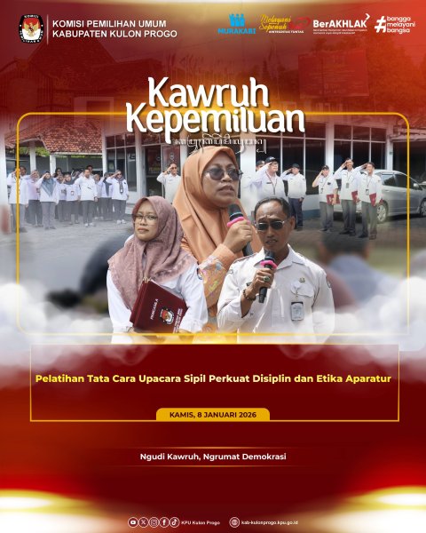 Komisi Pemilihan Umum (KPU) Kabupaten Kulon Progo menyelenggarakan kegiatan Kawruh Kepemiluan dengan temaTata Cara Upacara Sipil sebagai bentuk evaluasi dan koreksi terhadap pelaksanaan upacara-upacara yang selama ini dilaksanakan di lingkungan KPU Kabupaten Kulon Progo.
