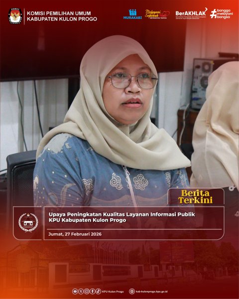 Rabu, 27 Februari 2026 KPU Kabupaten Kulon Progo melaksanakan Rapat Monitoring dan Evaluasi Pelayanan PPID sebagai upaya peningkatan kualitas layanan informasi publik KPU Kabupaten Kulon Progo. Dalam arahan singkatnya, Ketua KPU Kabupaten Kulon Progo menyampaikan bahwa pelayanan PPID selama bulan Februari 2026 secara umum telah berjalan dengan baik. Namun demikian, kegiatan evaluasi ini dinilai penting sebagai bahan perbaikan ke depan agar PPID mampu memberikan layanan informasi publik yang semakin prima.