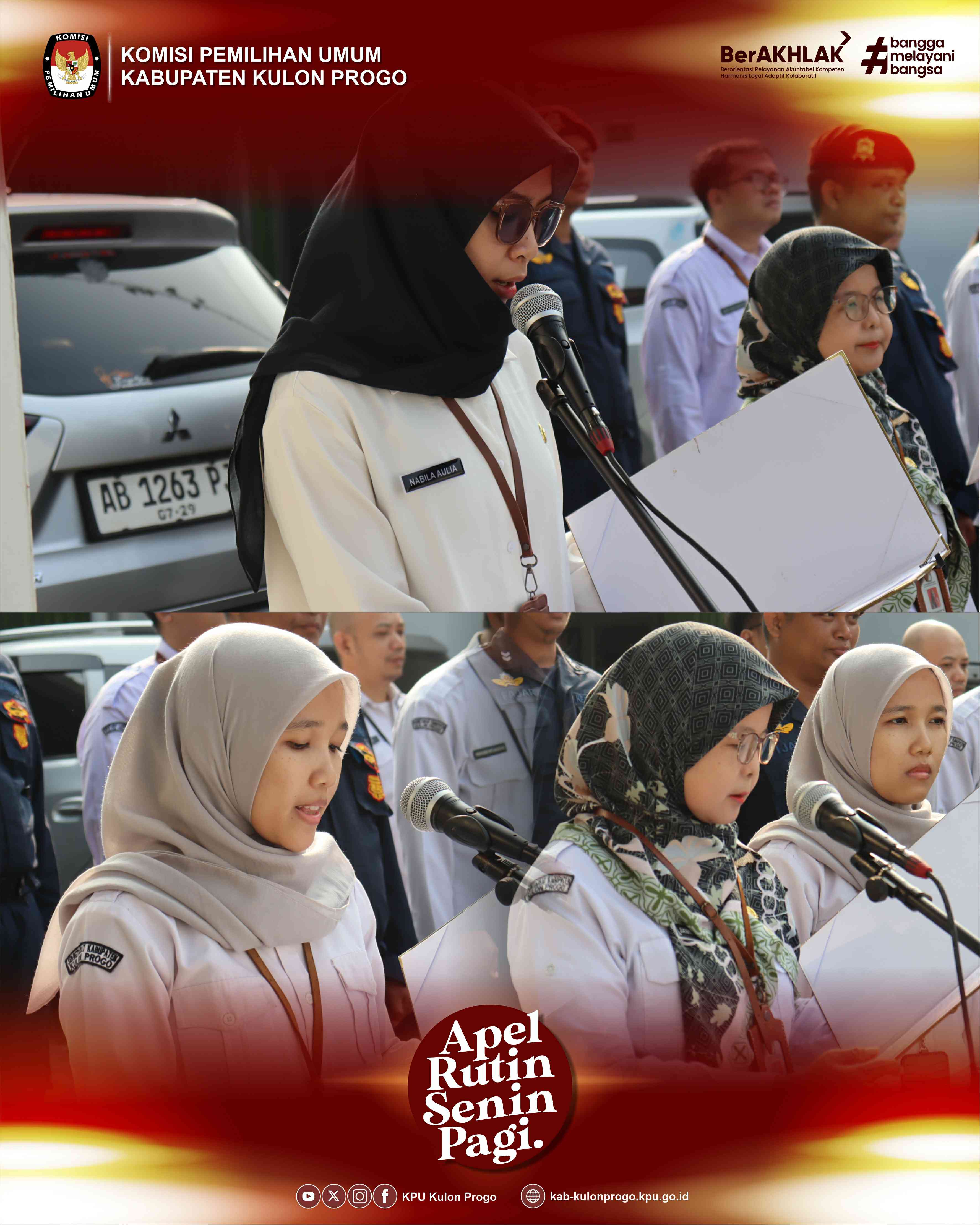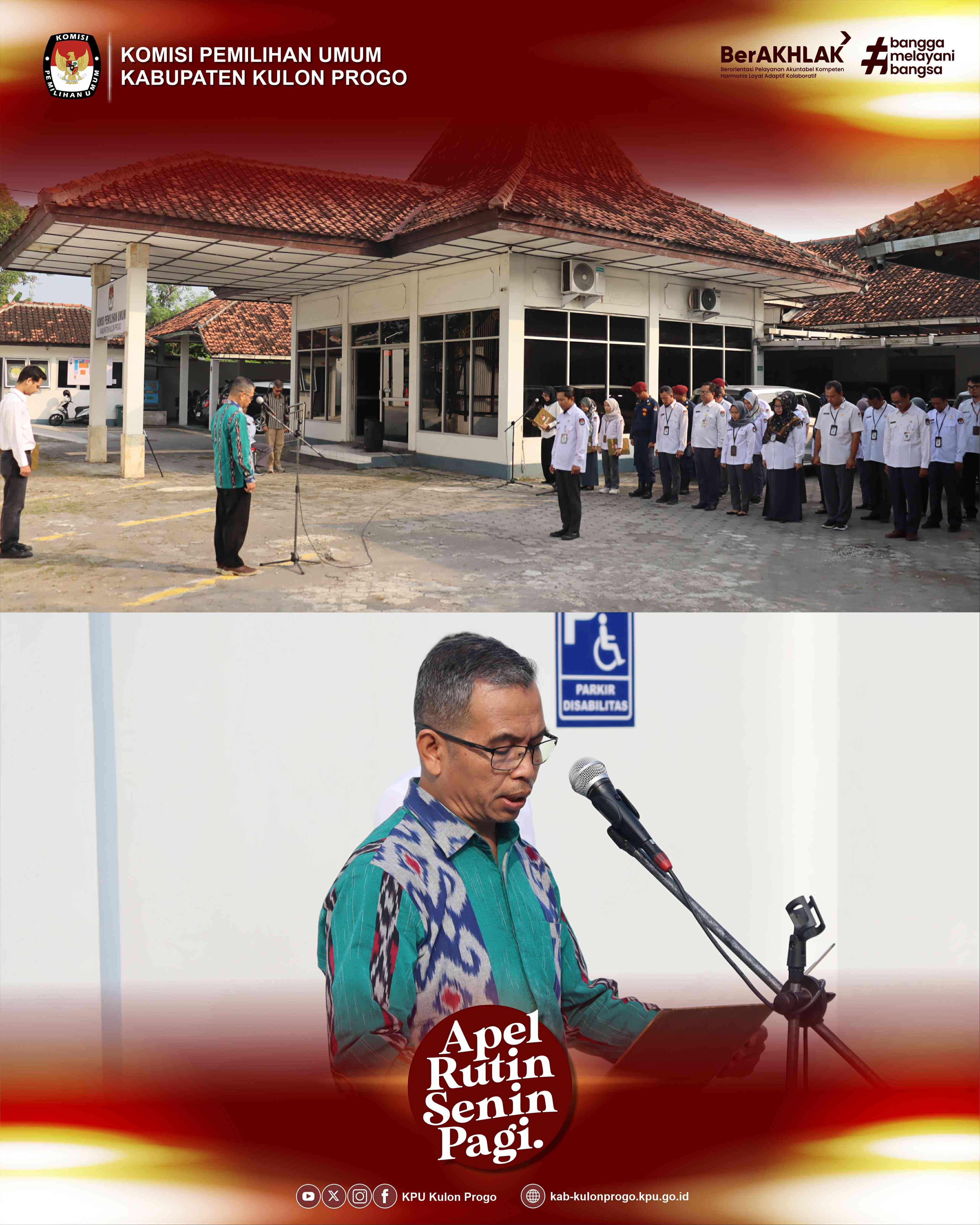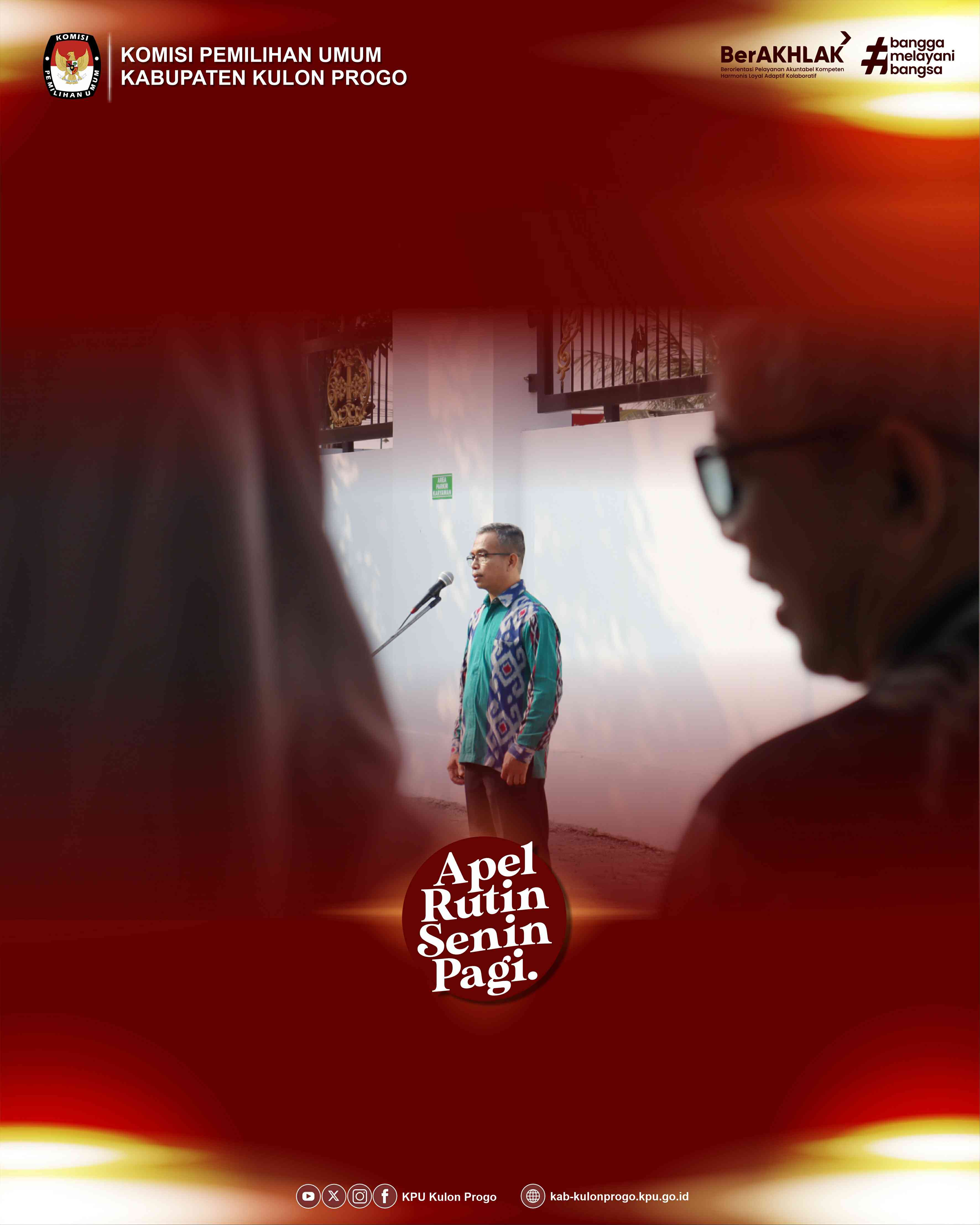 Hal tersebut adalah poin-poin penting yang disampaikan oleh Ketua Divisi Hukum dan Pengawasan KPU Kabupaten Kulon Progo dalam agenda apel Senin pagi kali ini.