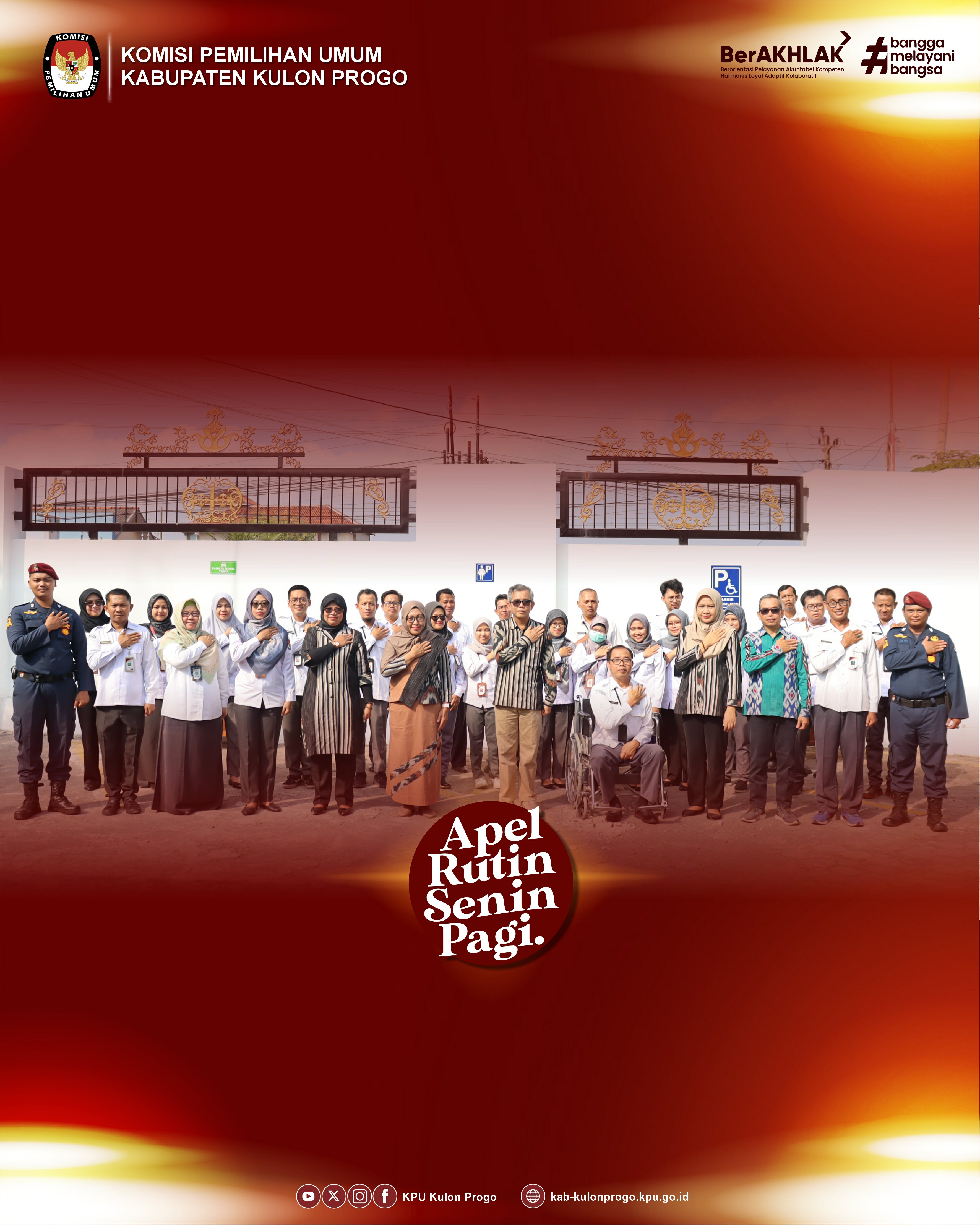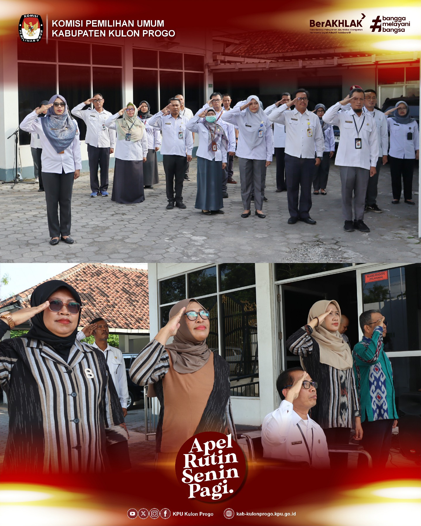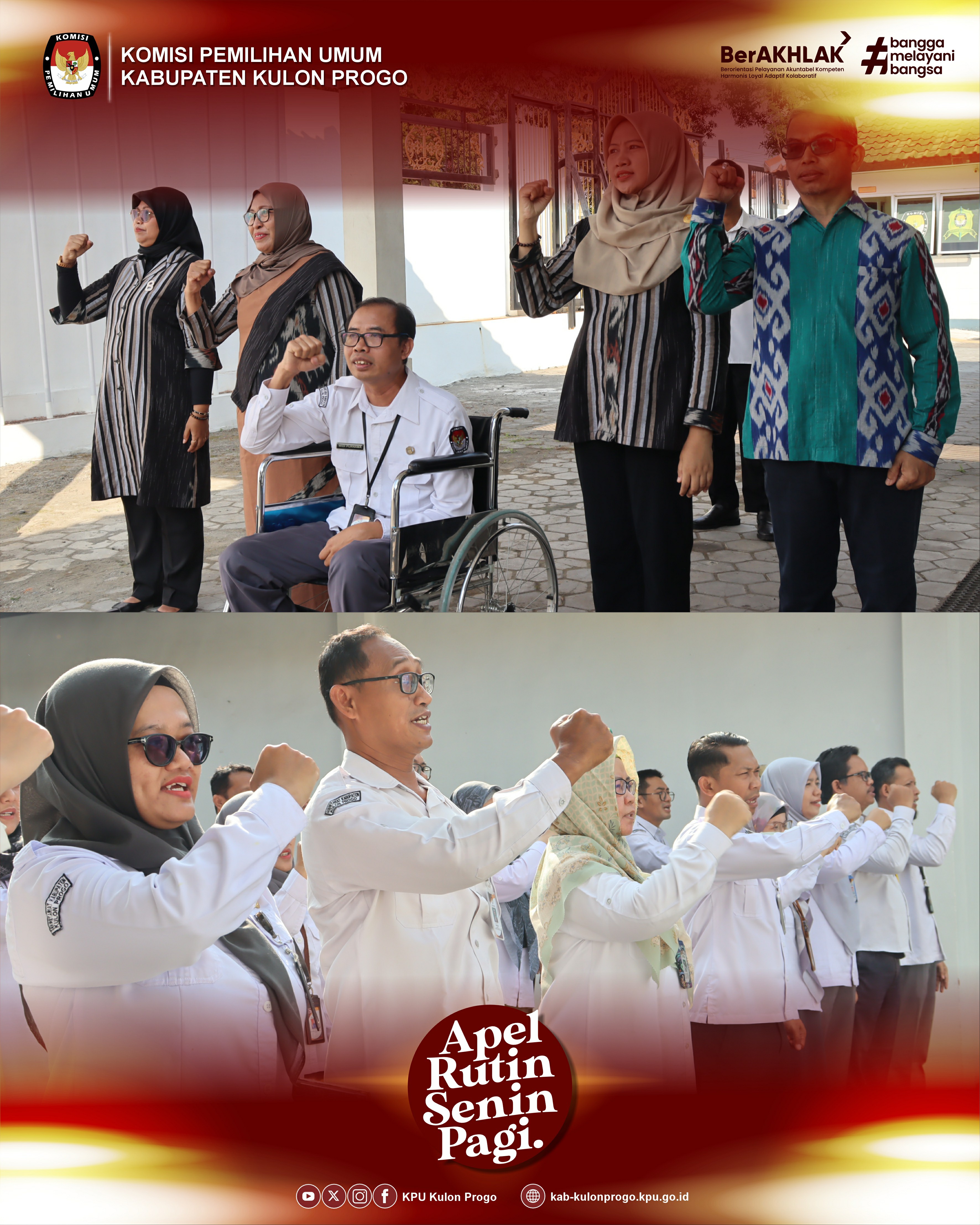 Senin (7/7/2025) KPU Kabupaten Kulon Progo kembali melaksanakan kegiatan Apel pagi yang diikuti oleh ketua, anggota, sekretaris dan seluruh jajaran sekretariat KPU Kabupaten Kulon Progo.
