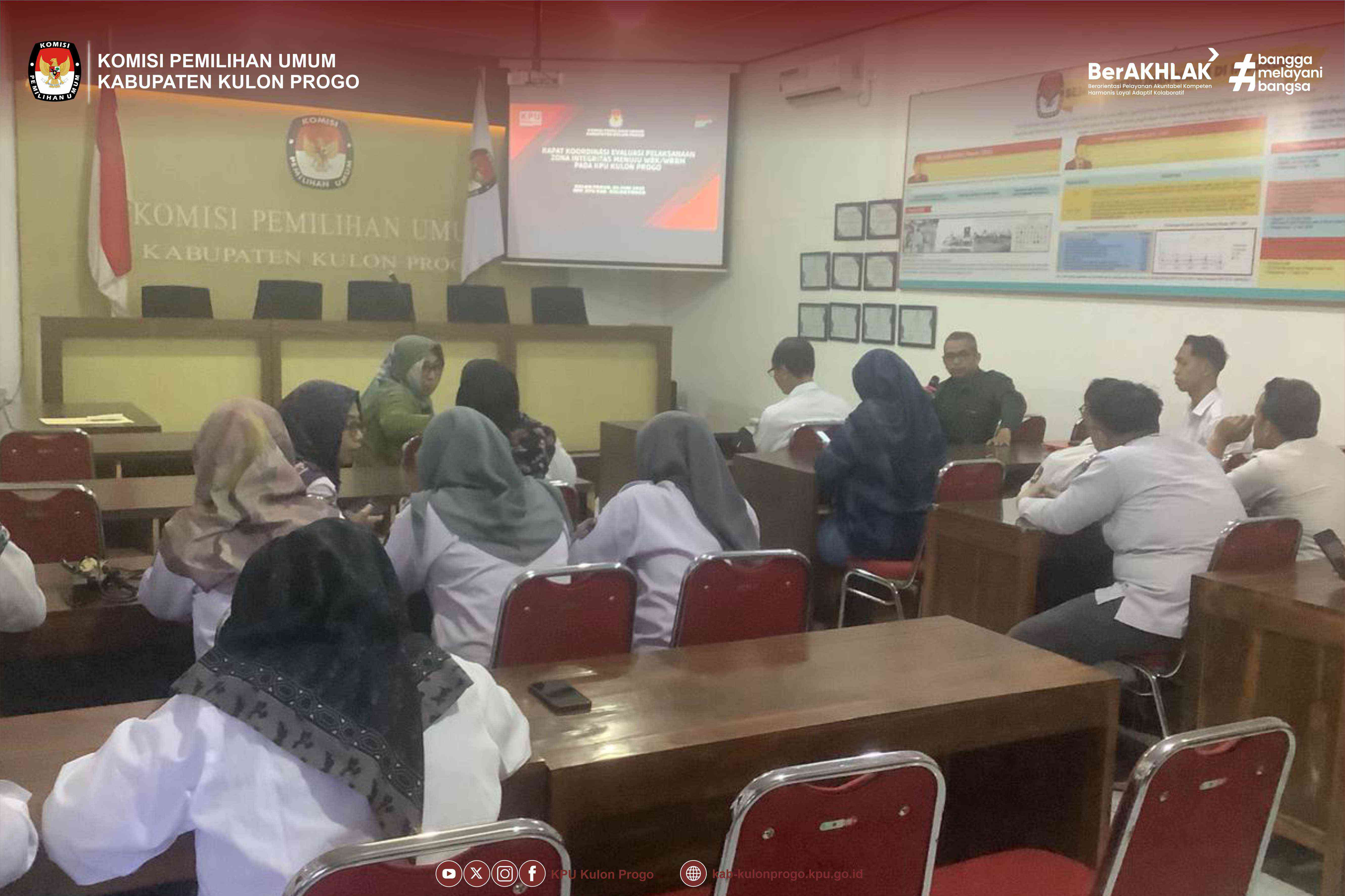 Wates, 5 Juni 2025. Dalam rangka untuk menuju WBK/WBBM KPU Kabupaten Kulon Progo melaksanakan evaluasi pelaksanaan Zona Integritas.