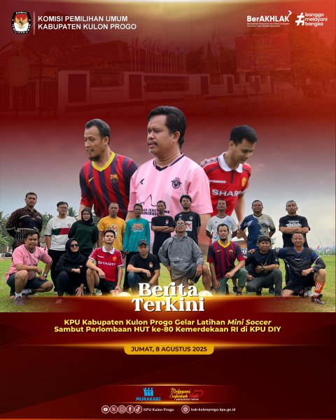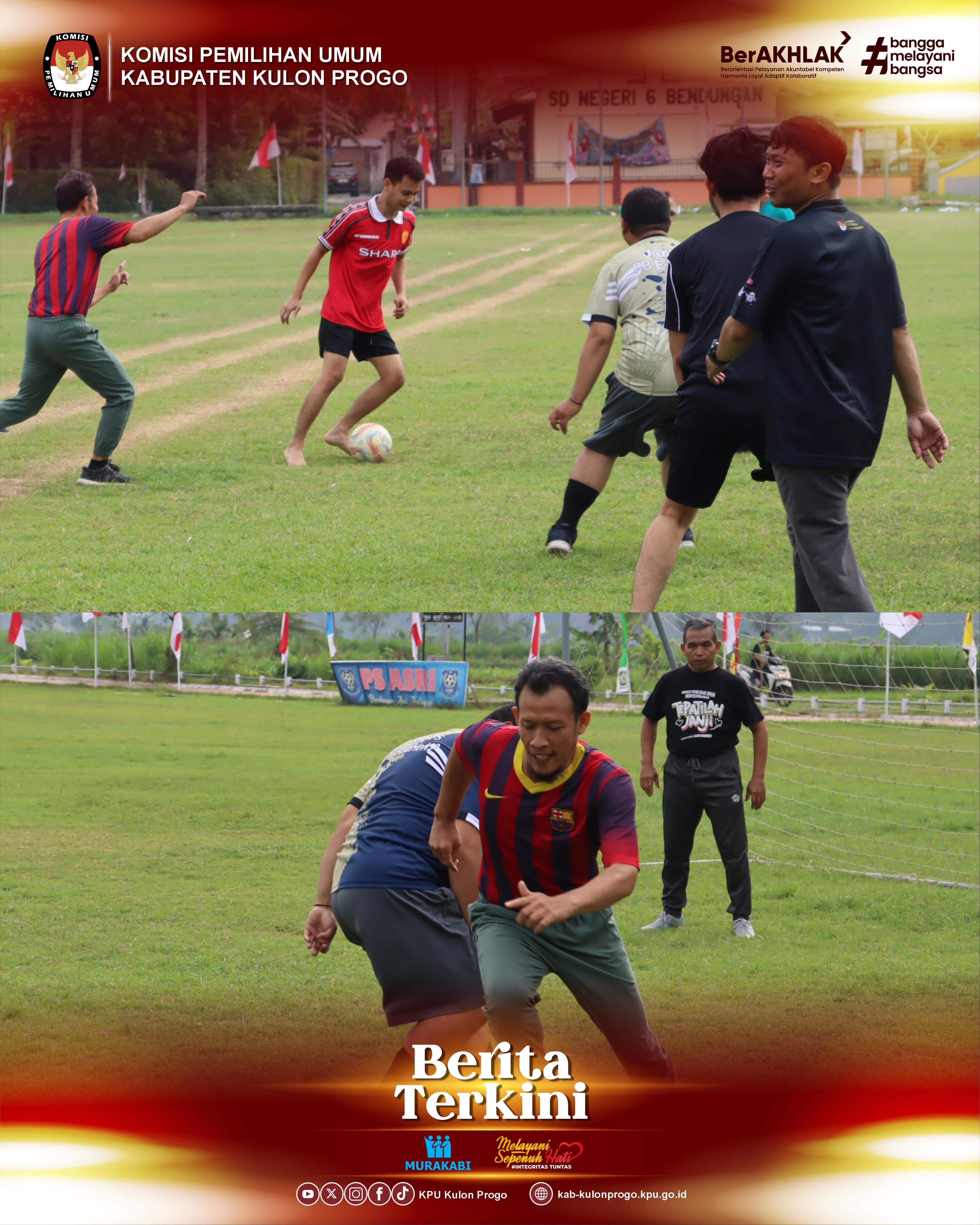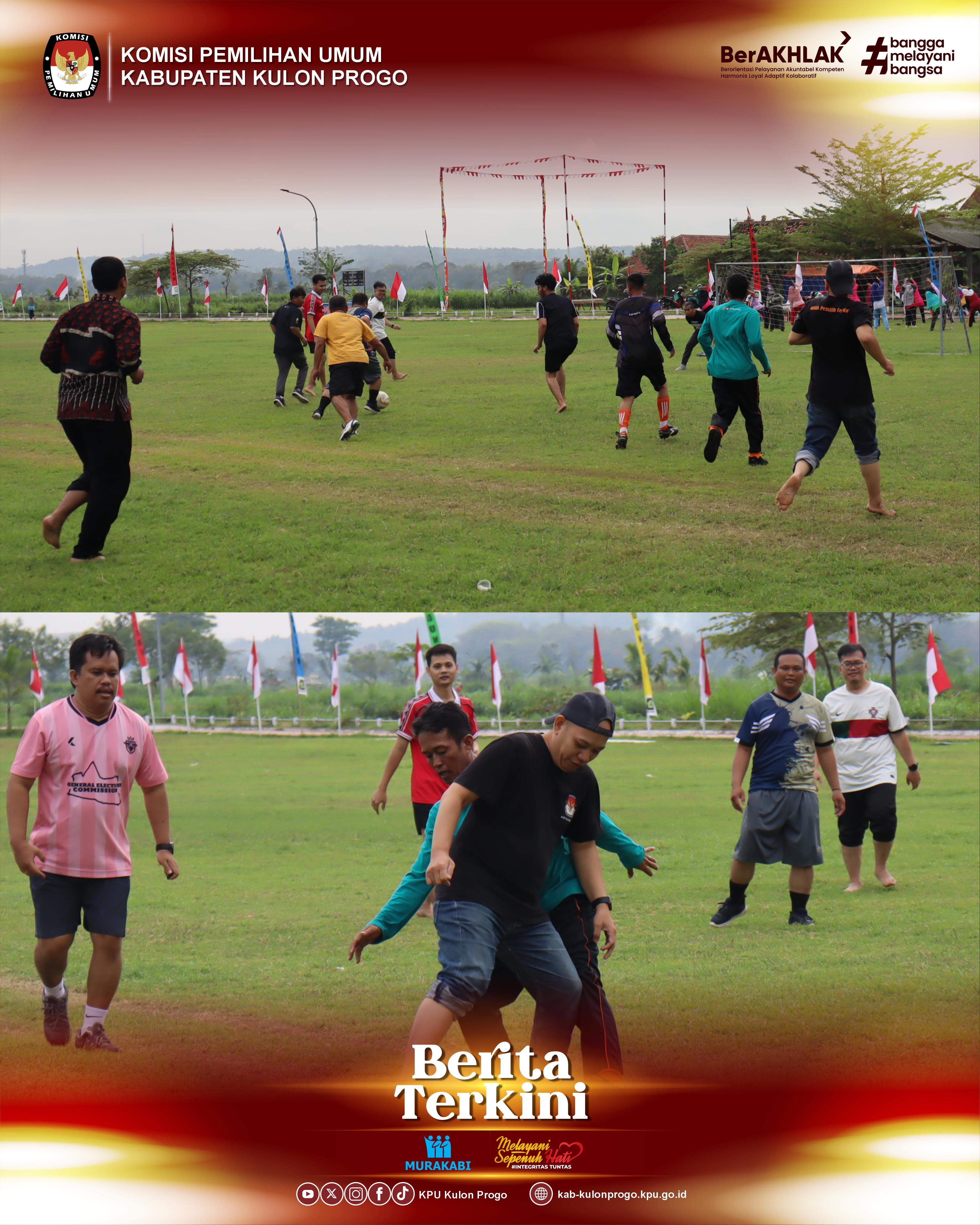Kulon Progo – Menyambut Hari Ulang Tahun (HUT) ke-80 Kemerdekaan Republik Indonesia, KPU Kabupaten Kulon Progo menggelar latihan mini soccer di Lapangan Bendungan, pada Jumat, 8 Agustus 2025. Kegiatan ini menjadi salah satu rangkaian Perlombaan menyambut Hari Ulang Tahun (HUT) ke-80 Kemerdekaan Republik Indonesia yang diselenggarakan KPU DIY dengan tujuan menjaga kebugaran sekaligus mempererat kekompakan antar pegawai.