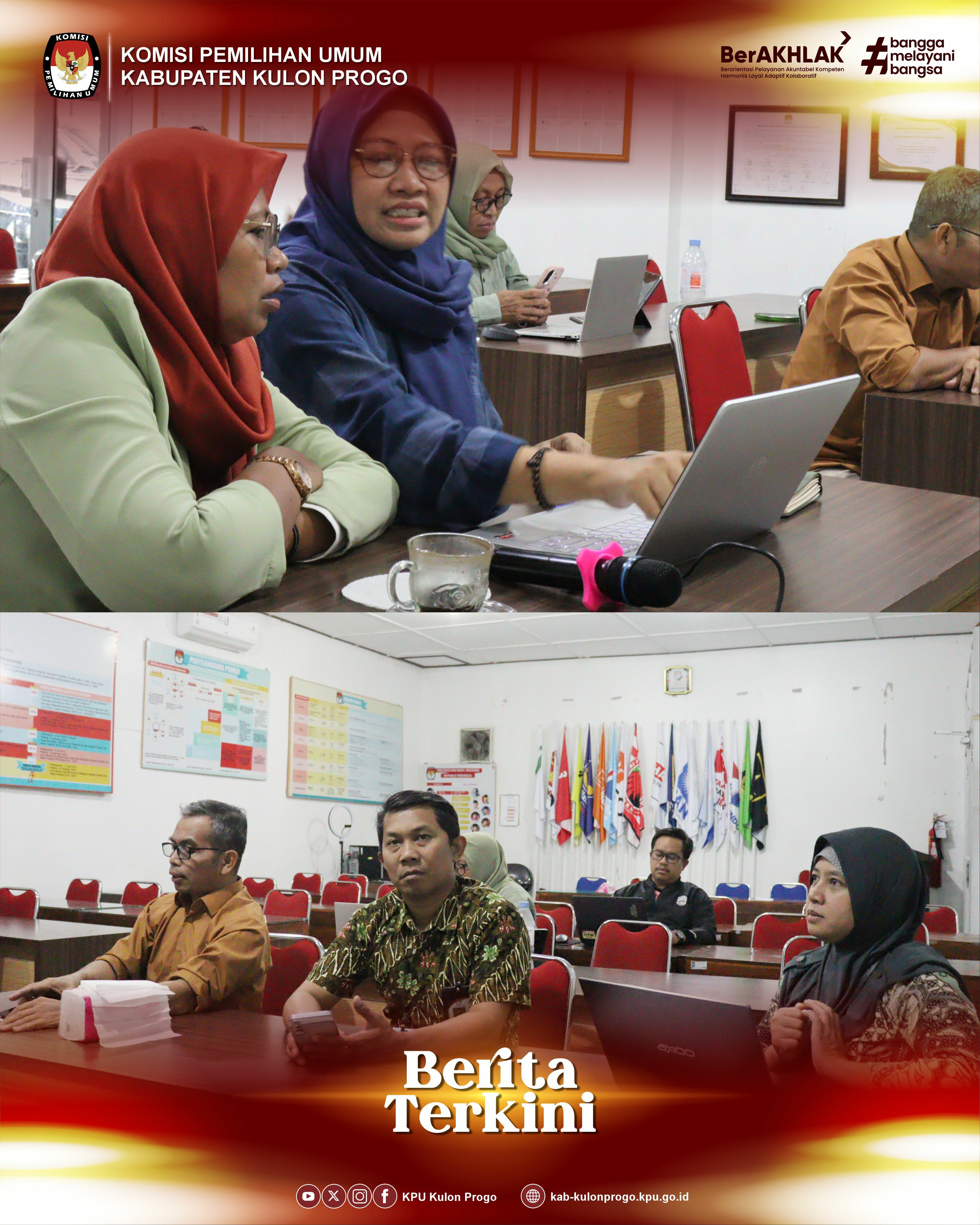 Wates, 4 Juli 2025 — Komisi Pemilihan Umum (KPU) Kabupaten Kulon Progo mengikuti Rapat Koordinasi dan Pleno Terbuka Rekapitulasi Daftar Pemilih Berkelanjutan (PDPB) Triwulan II Tahun 2025 yang diselenggarakan oleh KPU Daerah Istimewa Yogyakarta (DIY) secara daring melalui Zoom Meeting. Rapat koordinasi ini diikuti oleh seluruh Ketua Divisi Perencanaan, Data, dan Informasi, Kepala Sub Bagian yang membidangi Perencanaan, Data, dan Informasi, serta staf pelaksana atau operator Sidalih di lingkungan KPU se-DIY, serta perwakilan dari stakeholder terkait di tingkat Provinsi DIY.