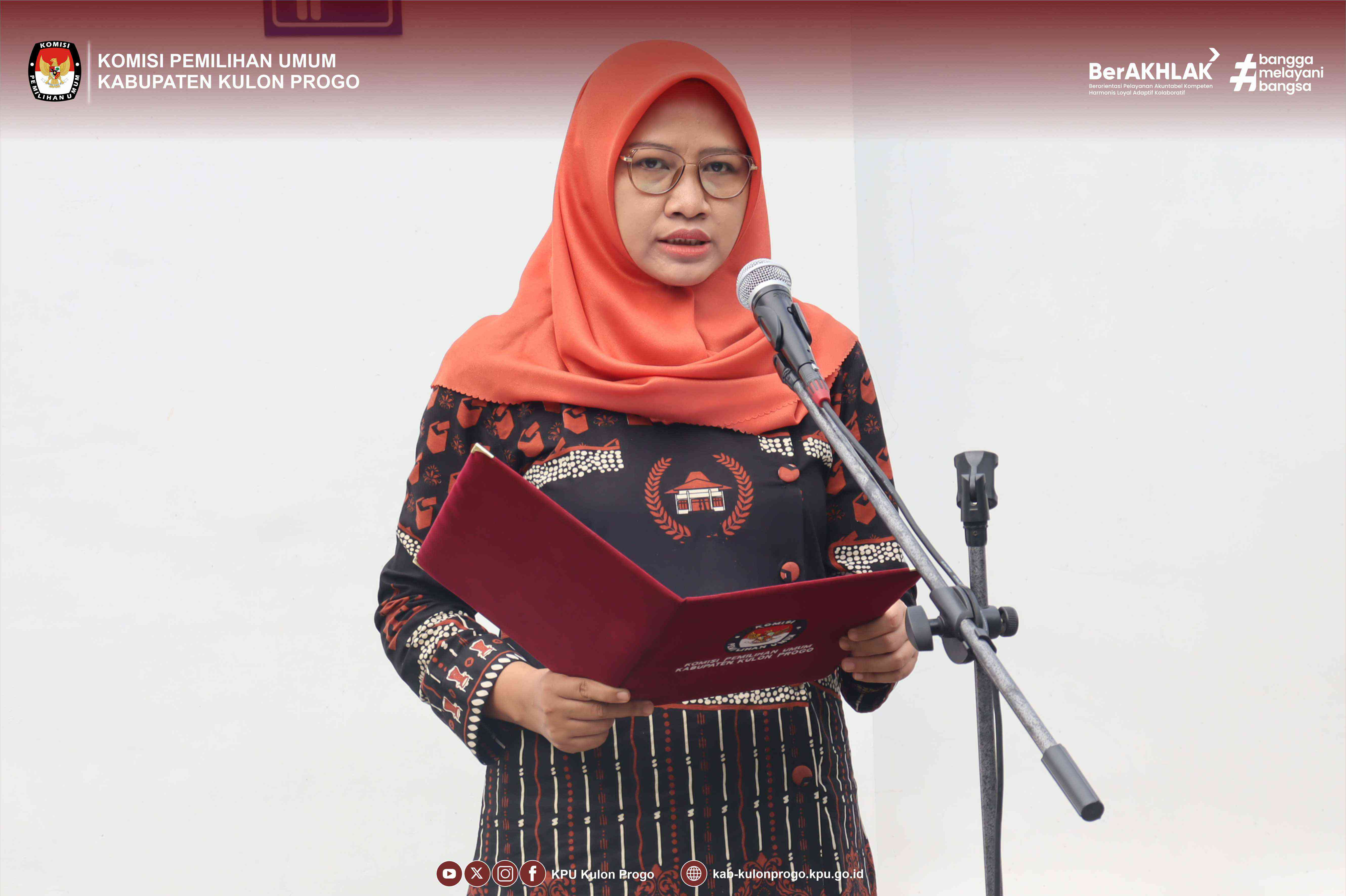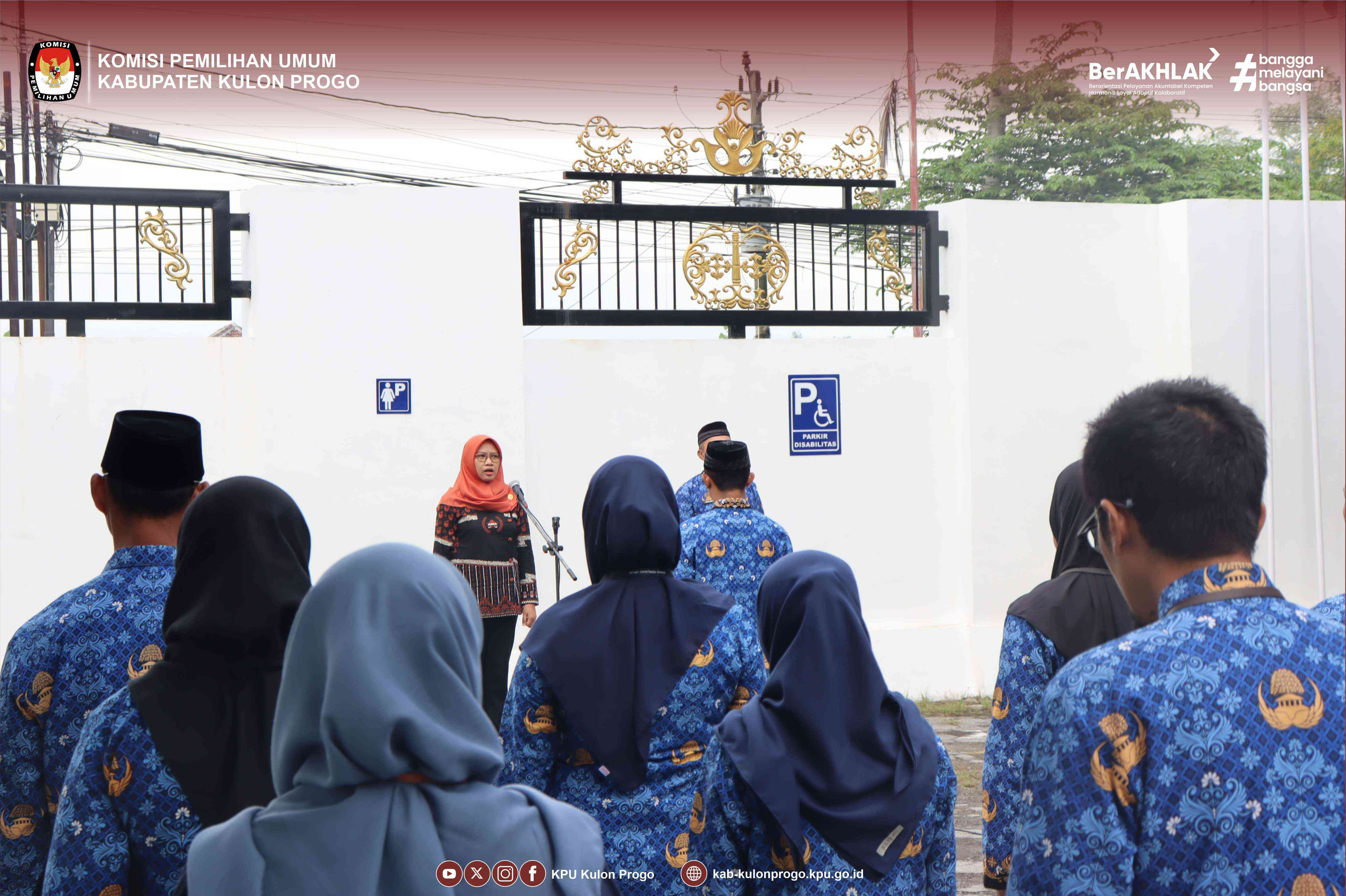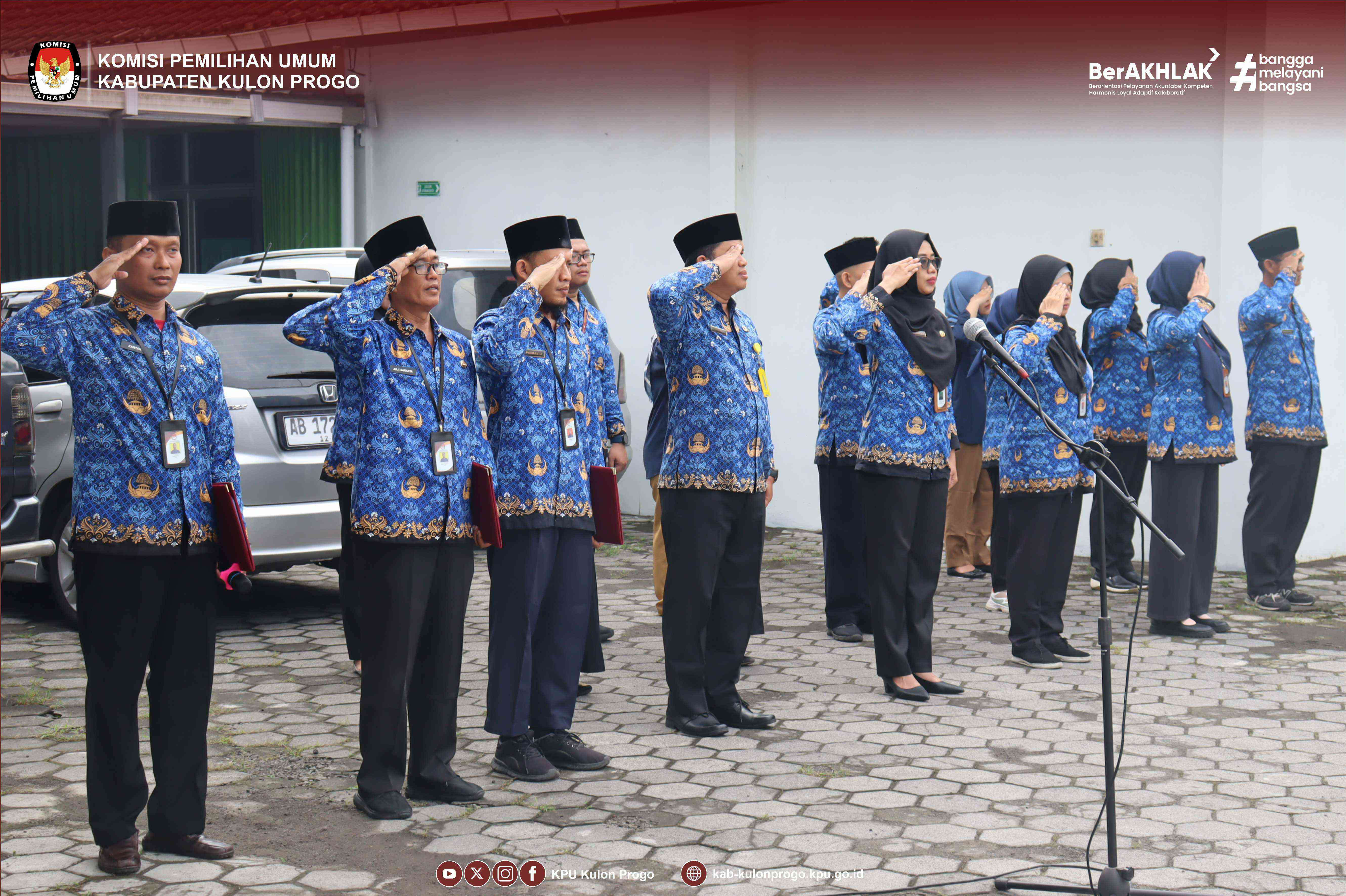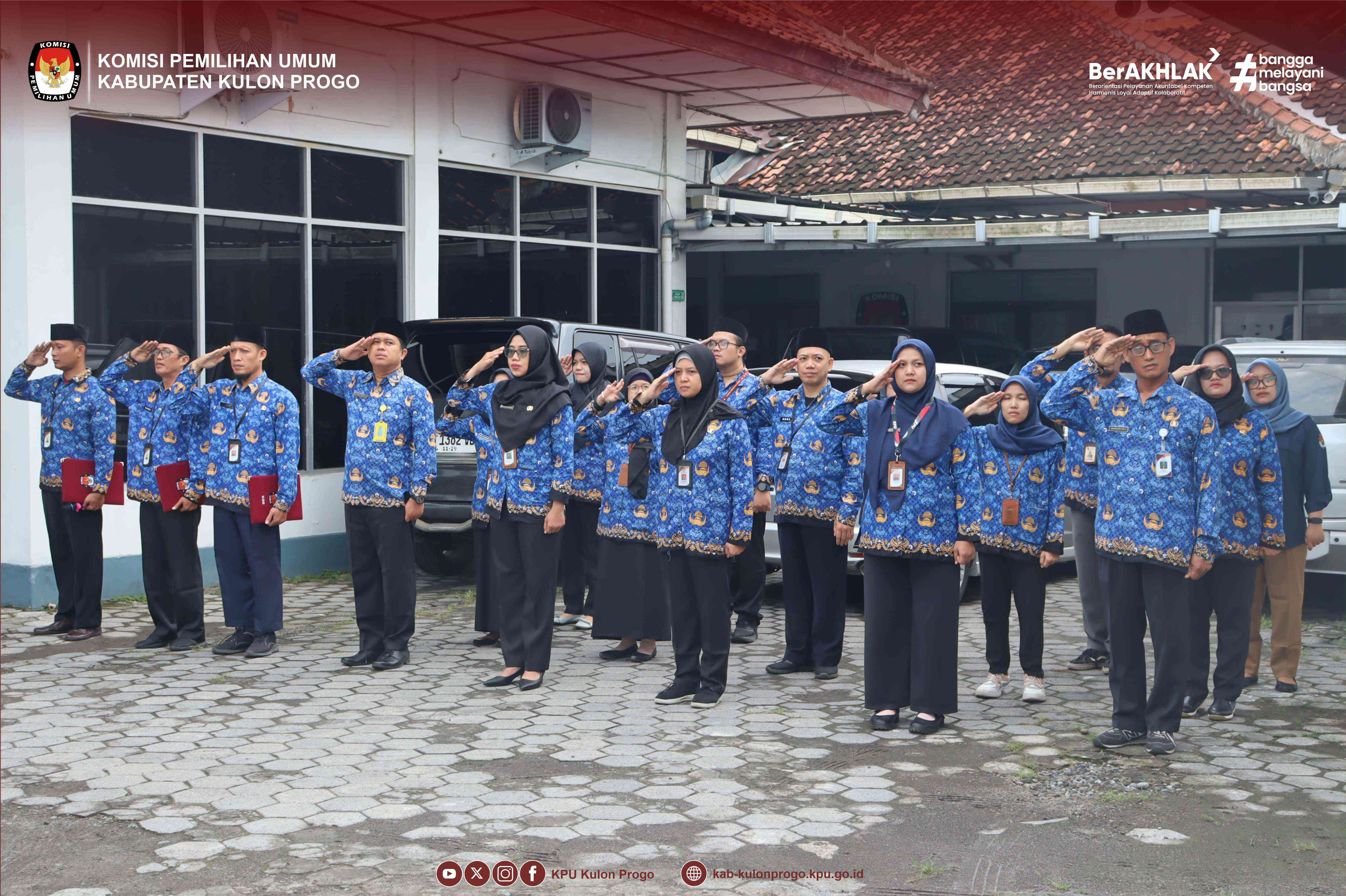 Upacara diikuti oleh Komisioner, Pejabat Struktural, Staf/Pelaksana PPPK dan PPNPN di lingkungan KPU Kabupaten Kulon Progo. Pembina apel pada kesempatan kali ini adalah Ketua Divisi Perencanaan, Data dan Informasi, Ria Harlinawati.