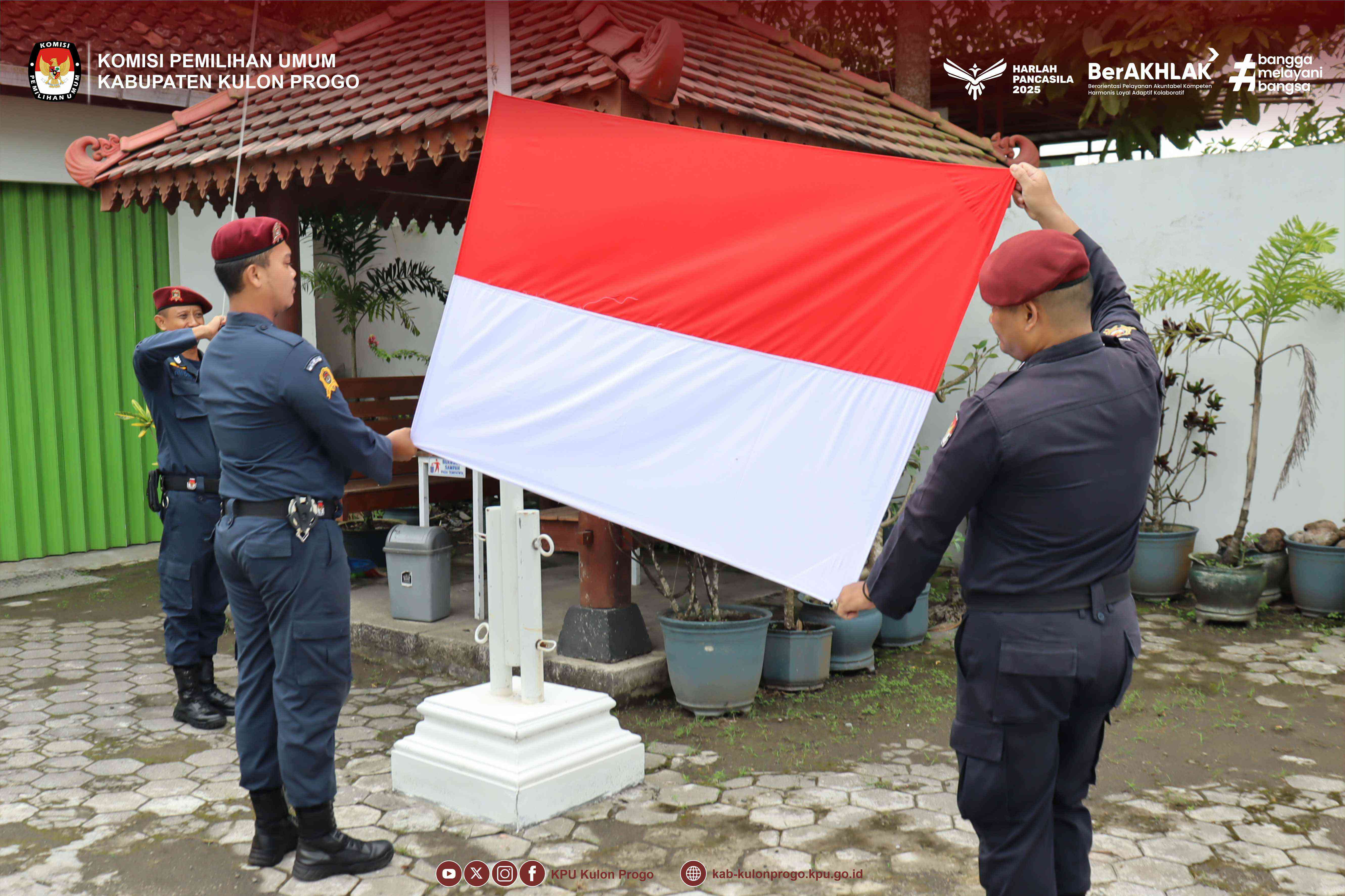 Senin, 2 Juni 2025 - Bertempat di halaman kantor KPU Kabupaten Kulon Progo, KPU Kabupaten Kulon Progo laksanakan Upacara Hari Lahir Pancasila Tahun 2025 dengan tema "Memperkokoh Ideologi Pancasila, Menuju Indonesia Raya"