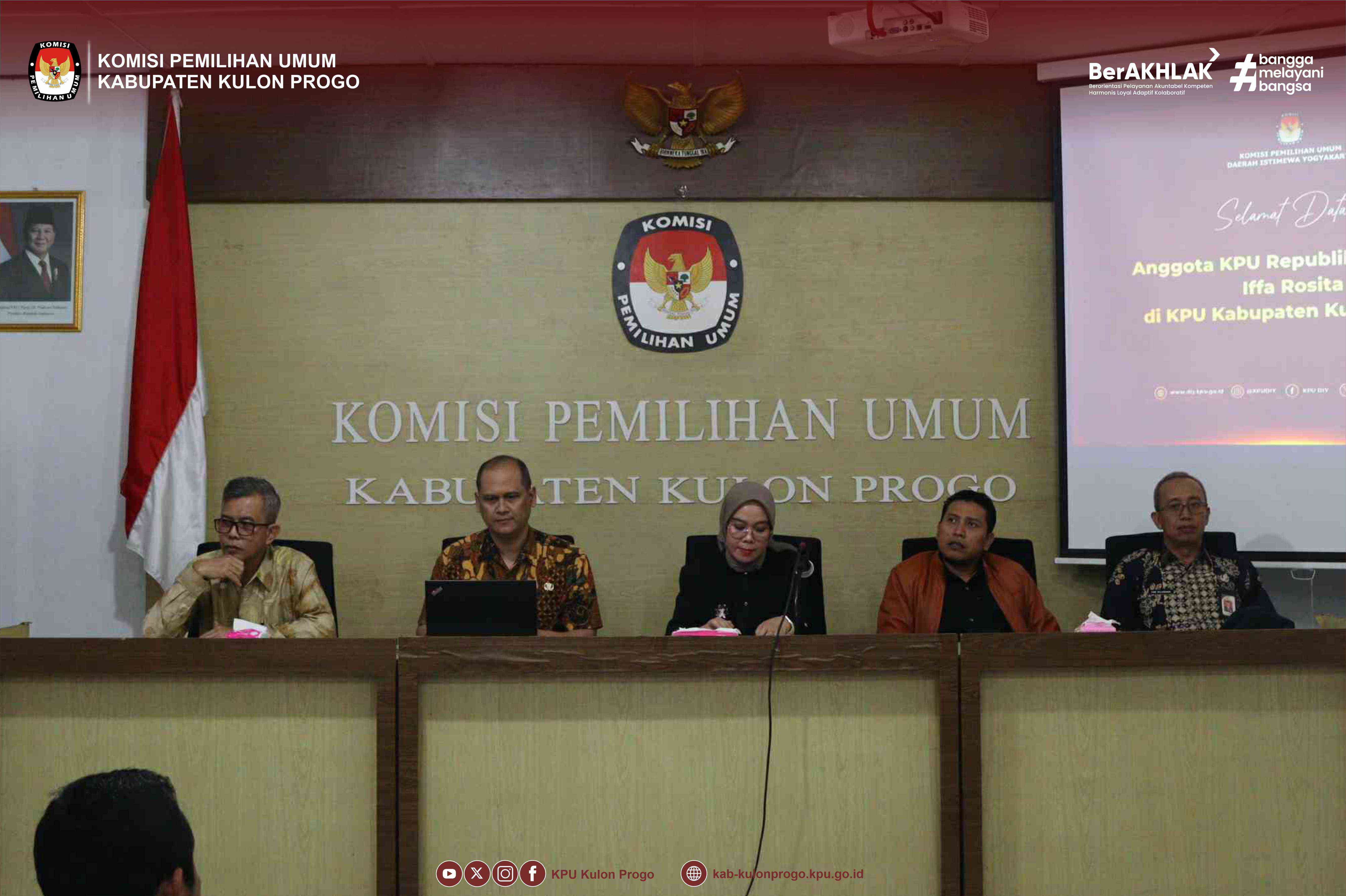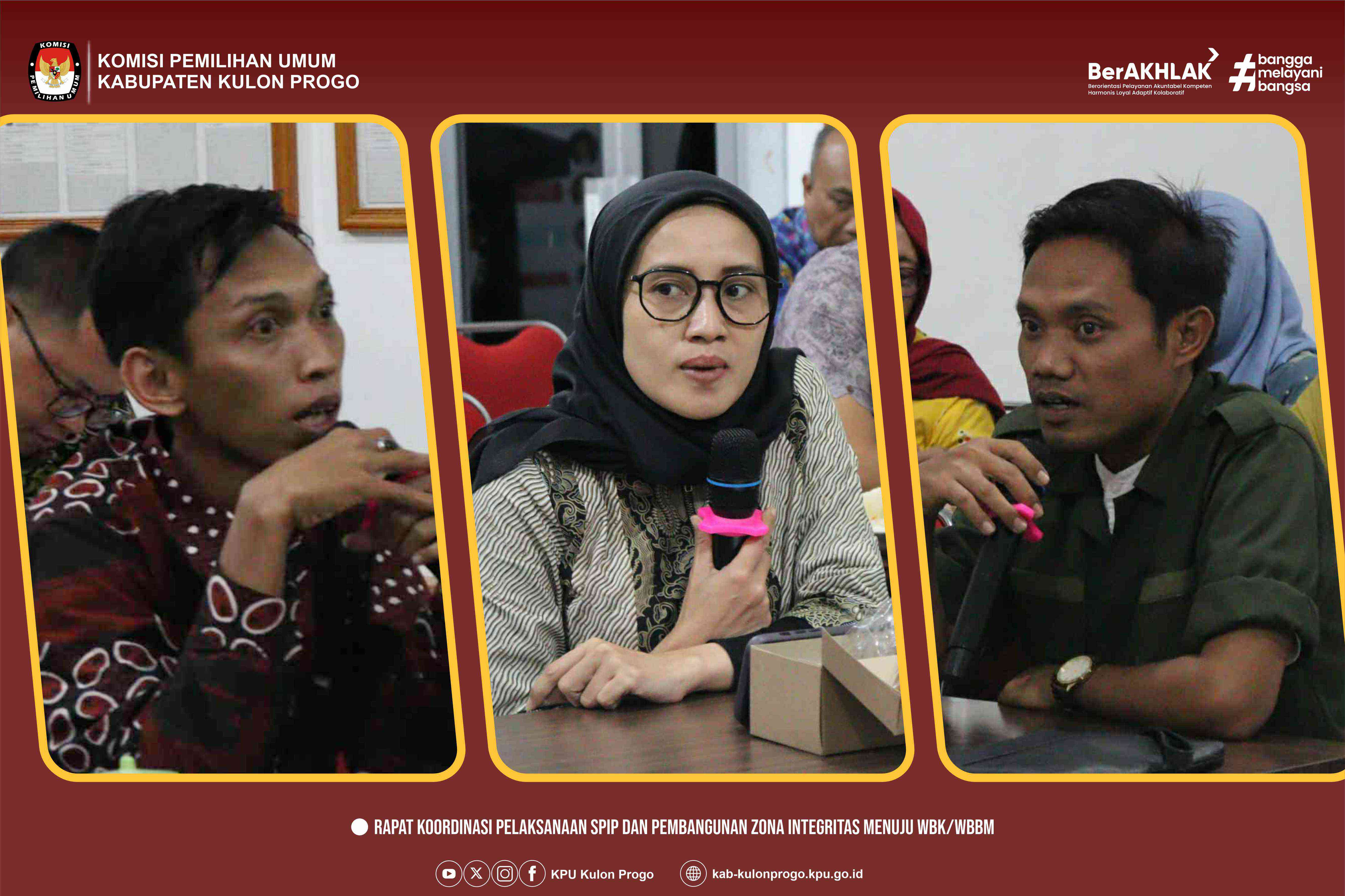 Jumat, 16 Mei 2025, KPU Kabupaten Kulon Progo dipercaya menjadi tuan rumah dalam acara Rapat Koordinasi Pelaksanaan SPIP dan Zona Integritas di Lingkungan KPU se-DIY. Acara tersebut digelar di Ruang RPP KPU Kabupaten Kulon Progo pukul 16.00. Rakor dihadiri oleh Ketua dan Anggota serta pejabat struktural KPU DIY, Ketua Divisi Hukum dan Pengawasan KPU Kab/Kota se-DIY, serta Kepala Sub Bagian Hukum KPU Kab/Kota se-DIY. Menjadi narasumber dalam acara tersebut adalah Ketua Divisi Hukum dan Pengawasan KPU RI, Iffa Rosita serta Auditor Ahli Madya Inspektorat KPU RI, Irwan.
