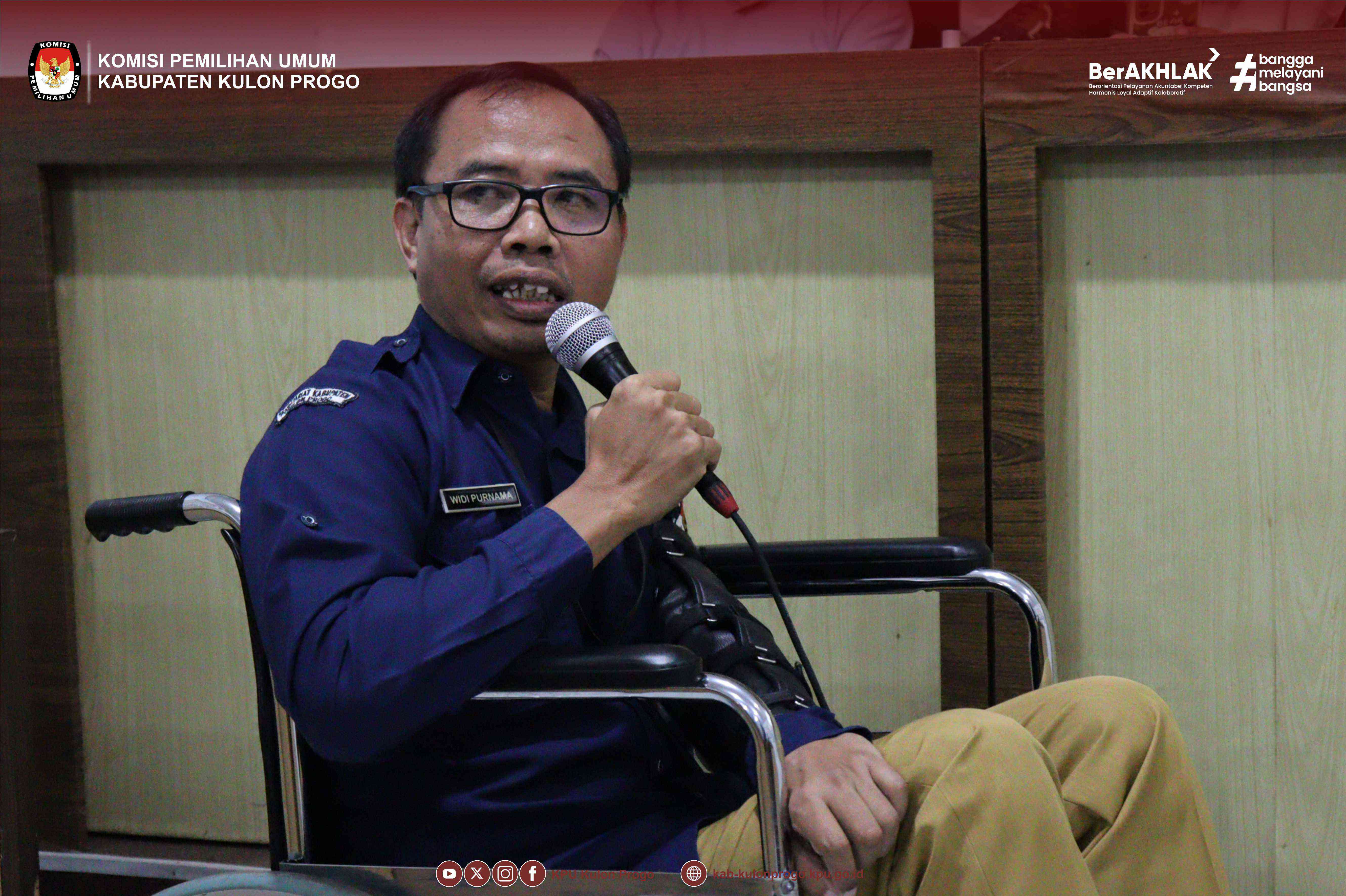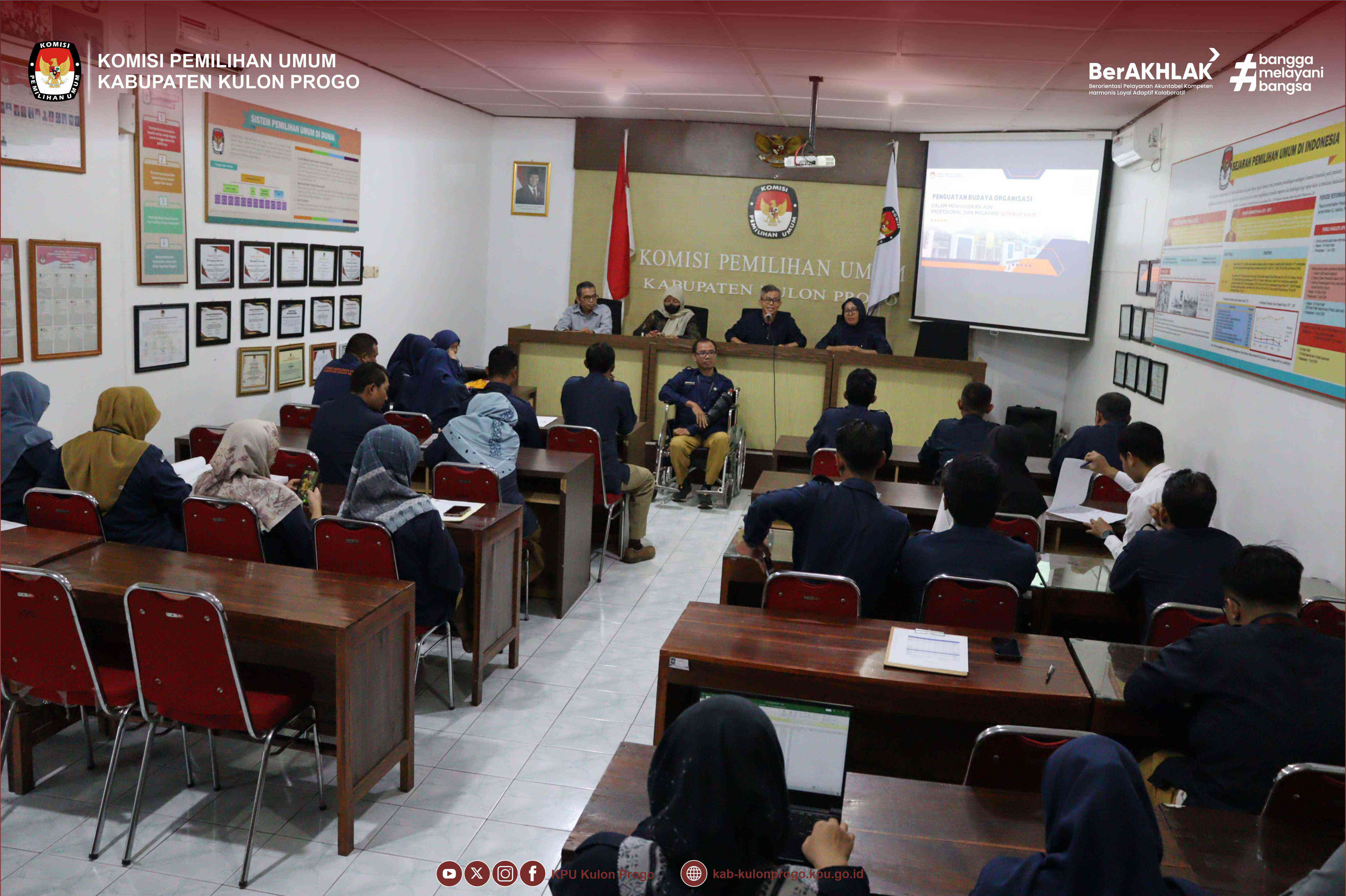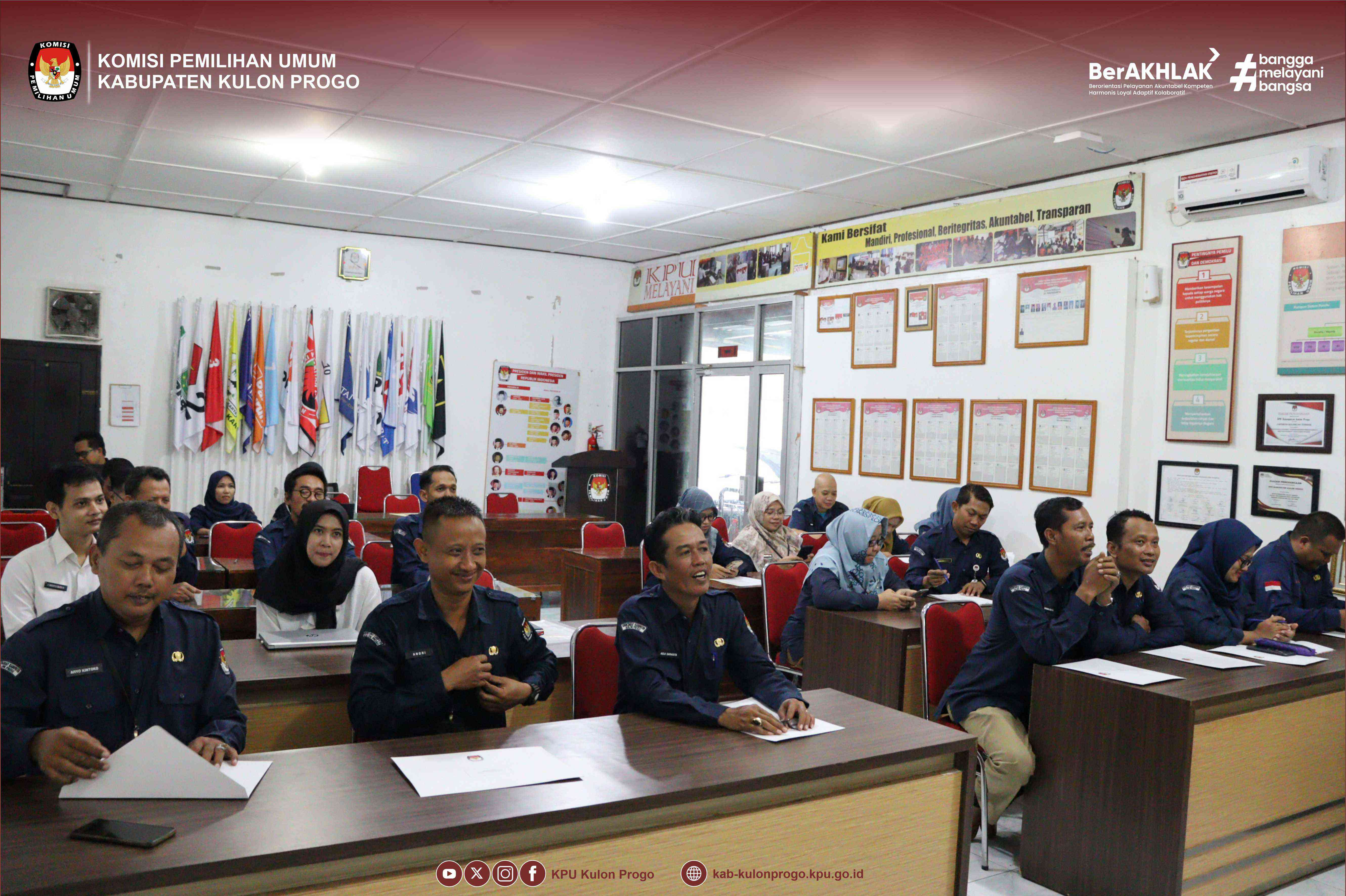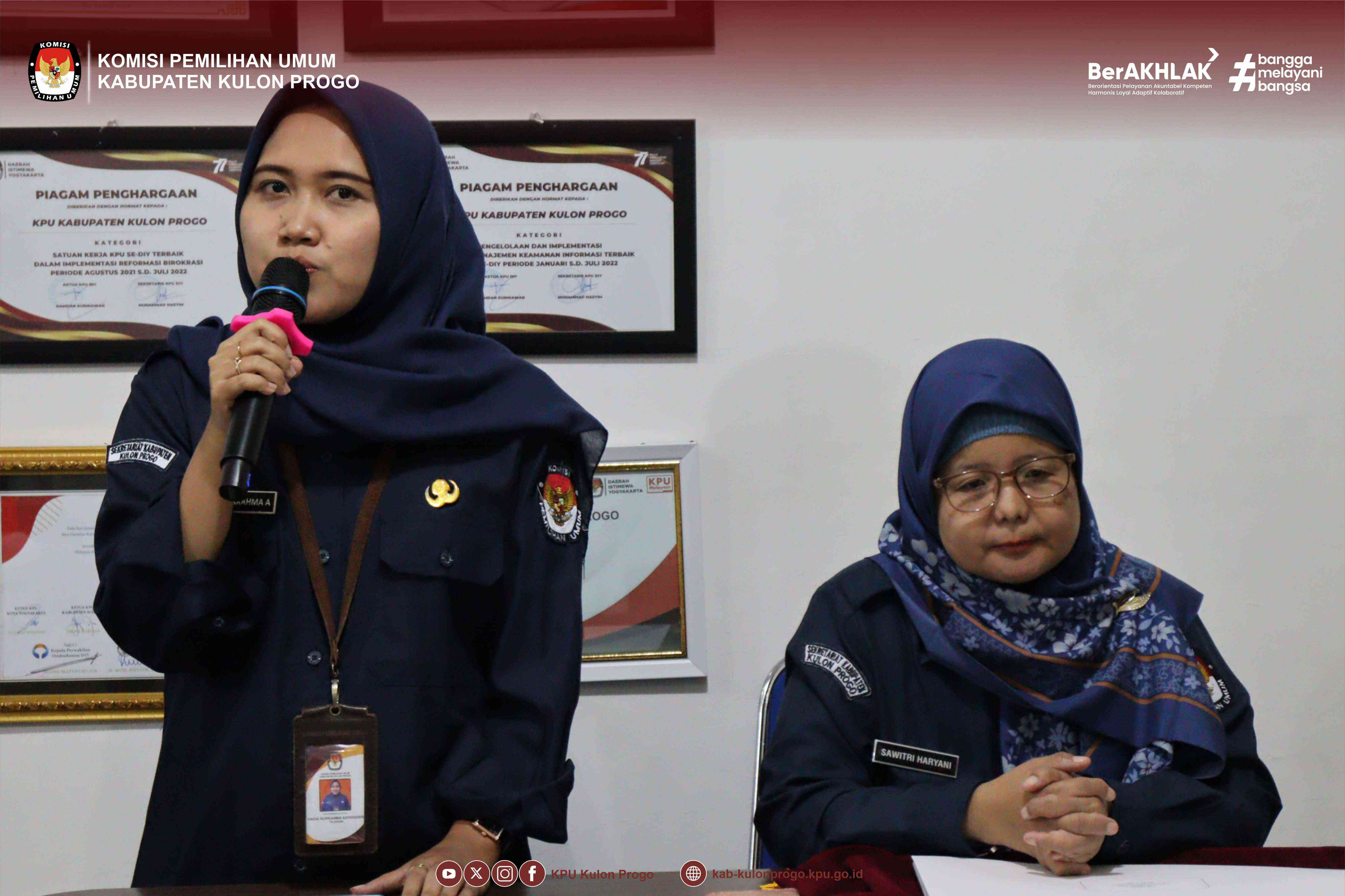 Widi Purnama selaku Sekretaris Komisi Pemilihan Umum Kabupaten Kulon Progo memberikan pembinaan atau pengarahan terkait penguatan Sumber Daya Manusia yang berada di Lingkungan Sekretariat Komisi Pemilihan Umum Kabupaten Kulon Progo.