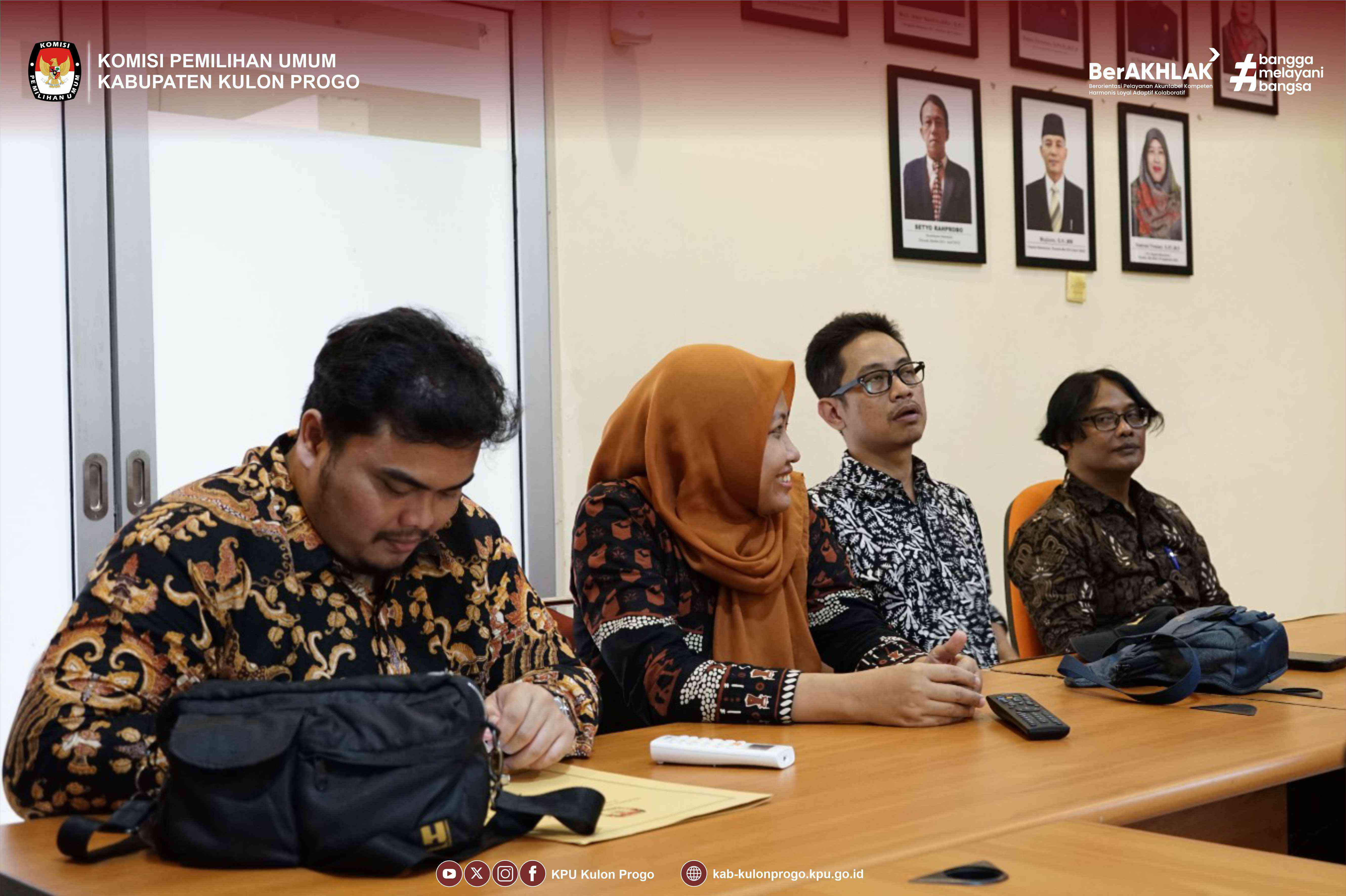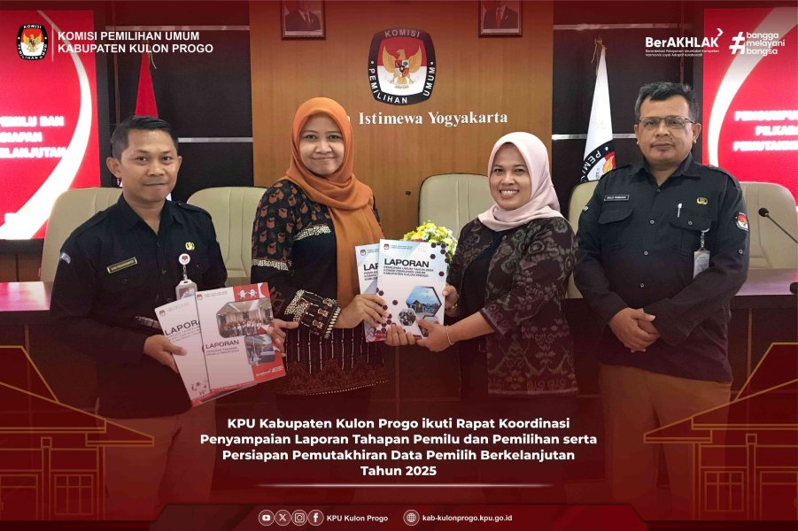 Jogja, Rabu, 7 Mei 2025 - KPU Kabupaten Kulon Progo mengikuti kegiatan Rapat Koordinasi Pengumpulan Laporan Tahapan Pemilu dan Pemilihan Tahun 2024 serta persiapan Pemutakhiran Data Pemilih Berkelanjutan (PDPB) Semester I Tahun 2025. Rapat dilaksanakan di ruang rapat lantai II Kantor KPU Daerah lstimewa Yogyakarta (DIY) yang diikuti oleh Wakil Ketua Divisi Perencanaan, Data dan Informasi KPU DIY, Tri Mulatsih, serta seluruh Ketua Divisi Perencanaan, Data dan Informasi, Kepala Sub Bagian yang membidangi Perencanaan, Data dan Informasi serta staf pelaksana atau operator Sidalih di lingkungan KPU se-DIY.