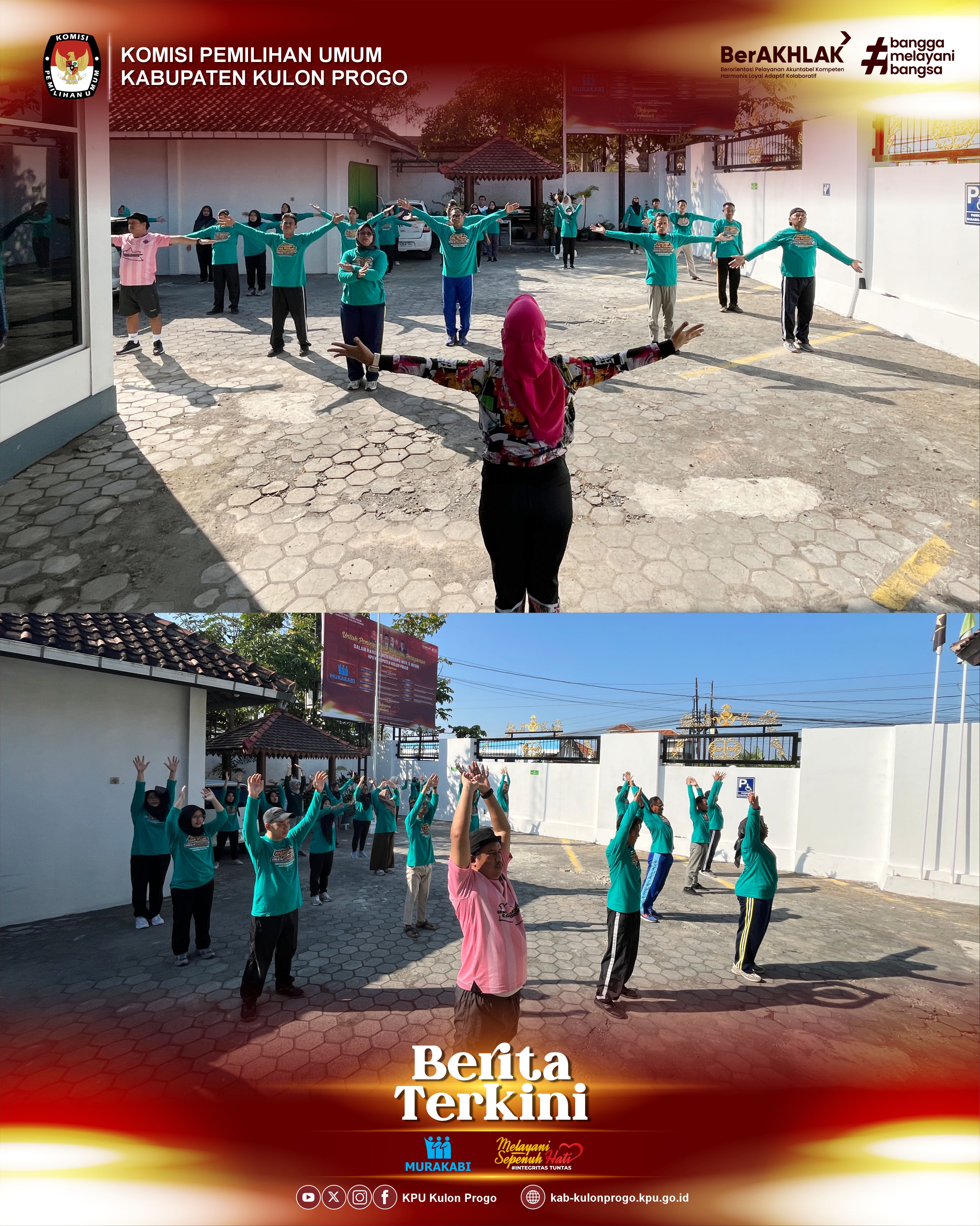 Kulon Progo — Dalam rangka mempererat kebersamaan dan memperkuat kelembagaan, seluruh Jajaran Komisioner dan Seluruh pegawai KPU Kabupaten Kulon Progo mengikuti kegiatan senam pagi bersama yang digelar di halaman kantor KPU Kabupaten Kulon Progo pada Jumat pagi (11/07). Kegiatan ini menjadi salah satu upaya membangun semangat kolektif dan menciptakan lingkungan kerja yang sehat, bugar, dan produktif.