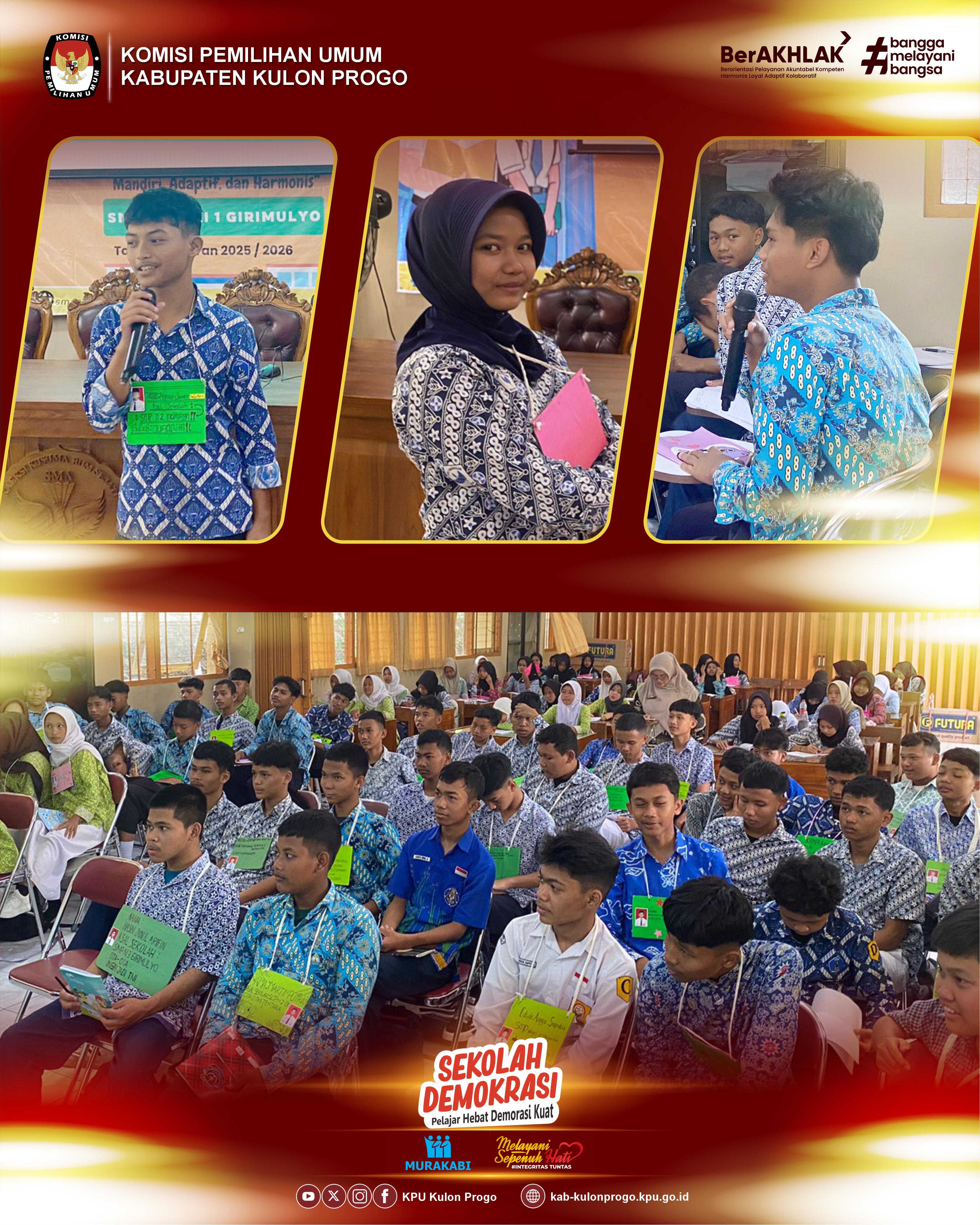 Kamis, 17 Juli 2025, KPU Kabupaten Kulon Progo mensosialisasikan pendidikan pemilih bagi pemilih pemula pada kegiatan MPLS (Masa Pengenalan Lingkungan Sekolah) di SMA 1 Girimulyo. Aris Zurkhasanah, mewakili KPU Kabupaten Kulon Progo, menjadi narasumber pada kegiatan tersebut. Untuk memulai sesi ini, Aris membuka dengan salam semangat pagi yang disambut antusias oleh 108 peserta siswa baru.