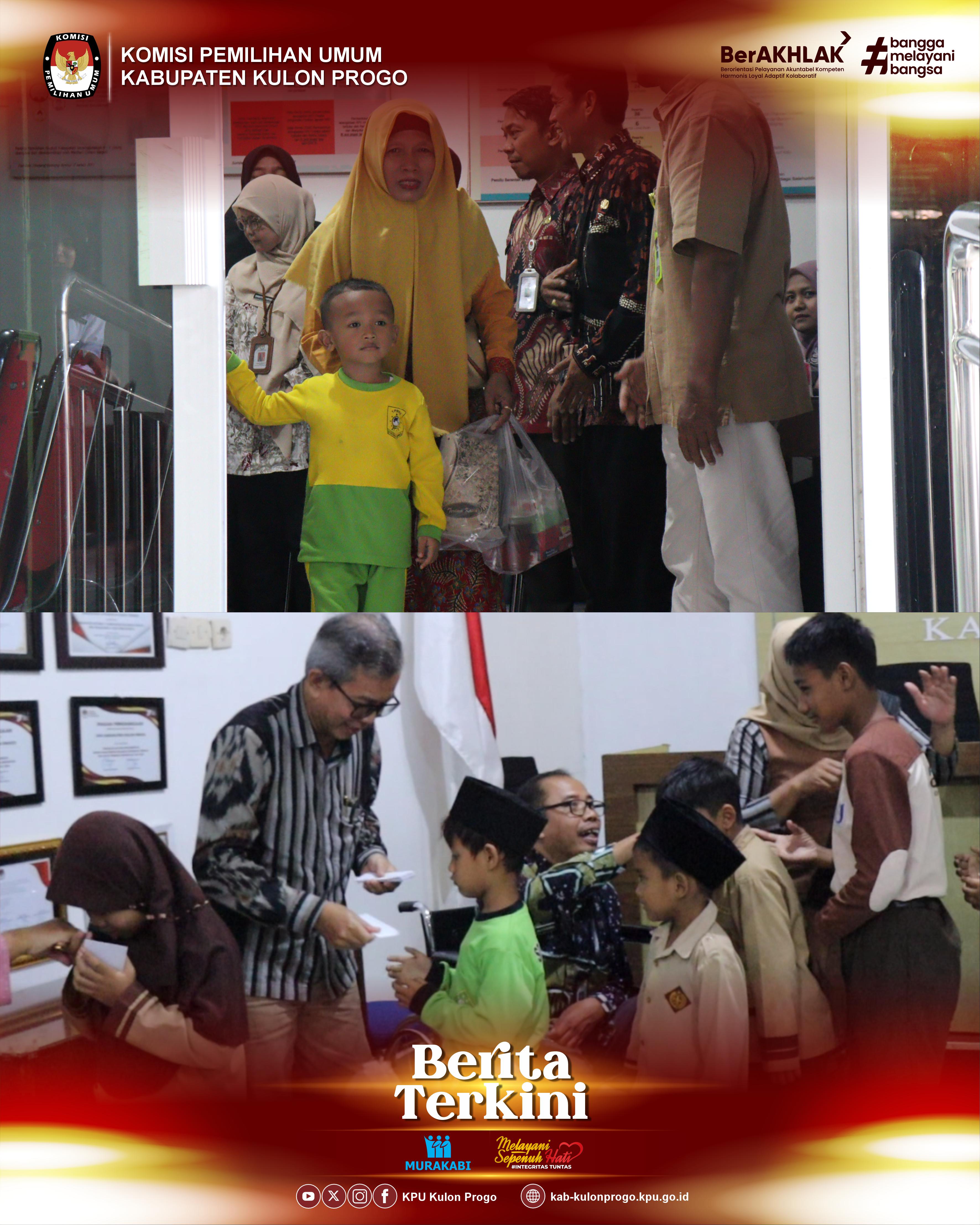 Kulon Progo, Jum’at, 25 Juli 2025 – Komisi Pemilihan Umum (KPU) Kabupaten Kulon Progo mengadakan kegiatan Peduli Anak Yatim Bulan Muharram Penuh Berkah di Lingkungan KPU Kabupaten Kulon Progo dengan memberikan santunan kepada anak yatim yang tinggal di lingkungan sekitar KPU Kabupaten Kulon Progo.