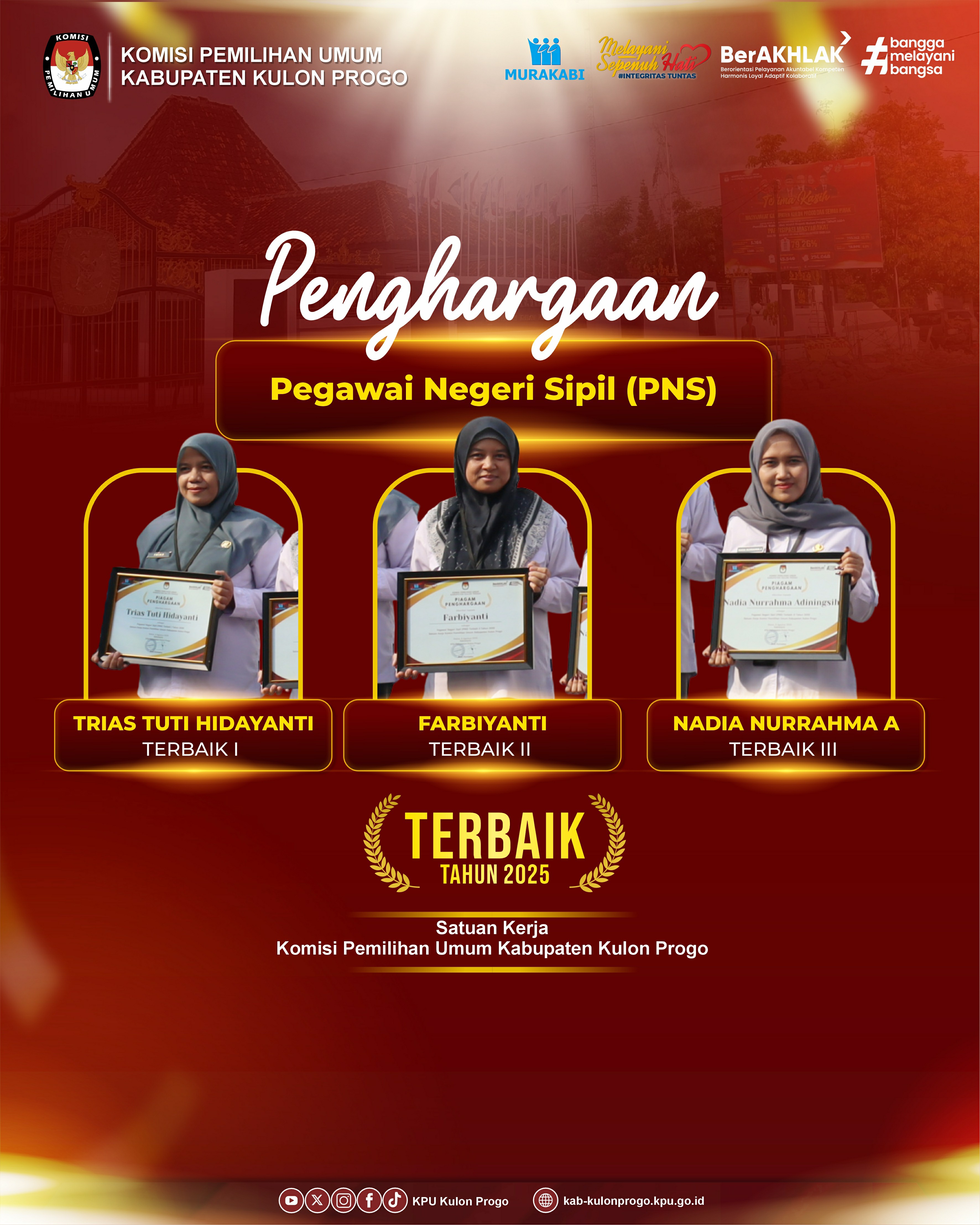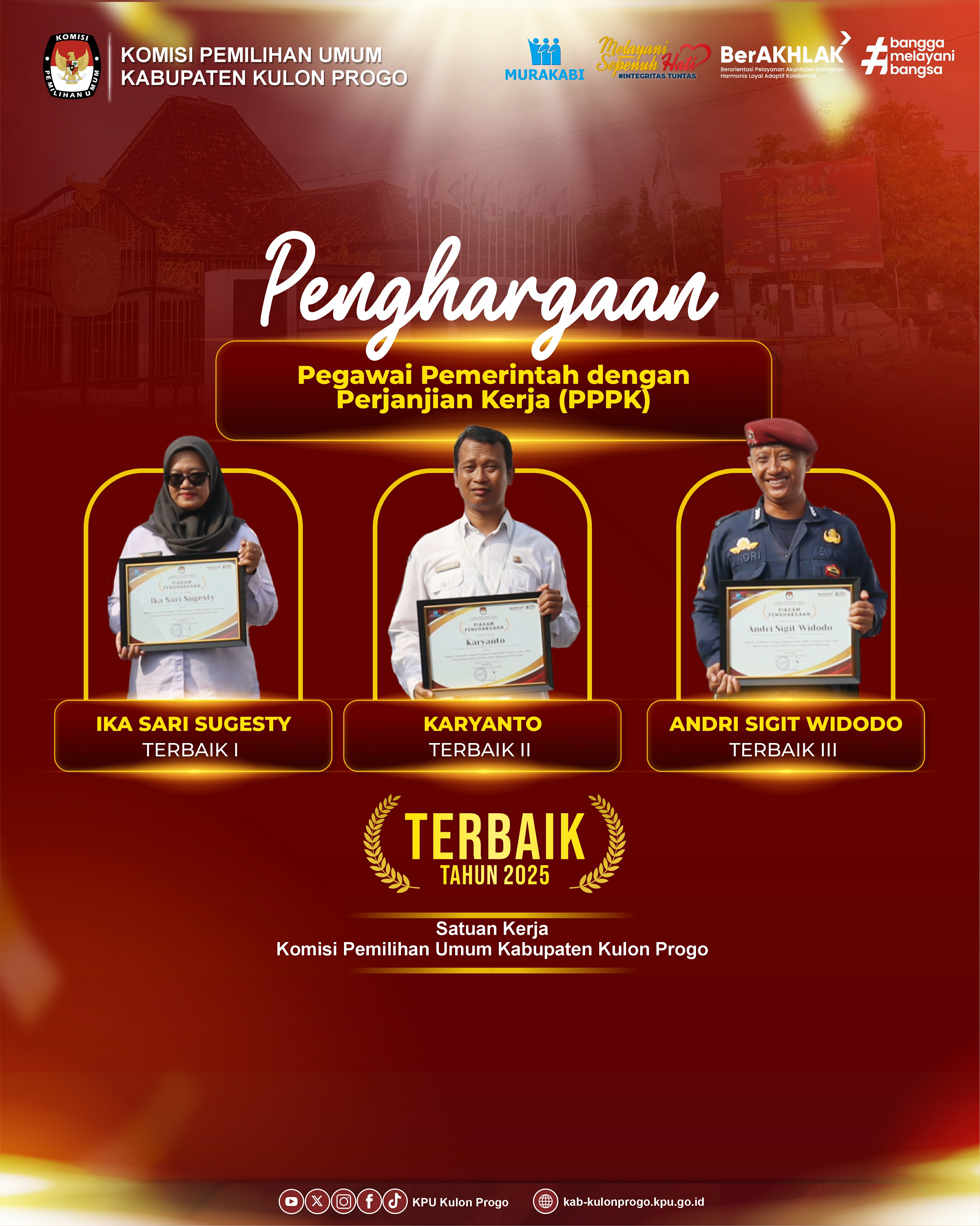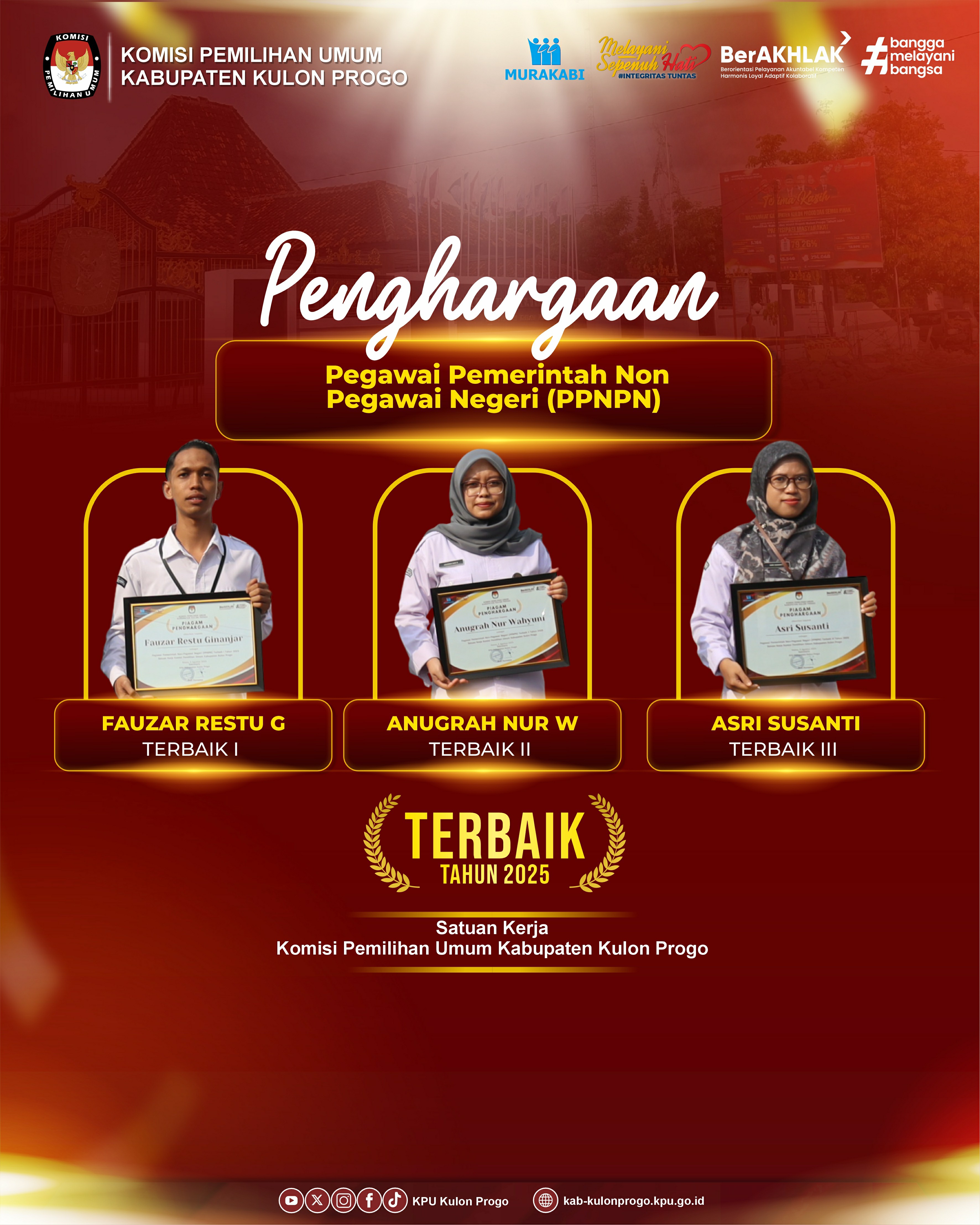 Selamat kepada penerima penghargaan PNS, PPPK, dan PPNPN Terbaik Tahun 2025 Satuan Kerja Pemilihan Umum Kabupaten Kulon Progo.