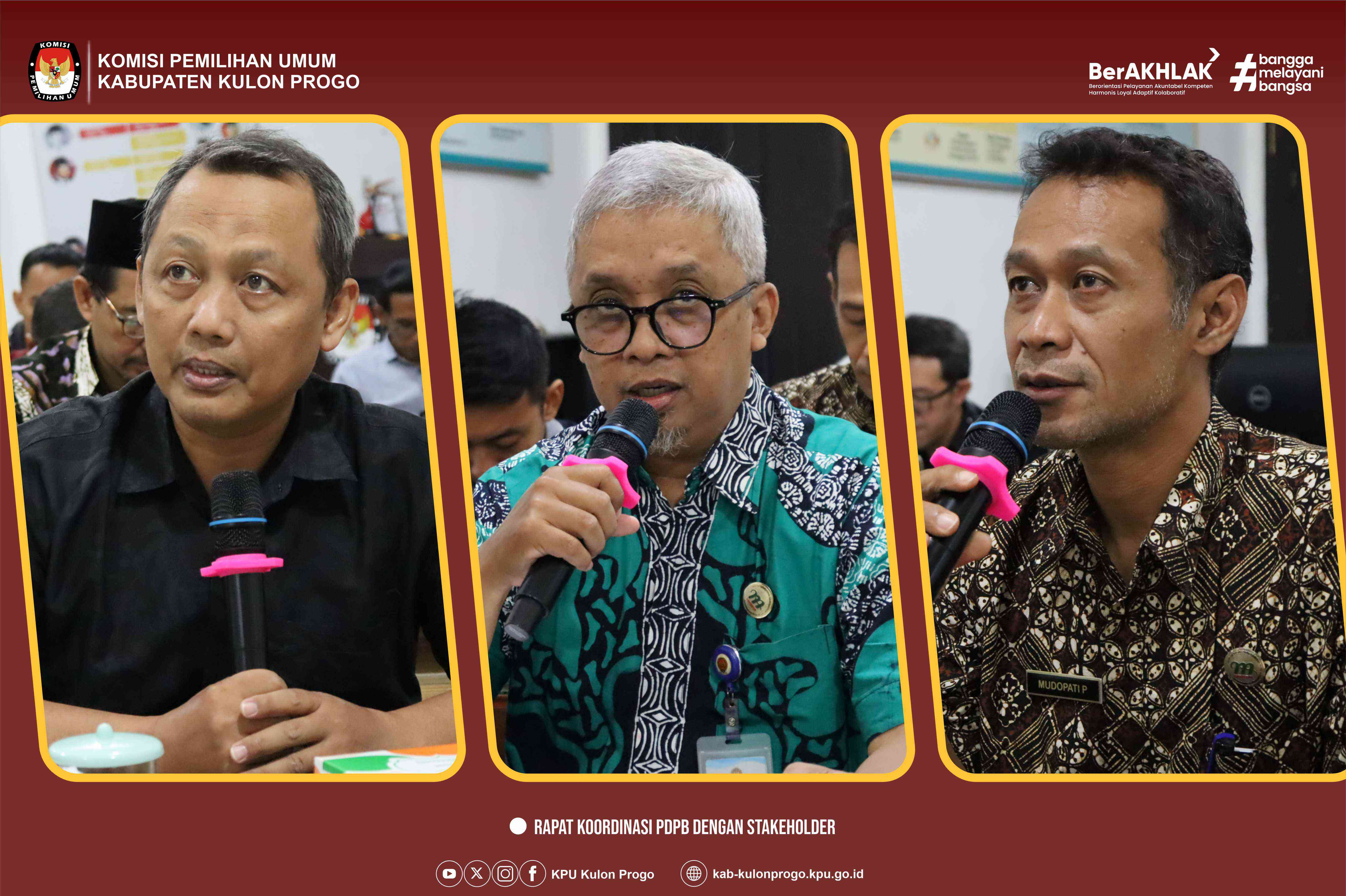 Kamis, 12 Juni 2025 Komisi Pemilihan Umum Kabupaten Kulon Progo mengadakan acara Rapat Koordinasi dengan stakeholder terkait dengan fokus progres PDPB (Pemutakhiran Data Pemilih Berkelanjutan) yang dilaksanakan di RPP (Rumah Pintar Pemilu) Komisi Pemilihan Umum Kabupaten Kulon Progo.