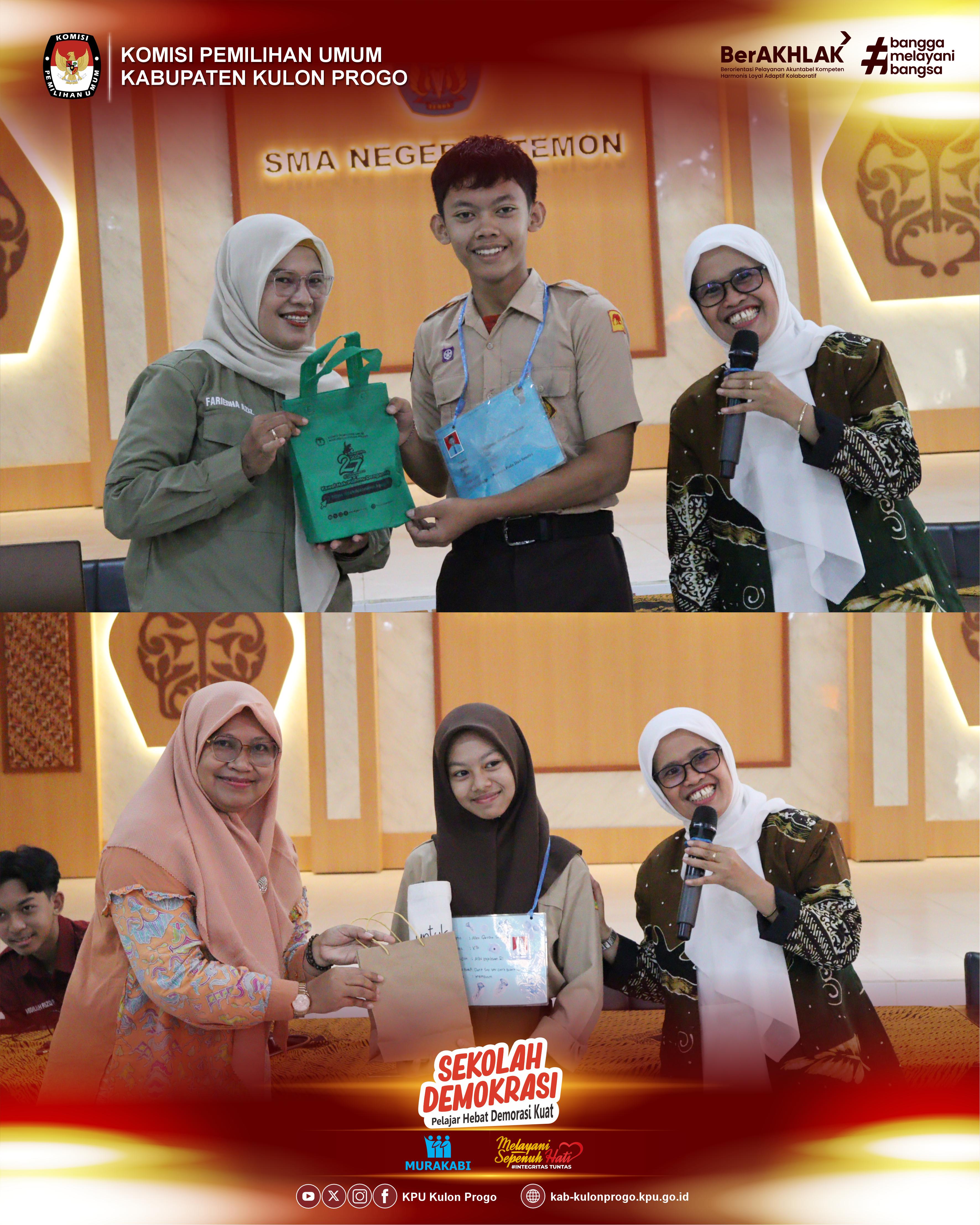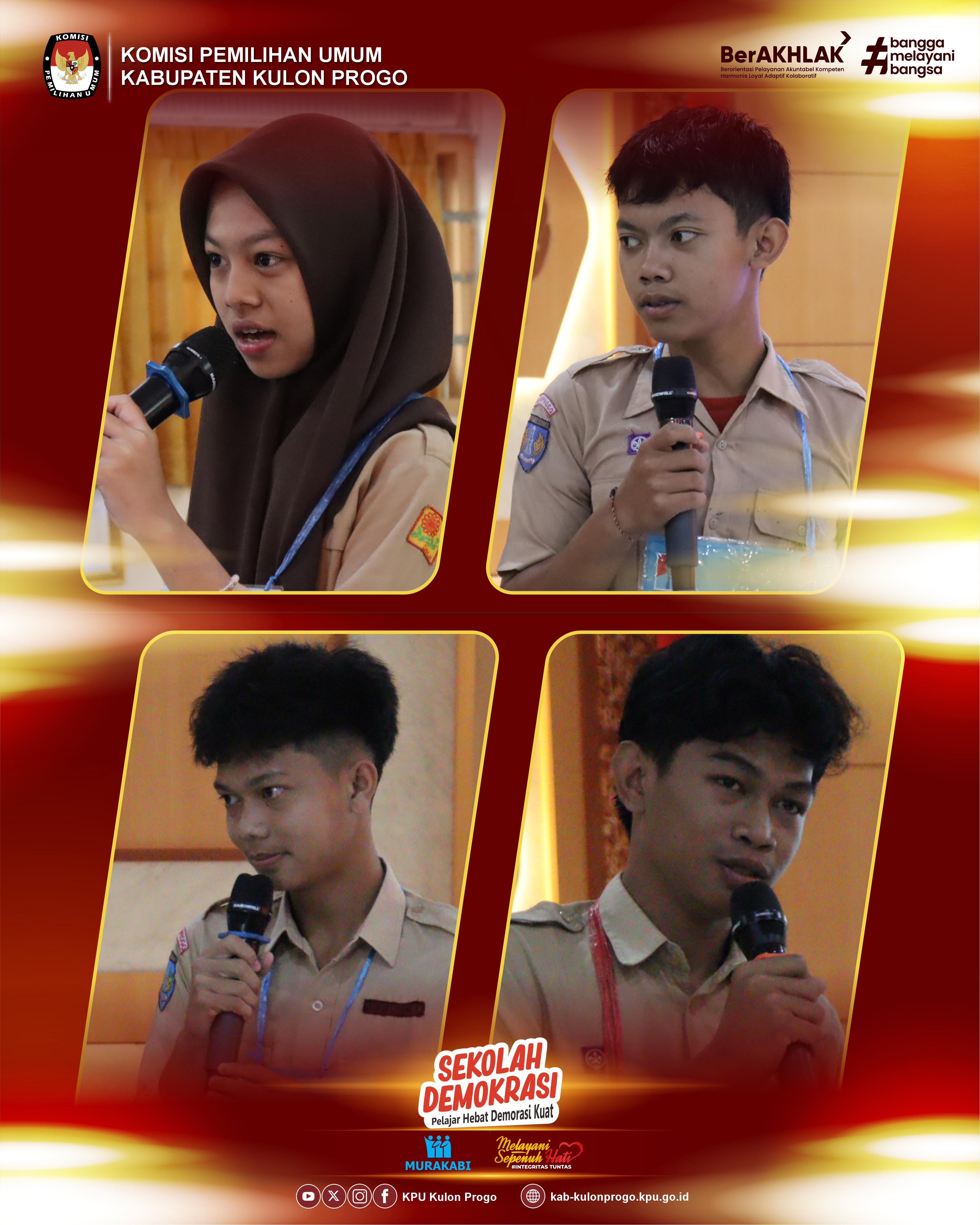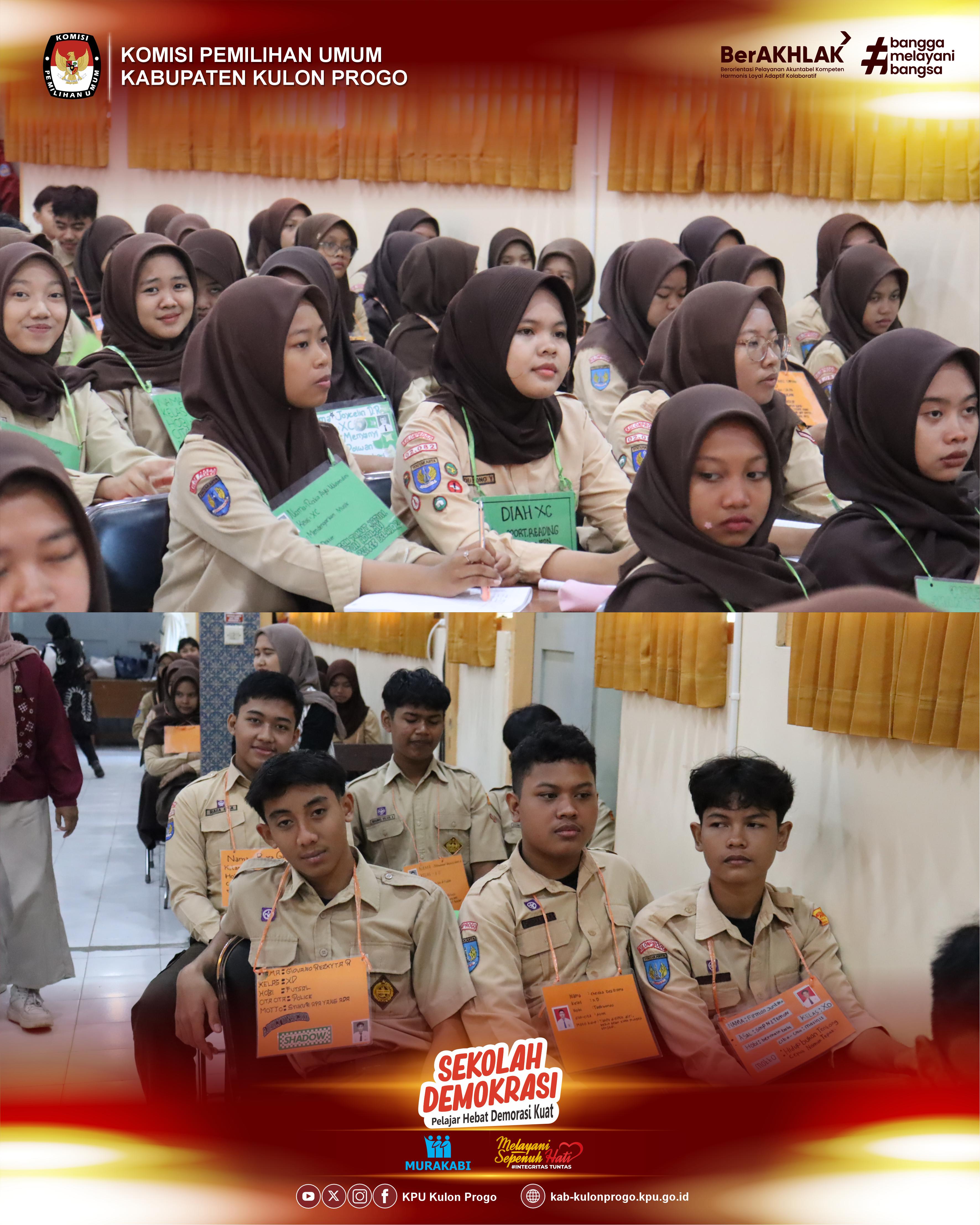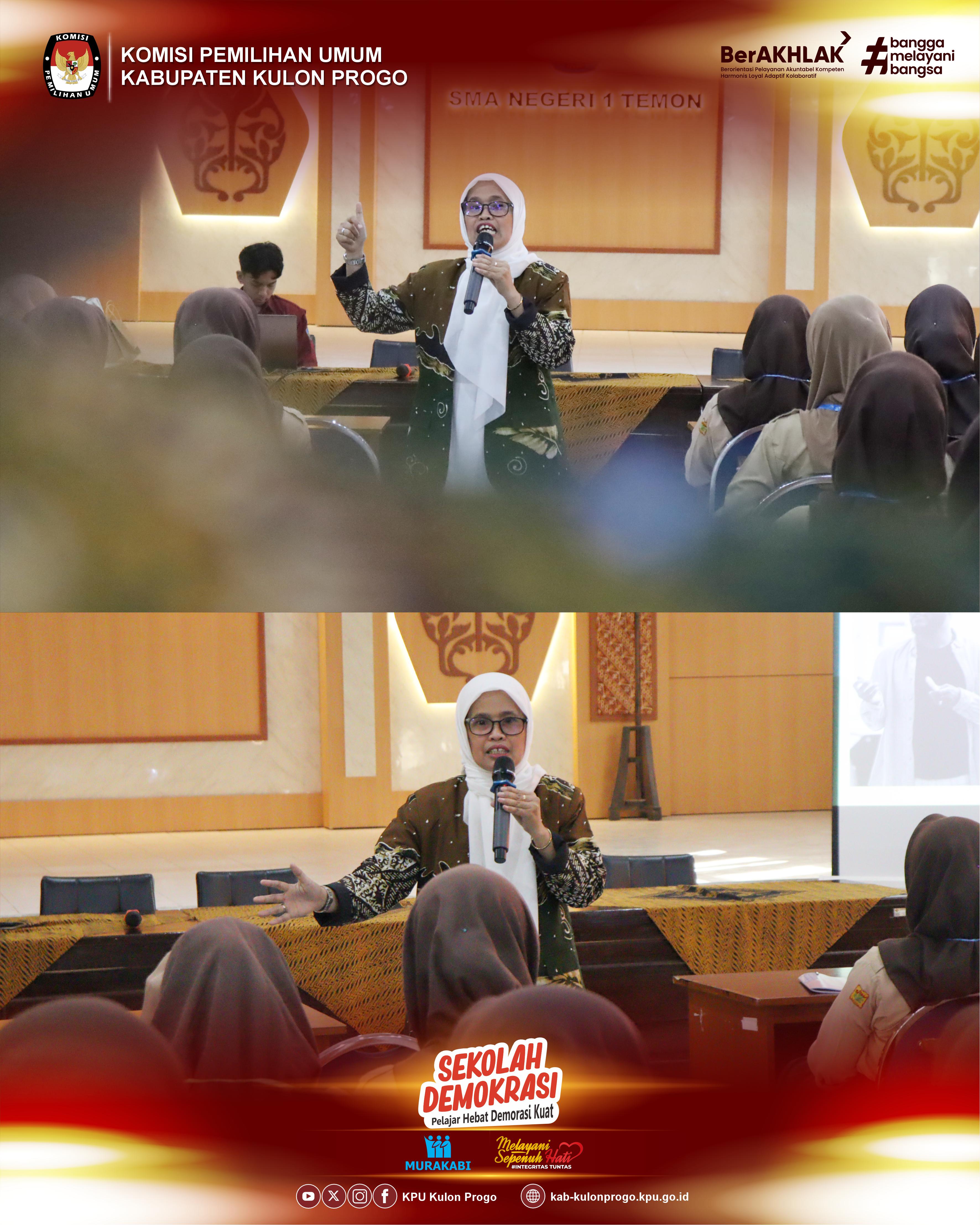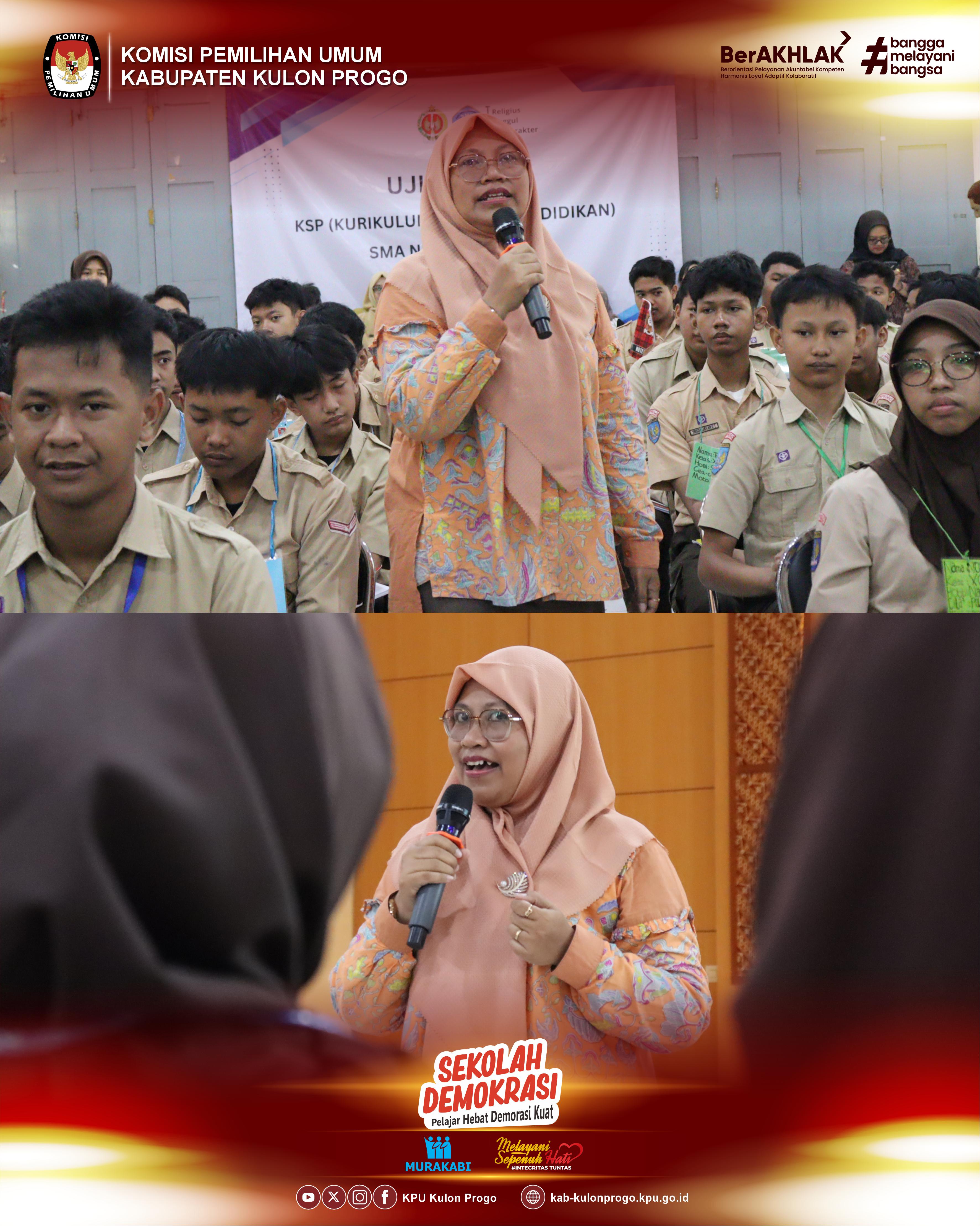 Ketua Divisi Hukum dan Pengawasan KPU DIY, Ibah Muthiah selaku narasumber didampingi Ketua Divisi Sosialisasi, Pendidikan Pemilih, Partisipasi Masyarakat dan SDM KPU Kabupaten Kulon Progo, Aris Zurkhasanah mengatakan bahwa pelajar SMA merupakan segmen penting dalam meningkatkan angka partisipasi pemilih. "Melalui kegiatan ini, kami berharap siswa-siswi bisa memahami makna demokrasi dan pentingnya menggunakan hak pilih secara bertanggung jawab," ujarnya.