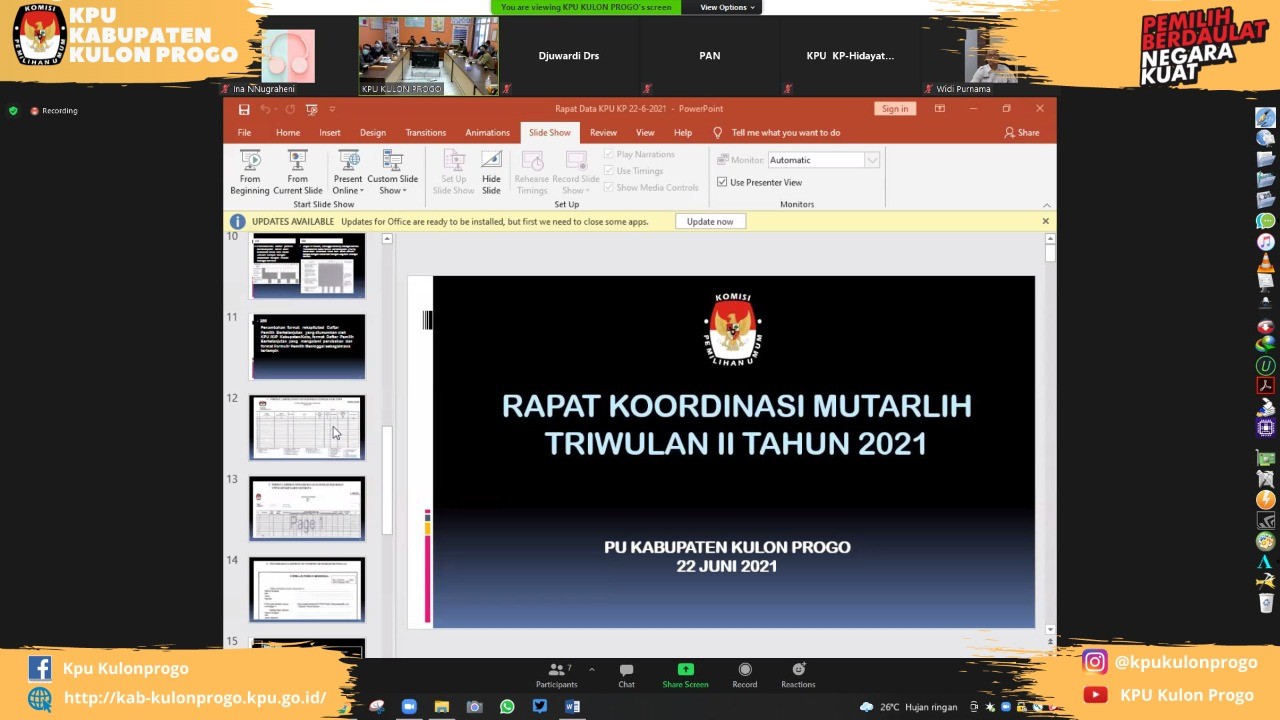Senada dengan itu, Ibah Muthiah selaku Ketua KPU Kulon Progo, juga meberikan tanggapannya atas Monev KID tahun ini, ia menyampaikan hendaknya Medsos dan website yang dimiliki oleh KPU Kulon Progo selain menyuguhkan kegiatan rutin lembaga, juga harus berperan menjadi etalase yang dapat memupuk kepercayaan publik. (Pras)