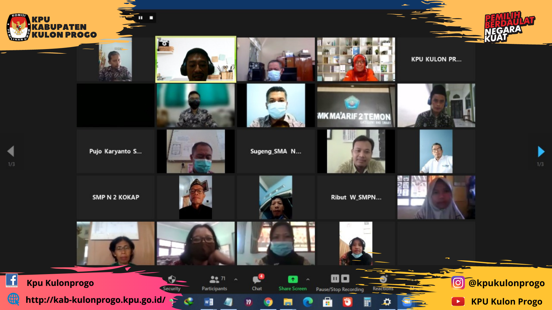 Dalam rangka melakanakan pendidikan pemilih bagi pemilih pemula, KPU Kabupaten Kulon Progo melaksanakan kerja sama dengan seluruh sekolah menengah atas dan sekolah menengah pertama se Kabupaten Kulon Progo.