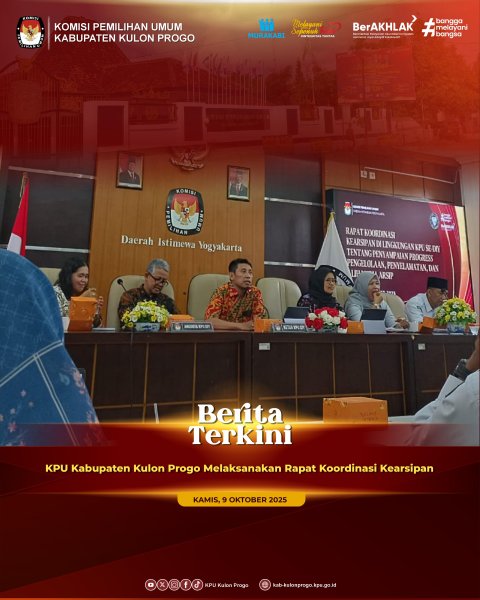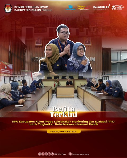 Kulon Progo – Komisi Pemilihan Umum (KPU) Kabupaten Kulon Progo melaksanakan kegiatan Monitoring dan Evaluasi (Monev) Pejabat Pengelola Informasi dan Dokumentasi (PPID), bertempat di Rumah Pintar Pemilu KPU Kabupaten Kulon Progo pada Selasa, 7 Oktober 2025. Kegiatan ini dilaksanakan sebagai bagian dari upaya KPU dalam memperkuat implementasi keterbukaan informasi publik sesuai dengan amanat Undang-Undang Nomor 14 Tahun 2008 tentang Keterbukaan Informasi Publik.