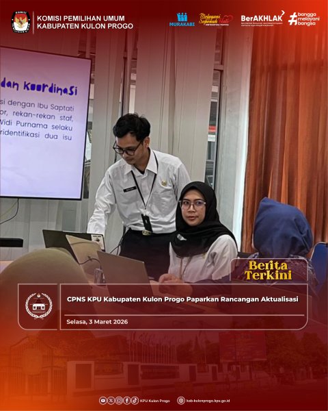 Kulon Progo, 5 Maret 2026 – Komisi Pemilihan Umum (KPU) Kabupaten Kulon Progo melakukan audiensi dengan Kodim 0731/Kulon Progo dalam rangka menjalin silaturahmi sekaligus melakukan penjajakan kerja sama kelembagaan. Kegiatan ini berlangsung di Markas Kodim 0731/Kulon Progo dan dihadiri Ketua dan Anggota KPU Kabupaten Kulon Progo.