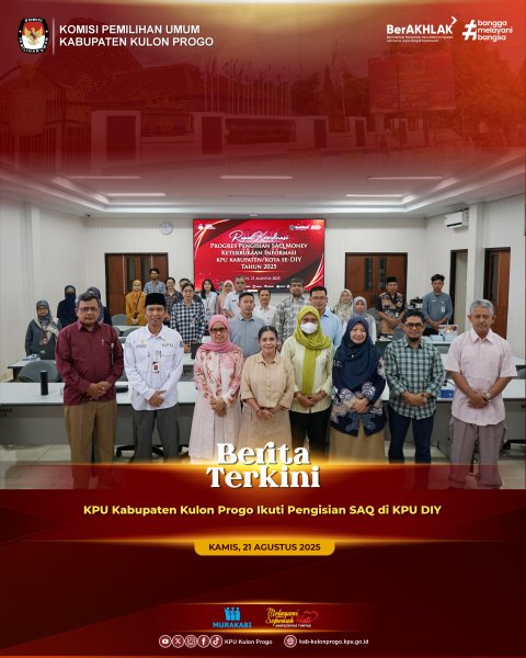 Yogyakarta – Komisi Pemilihan Umum (KPU) Kabupaten Kulon Progo mengikuti kegiatan pengisian Self-Assessment Questionnaire (SAQ) yang diselenggarakan oleh Komisi Pemilihan Umum Daerah Istimewa Yogyakarta (KPU DIY) pada Kamis, 21 Agustus 2025. Kegiatan pengisian SAQ ini dilaksanakan secara luring di Lantai 2 Kantor KPU DIY, dengan melibatkan KPU kabupaten/kota se-DIY. SAQ menjadi instrumen evaluasi mandiri yang digunakan untuk menilai keterbukaan informasi publik, kualitas layanan, dan akuntabilitas penyelenggaraan pemilu di lingkungan KPU. Kegiatan ini di hadiri oleh Ketua Divisi Sosdiklih Parmas dan SDM, Kasubbag yang membidangi Parmas dan SDM serta Operator/Admin dari KPU Kabupaten/Kota se DIY. Sri Surani selaku Ketua Divisi Sosialisasi Pendidikan Pemilih, Partisipasi Masyarakat dan SDM KPU DIY sekaligus sebagai fasilitator kegiatan menyampaikan bahwa kegiatan ini penting dilakukan untuk melihat sejauh mana standar layanan informasi publik sudah dijalankan di KPU di lingkungan DIY. "Selain sebagai kewajiban kelembagaan, SAQ juga menjadi sarana pertanggungjawaban kepada masyarakat,” ujarnya. Adapun indikator yang diukur melalui SAQ meliputi komitmen organisasi terhadap keterbukaan informasi, pemanfaatan teknologi dalam layanan publik (digitalisasi), jenis informasi, serta sarana prasarana yang mendukung kecepatan dan kualitas respons terhadap kebutuhan informasi masyarakat. Lebih lanjut, Sri Surani juga menyampaikan bahwa hasil pengisian SAQ akan dijadikan dasar dalam meningkatkan pelayanan publik ke depan. Harapannya tidak hanya berhenti pada pengisian SAQ, akan tetapi menjadikannya sebagai bahan evaluasi untuk memperbaiki kekurangan. "Ini adalah wujud pertanggungjawaban kita sebagai badan publik agar masyarakat mendapatkan layanan informasi yang transparan, cepat, dan akurat,” tambahnya. KPU Kabupaten Kulon Progo sebagai salah satu Badan Publik berkomitmen untuk melaksanakan pengisian SAQ secara serius dan bertanggung jawab. Dengan mengikuti kegiatan ini, KPU Kabupaten Kulon Progo berharap dapat memperkuat akuntabilitas kelembagaan serta membangun kepercayaan publik dalam penyelenggaraan pemilu yang jujur, transparan, dan profesional. -Izr