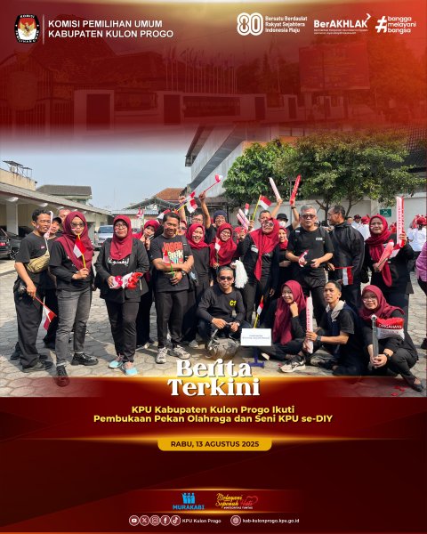Yogyakarta – Rabu, 13 Agustus 2025, bertempat di Kantor KPU Daerah Istimewa Yogyakarta, KPU Kabupaten Kulon Progo menghadiri pembukaan Pekan Olahraga dan Seni KPU se-DIY dalam rangka menyambut Hari Ulang Tahun ke-80 Republik Indonesia. Acara dibuka secara resmi oleh Ketua KPU DIY, Ahmad Shidqi, S.Th.I., M.Hum.