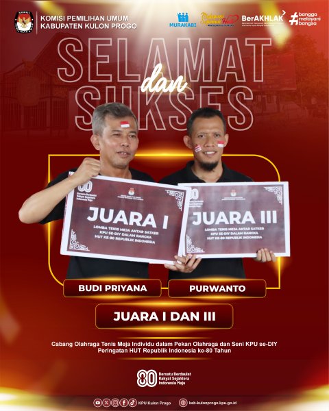 Prestasi membanggakan diraih dalam cabang Tenis Meja, di mana Budi Priyana berhasil meraih Juara I dan Purwanto meraih Juara III. Pencapaian ini menjadi awal yang positif bagi KPU Kabupaten Kulon Progo dalam ajang yang tidak hanya memupuk sportivitas, tetapi juga mempererat silaturahmi antarpegawai KPU se-DIY.
