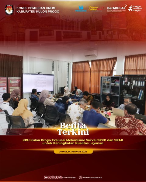 4. SOP Pengelolaan Website yang dilaksanakan pada tanggal 15 Januari 2026 serta kegiatan Rapat Evaluasi Pelaksanaan SOP di Lingkungan KPU Kabupaten Kulon Progo yang akan dilaksanakan pada tanggal 14 Januari 2026.