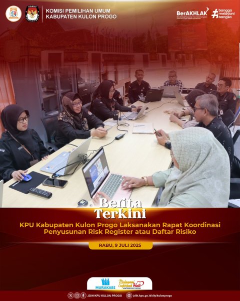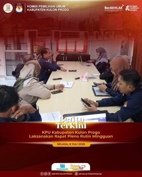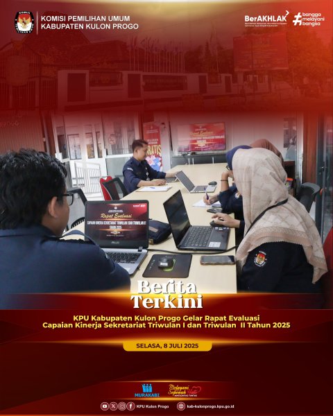 Wates – Komisi Pemilihan Umum (KPU) Kabupaten Kulon Progo menggelar Rapat Evaluasi Capaian Kinerja Sekretariat Triwulan I dan Triwulan II Tahun 2025 pada Selasa, 8 Juli 2025, bertempat di Pendopo KPU Kabupaten Kulon Progo. Kegiatan ini dihadiri oleh sekretaris, para kepala subbagian (kasubbag), serta seluruh pelaksana di lingkungan Sekretariat KPU Kabupaten Kulon Progo.
