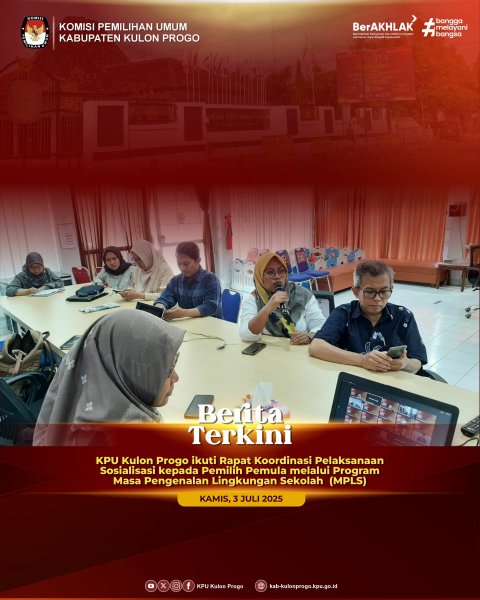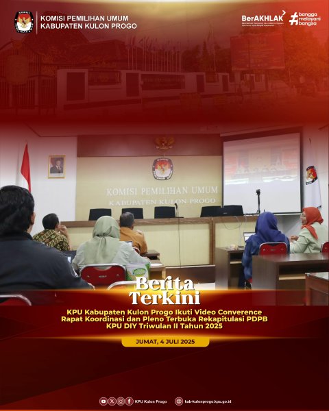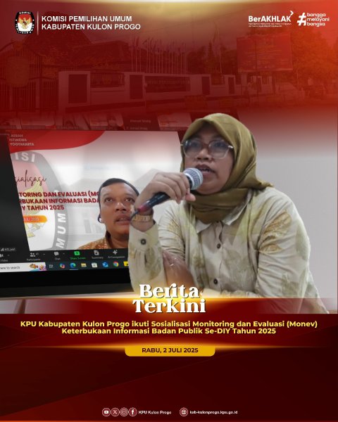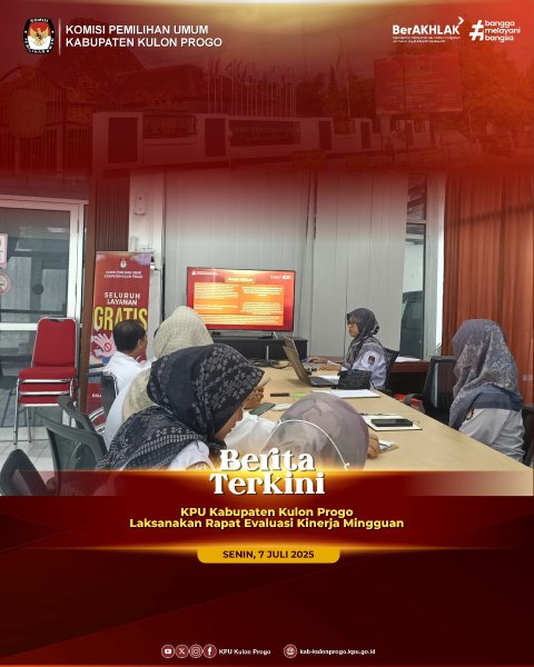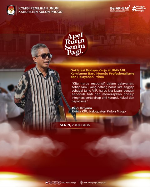 Senin (7/7/2025) KPU Kabupaten Kulon Progo kembali melaksanakan kegiatan Apel pagi yang diikuti oleh ketua, anggota, sekretaris dan seluruh jajaran sekretariat KPU Kabupaten Kulon Progo. Sedikit berbeda dengan apel rutin sebelumnya, KPU Kabupaten Kulon Progo pada apel kali ini melaksanakan aksi deklarasi penguatan kembali komitmen bersama implementasi reformasi birokrasi zona integritas dan pelayanan publik, dengan penandatanganan dokumen komitmen bersama budaya kerja "MURAKABI" dalam pelaksanaan reformasi birokrasi dalam membangun zona intergritas oleh ketua, anggota, sekretaris dan sekretariat KPU Kabupaten Kulon Progo sebagai bentuk tanggungjawab sebagai lembaga pelayan publik. Dalam rangka menuju Wilayah Bebas Korupsi (WBK) di lingkungan KPU Kabupaten Kulon Progo, berkomitmen untuk meningkatkan pelayanan publik kepada seluruh masyarakat dan stakeholder serta menjunjung tinggi nilai integritas, transparansi dan akuntabilitas. Selain itu KPU Kabupaten Kulon Progo berkomitmen menerapkan budaya kerja MURAKABI (Melayani, Unggul, Responsif, Akuntabel, Kompeten, Adaptif, Bersih dan Inklusif) sebagai etos kerja pelayanan publik. “Pada penerapannya, kita harus responsif dalam pelayanan, setiap tamu yang datang harus kita anggap sebagai tamu VIP, harus kita layani dengan sepenuh hati dan menerapkan prinsip integritas serta sikap anti korupsi, kolusi dan nepotisme", tegas Ketua KPU Kabupaten Kulon Progo, Budi Priyana. Apel ditutup dengan penyampaian informasi beberapa agenda yang akan dilaksanakan pada minggu ini yaitu rapat evaluasi kinerja mingguan, menerima audiensi dari LKBH, Pertemuan dengan Kemenag, Rapat Pleno Mingguan dan Rapat Koordinasi internal lainnya. -Aiv