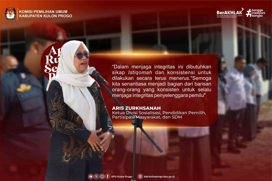 Hal tersebut adalah poin-poin penting yang disampaikan oleh Ketua Divisi Sosialisasi, Pendidikan Pemilih, Parmas dan SDM KPU Kabupaten Kulon Progo dalam agenda apel Senin pagi kali ini.