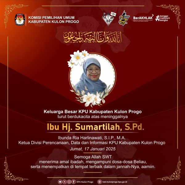 Budi Priyana menyampaikan belasungkawa yang mendalam kepada Keluarga yang ditinggalkan serta mengucapkan permohonan maaf dan terimakasih atas dedikasi dari almarhum selama bertugas dan toleransi dari keluarga atas waktu yang tercurah dari almarhum untuk pelaksanaan tahapan Pemilihan Bupati dan Wakil Bupati Kulon Progo Tahun 2024.