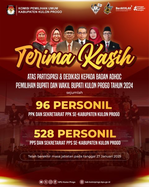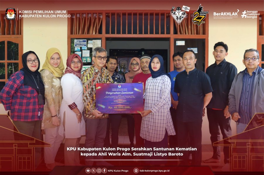 Pemberian santunan ini dilakukan oleh Ketua dan Anggota KPU Kabupaten Kulon Progo, Budi Priyana, M. Puja Rasa Satuhu, Aris Zurkhasanah, Hidayatut Thoyyibah, dan Ria Harlinawati; Kasubbag Rendatin Aan Rimawanto, Kasubbag Hukum dan SDM Ina Noviyatun Nugraheni, serta beberapa staf di lingkungan KPU Kabupaten Kulon Progo.