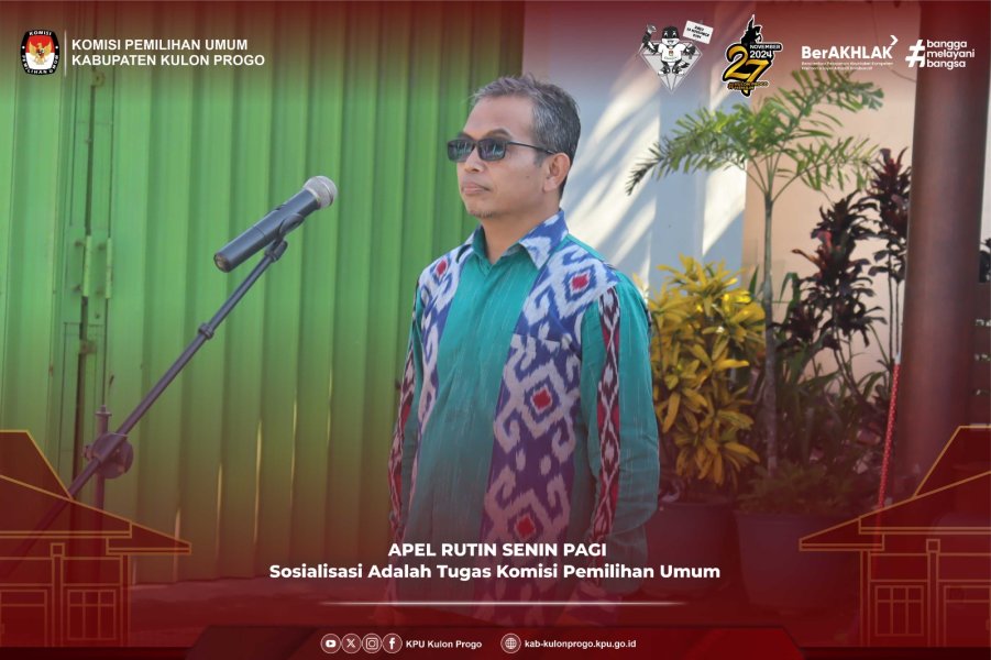 APEL PAGI, SENIN 30 DESEMBER 2024 Pemimpin Apel : Widi Purnama Senin, 30 Desember 2024 KPU Kabupaten Kulon Progo kembali melaksanakan apel rutin Senin pagi yang dilaksanakan di halaman kantor KPU Kabupaten Kulon Progo yang diikuti oleh Komisioner, Pejabat Struktural, Staf/Pelaksana dan PPNPN di lingkungan KPU Kabupaten Kulon Progo. Pembina apel pada kesempatan kali ini adalah Sekretaris KPU Kabupaten Kulon Progo, Widi Purnama. Dalam amanatnya pada apel rutin kali ini Sekretaris KPU Kabupaten Kulon Progo menyampaikan ucapan terimakasih dan apresiasi kepada semua Staff Sekretariat baik dari Anggota, Kassubag, Pelaksana dan PPNPN KPU Kabupaten Kulon Progo atas kelancaran terlaksanannya Pemilu dan Pilkada tahun 2024. Dalam amanat tersebut Sekretaris KPU Kabupaten Kulon Progo juga menyampaikan informasi dari hasil Konsolnas tadi malam bahwa tiga provinsi, yaitu KPU Provinsi DKI Jakarta, KPU Provinsi Bali, dan KPU Provinsi DIY mendapatkan apresiasi dari KPU RI atas lancarnya pelaksanaan pemilihan Kepala Daerah tahun 2024. Selain tahapan yang lancar juga sangat mengapresiasi kinerja KPU Kab/Kota yang telah berjuang dalam melaksanakan tahapan hingga paripurna. "Ini adalah bentuk dari Soliditas, Solidaritas dan Integritas kita semuanya”, tegas Widi Purnama. Hal tersebut adalah poin-poin penting yang disampaikan oleh Sekretaris KPU Kabupaten Kulon Progo dalam agenda apel Senin pagi kali ini. -Irv