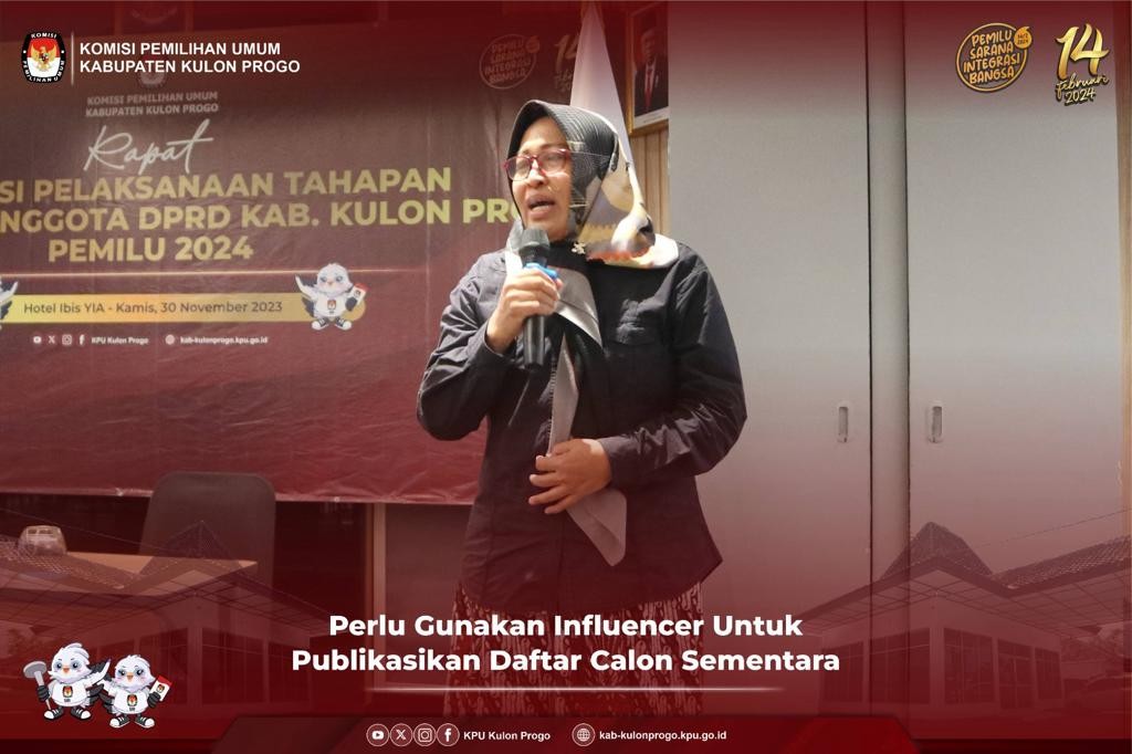 KPU Kabupaten Kulon Progo pada hari Kamis, 30 November 2023 mengadakan Evaluasi Pencalonan Anggota DPRD Kabupaten Kulon Progo. Dalam kegiatan ini KPU Kabupaten Kulon Progo, mengundang penghubung Partai Politik, Penghubung DPD, pihak terkait pencalonan anggota DPRD, organisasi masyarakat sipil dan organisasi keagamaan. Dalam sambutannya, M. Puja Rasa Satuhu, Kadiv. Hukum dan Pengawasan, mewakili Ketua KPU kabupaten Kulon Progo menyampaikan ucapan terimakasih kepada para calon anggota DPD DIY dan DPRD Kabupaten Kulon Progo, yang telah mencalonkan diri ataupun melalui partai politik, karena dengan mendaftar sebagai calon, berarti turut mempertahankan bangsa ini dengan memunculkan regenerasi kepemimpinan di Indonesia, khususnya di DIY dan Kulon Progo. Kegiatan yang dilakukan di Hotel Ibis Temon, dipandu oleh Hidayatut Thoyyibah, sebagai Ketua Divisi Teknis Penyelenggaraan pemilu. Hidayatut membagi peserta dalam tiga kelompok. Kelompok satu khusus membahas pencalonan DPD DIY dan Kelompok dua dan tiga membahas Pencalonan DPRD Kabupaten Kulon Progo. Dalam salah satu hasil evaluasi yang masih harus di tingkatkan dalam tahapan Pencalonan adalah, memperluas informasi tahapan pengumuman Daftar Calon Sementara (DCS) untuk mendapatkan masukan dari masyarakat. "Penerbitan pengumuman DCS selama lima hari melalui lima media massa cetak dan media sosial milik KPU kabupaten kulon Progo belum cukup untuk mendapatkan perhatian masyarakat, pengumuman dan permintaan masukan dari masyarakat perlu disosialisasikan juga oleh influencer, agar masyarakat berpartisipasi dalam tahapan tersebut". Seluruh masukan atas pelaksanaan tahapan Pencalonan anggota DPRD Kabupaten Kulon Progo dan DPD DIY, akan menjadi masukan bagi perbaikan tahapan Pencalonan pada Pemilu berikutnya. (Ida)